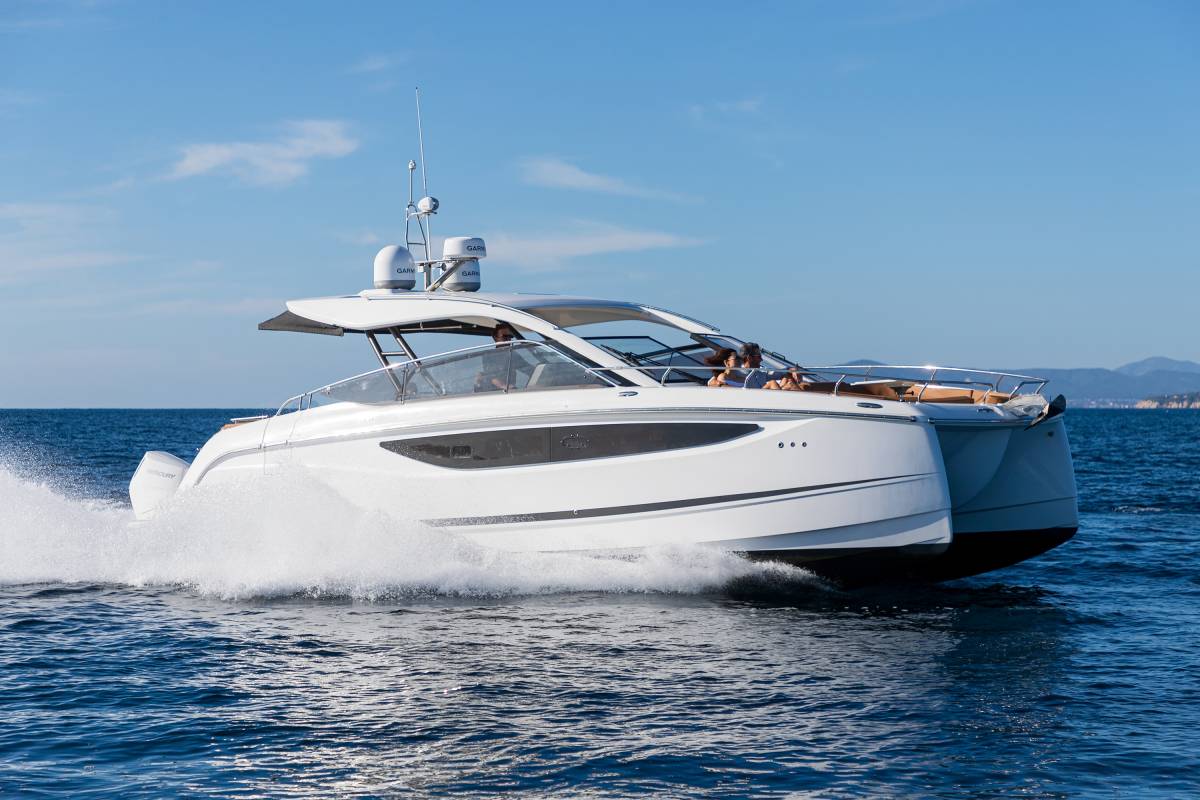 Twin-hull catamaran-inspired models offering superior stability, extra deck space, and smooth handling in a bold design.