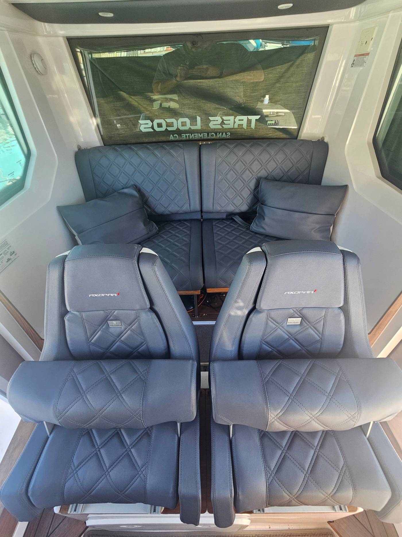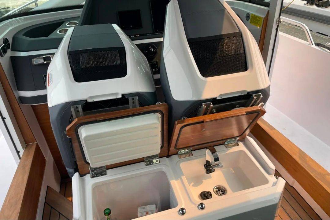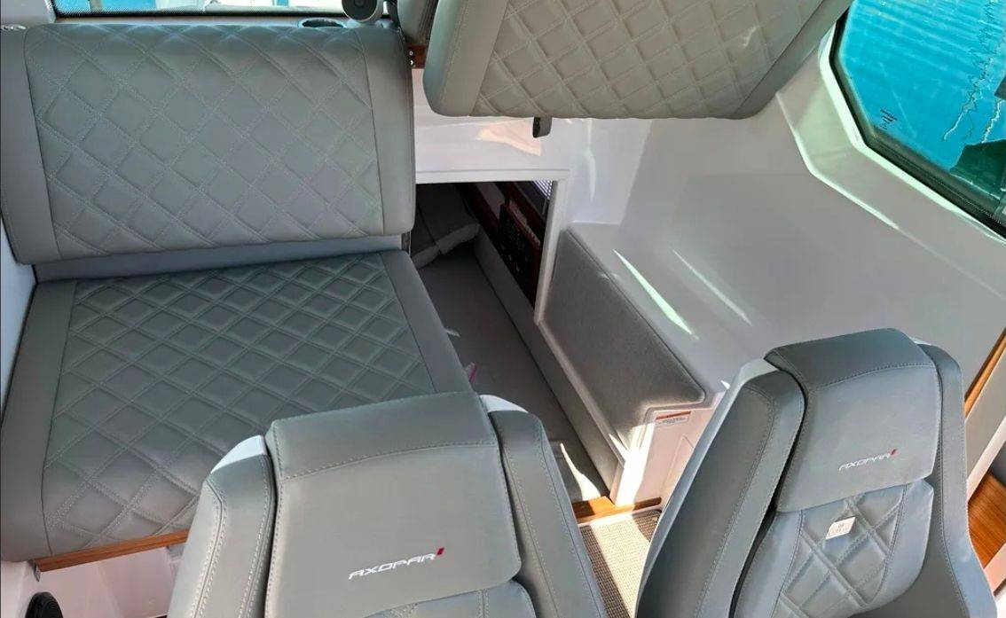 The fully enclosed cabin makes this boat a true all-weather performer. Large panoramic windows flood the interior with light, while sliding side doors and a retractable roof give you the freedom to open up the space when the sun is shining. Enjoy the warmth of the Webasto diesel heater, relax in plush seating, and appreciate the craftsmanship that defines the Axopar brand.