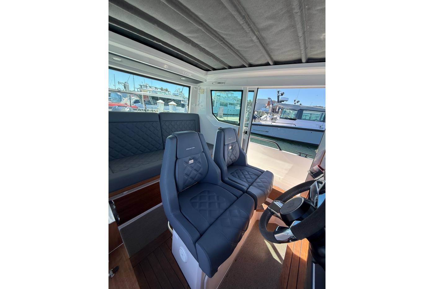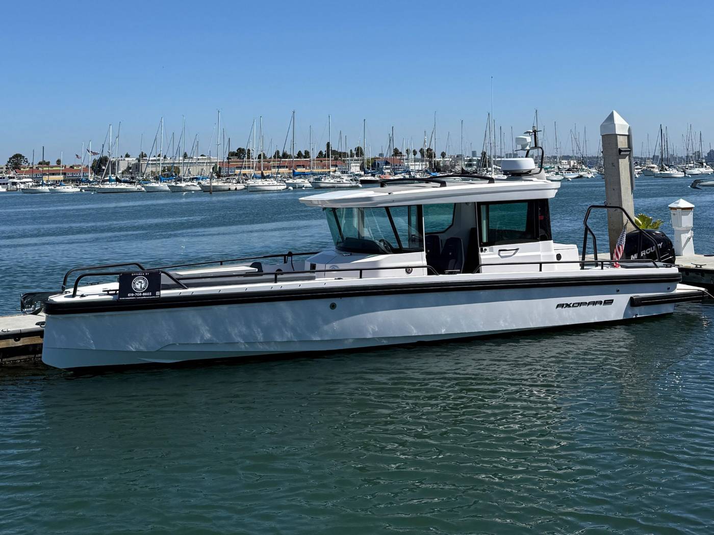 This 2021 Axopar 28 Cabin is a versatile, stylish, and efficient cruiser. Axopar is well known for its twin-stepped hull design that gives this cruiser both performance and comfort, equipped with an efficient single 400hp engine, and an enclosed helm and passenger area offering a weather-protected environment for passengers, making this boat ALL Year Entertainment. If you want the outside in, one button push opens the electric roof and pushes the sliding doors back, and the cabin exposes you and your passengers to the great outdoors.