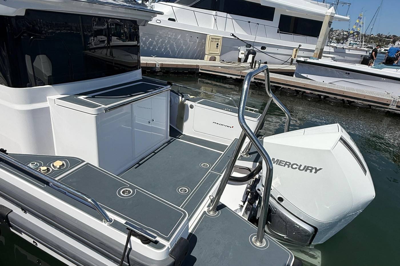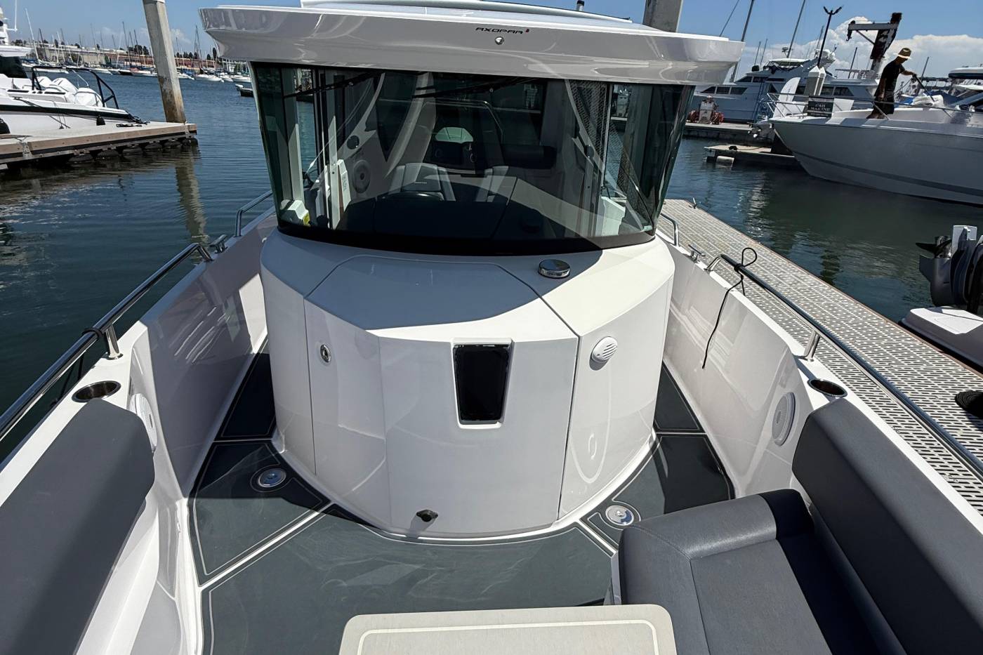 Versatile by design, the walkaround side access and aft-deck in standard form is a large, flat and practical space that works well as a home for fishing, or water-sports activities.