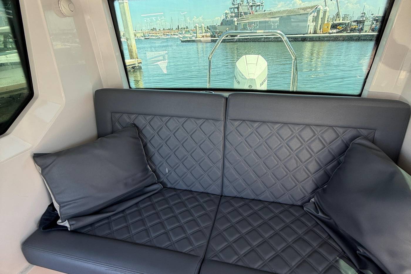 With the capability of seating up to five people within a bright and airy, full weather-protected environment, there's ample incentive for an owner and guests to spend extended time enjoying their Axopar Cabin to the fullest. The cabin offers occasional sleeping possibilities for one or two, but customers find the Aft Cabin option is an even better solution for genuinely comfortable, dedicated overnight accommodations.