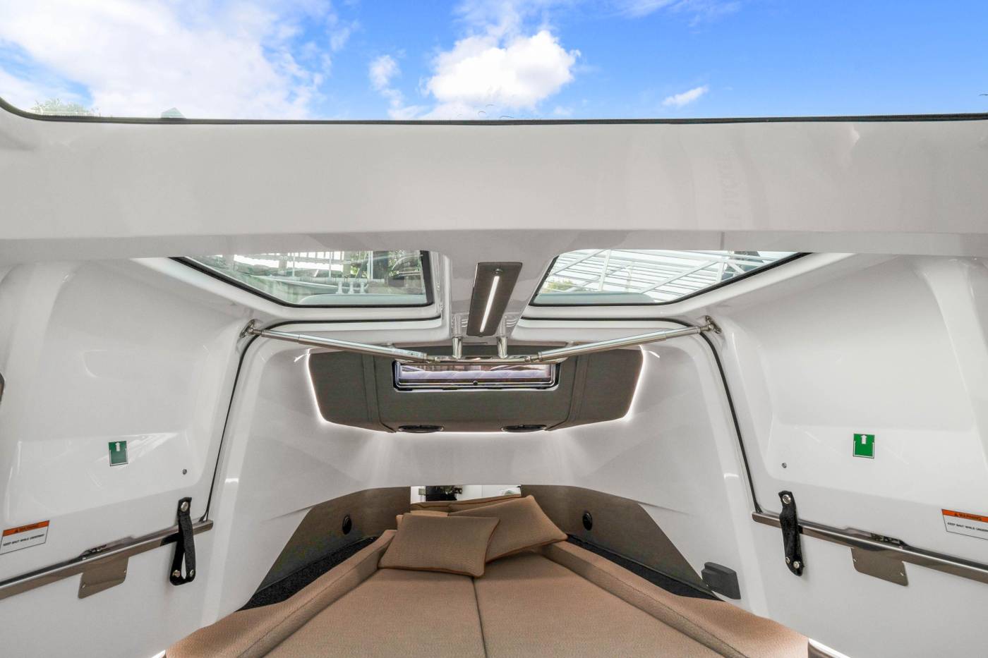 - Fixed sunbed on front deck with storage (Silvertex Sterling)