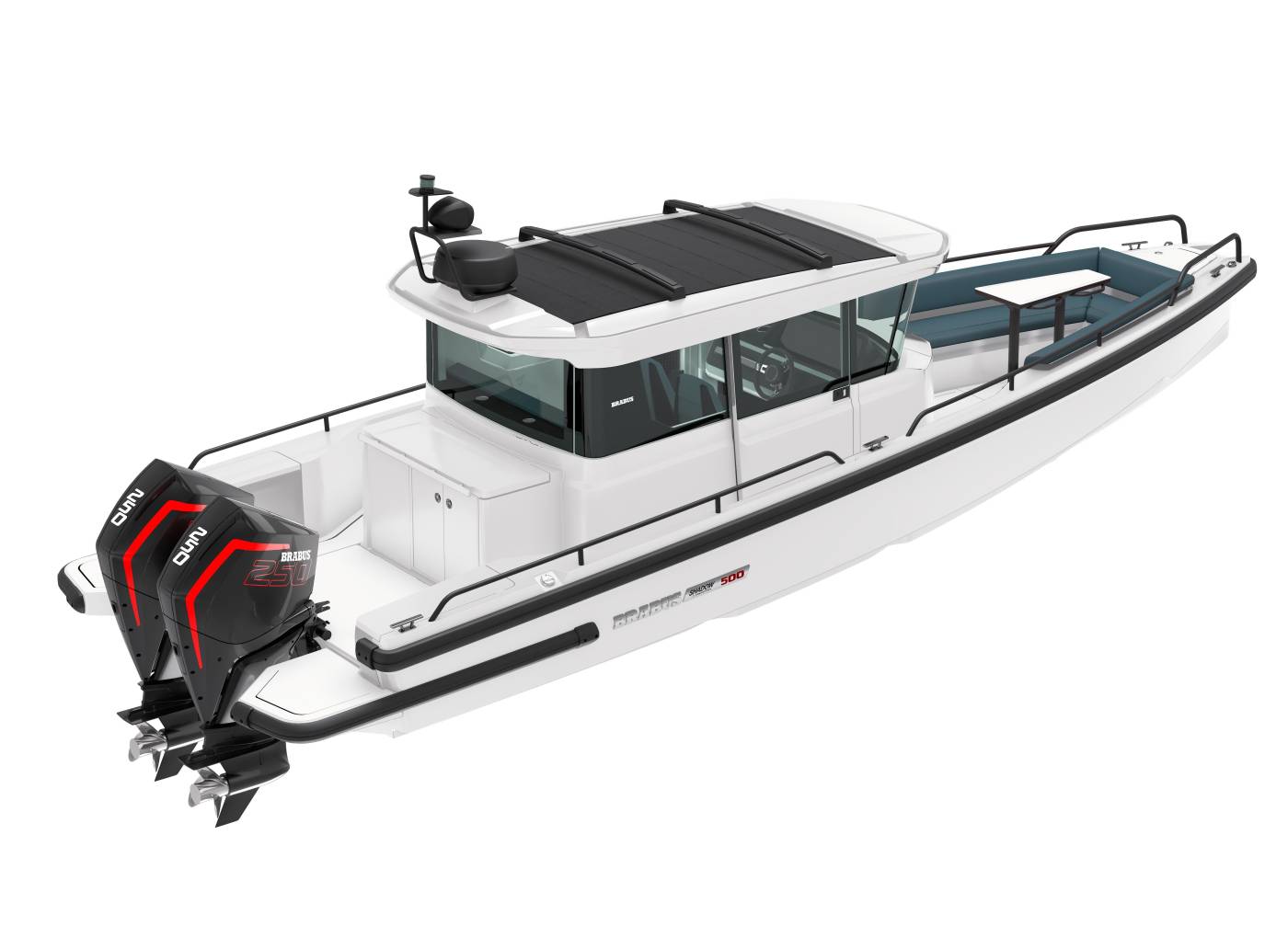 Visible carbon-fiber parts complete the ultra-cool looks of the dashboard and seat trims and further emphasizes the clean and high-tech look of the boat. All carbon-fiber parts are made in-house and supplied directly to the boat factory from the BRABUS headquarters in Germany.