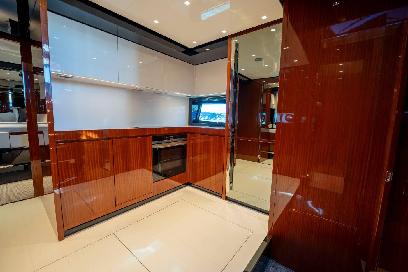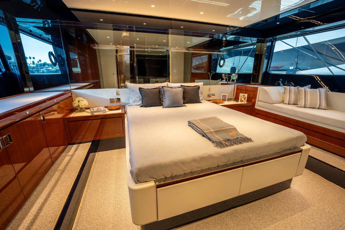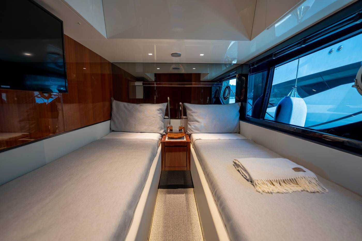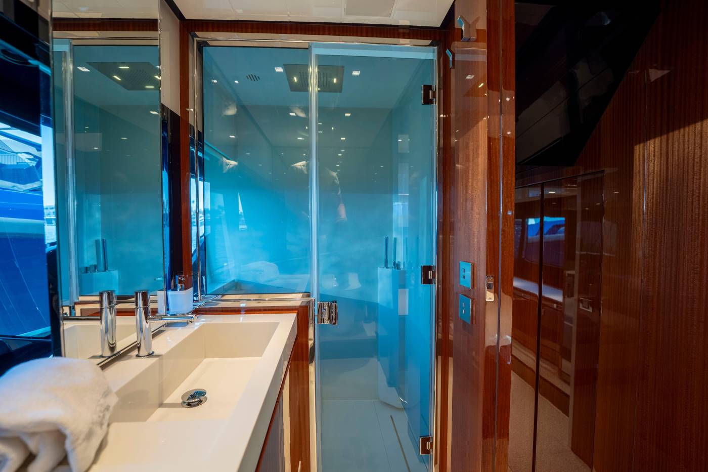 - Access to the swim platform via fiberglass steps, footboard teak-laid and courtesy lights