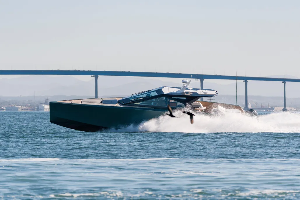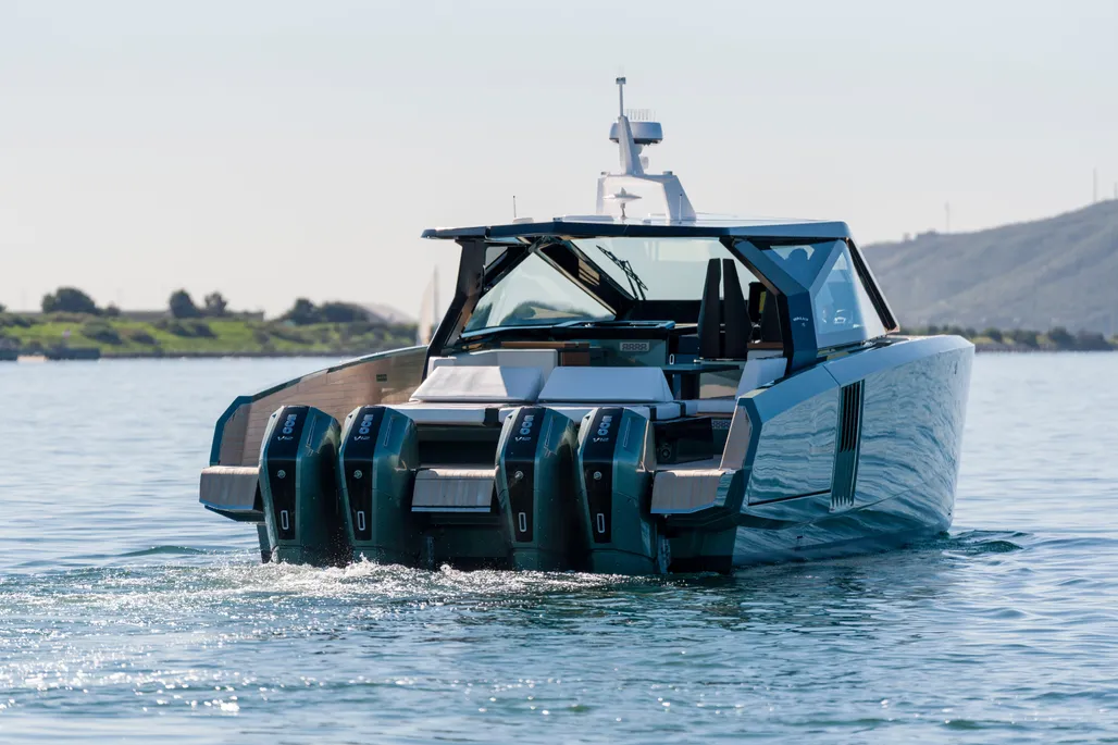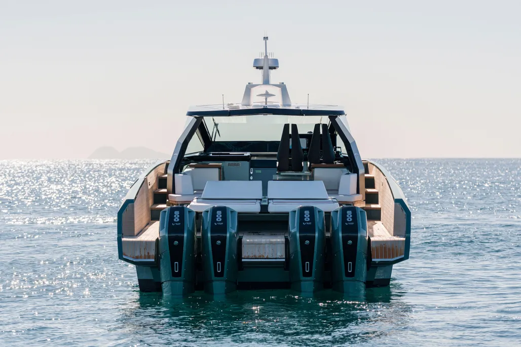 While performance is a cornerstone, Wally has also leveraged the unique features of the new Mercury engines. Their reduced draft enhances accessibility for shallow water cruising, while the rotating gearcases and joystick-controlled maneuvering system ensure effortless precision when docking in confined spaces.