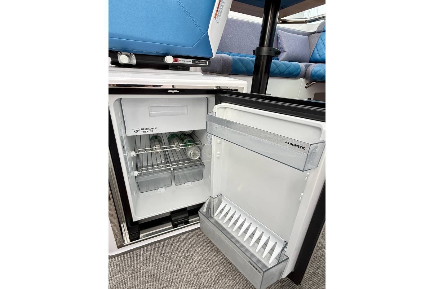 - Refrigerator in main cabin