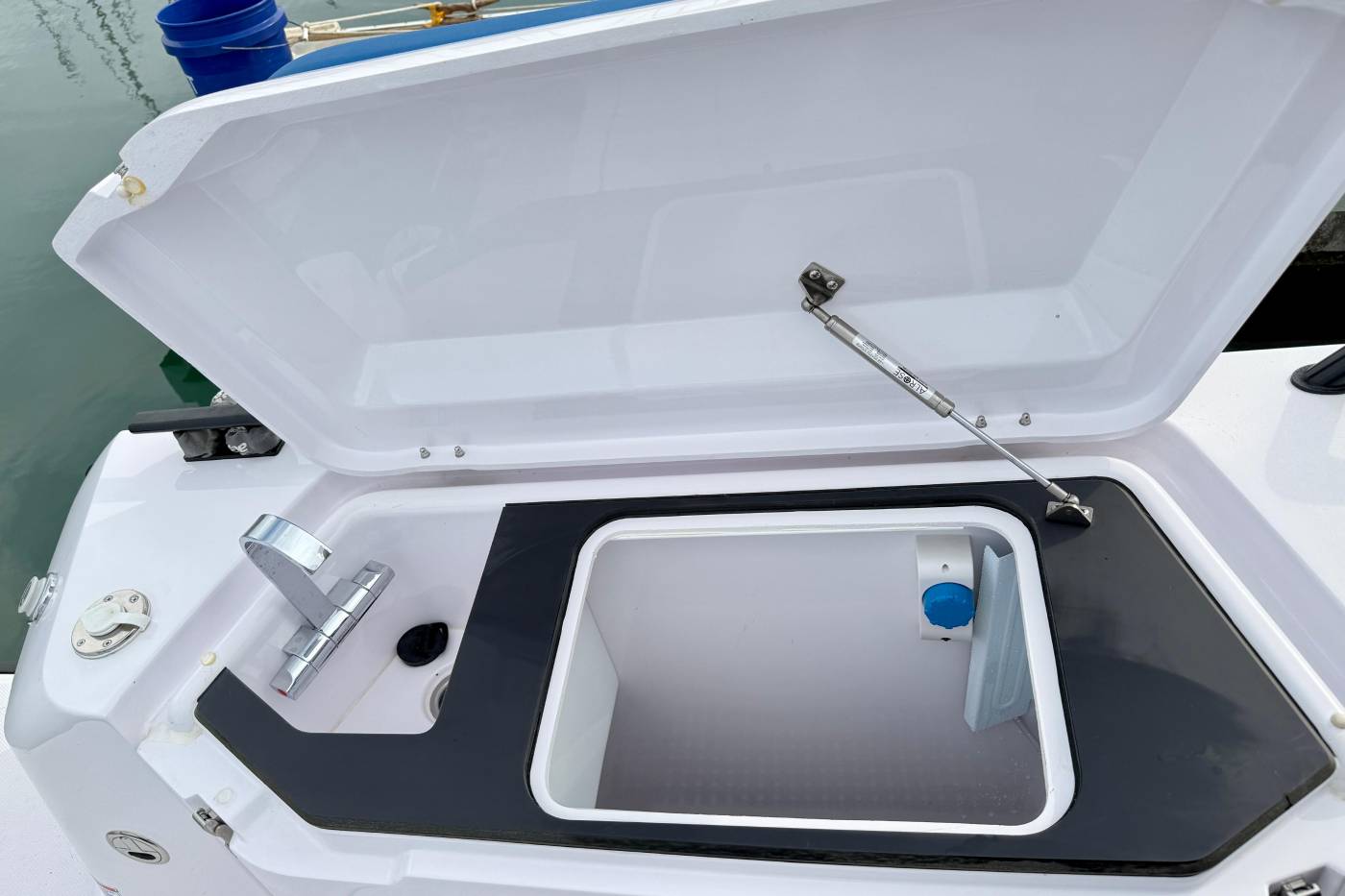 - Wet bar in port fender box, w. hot & cold water