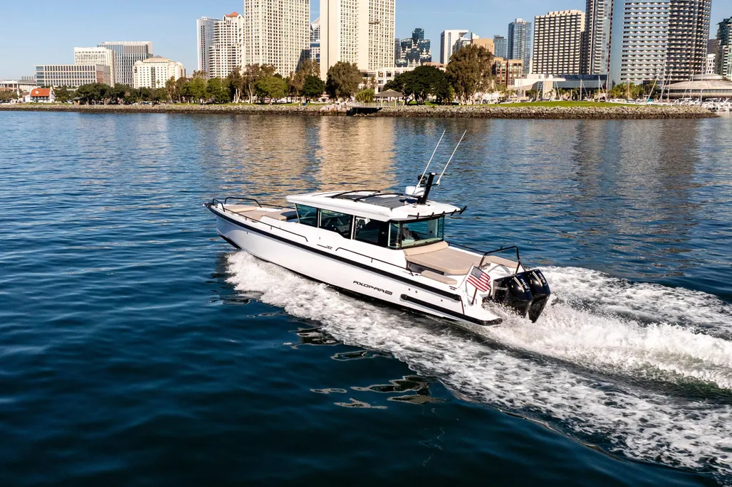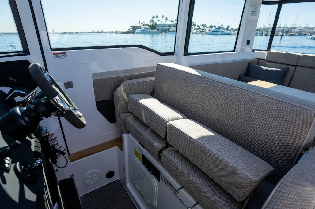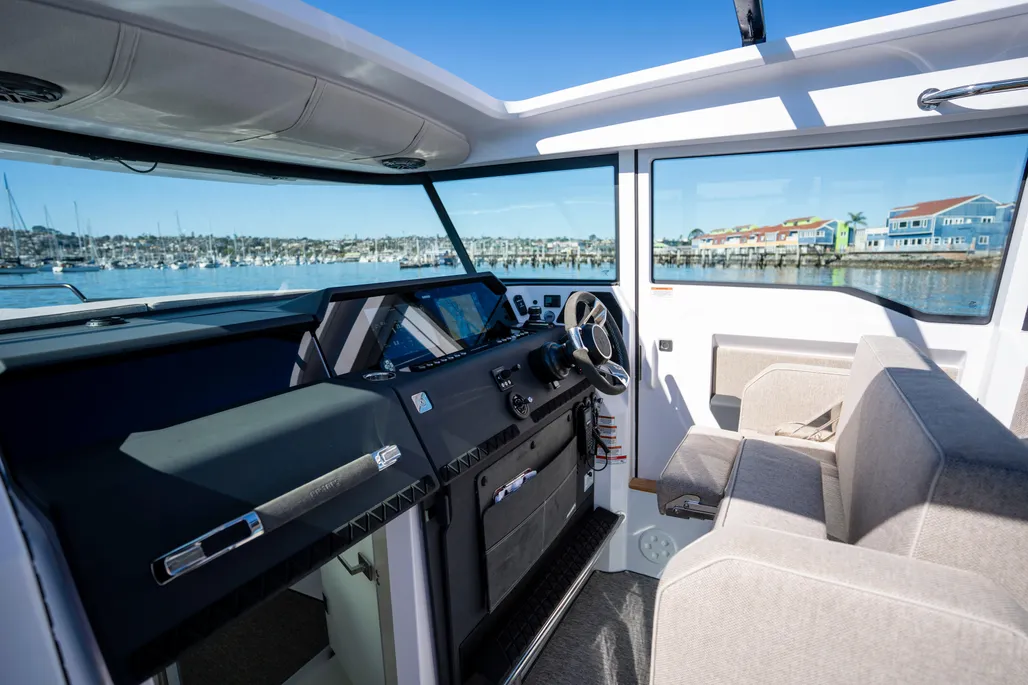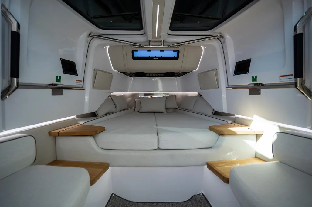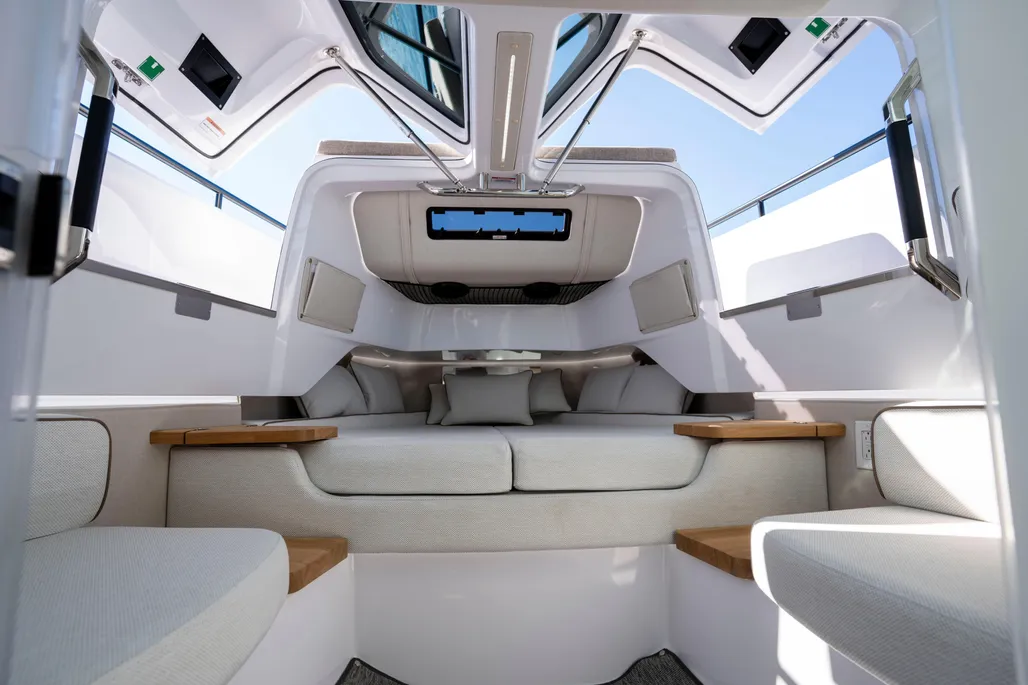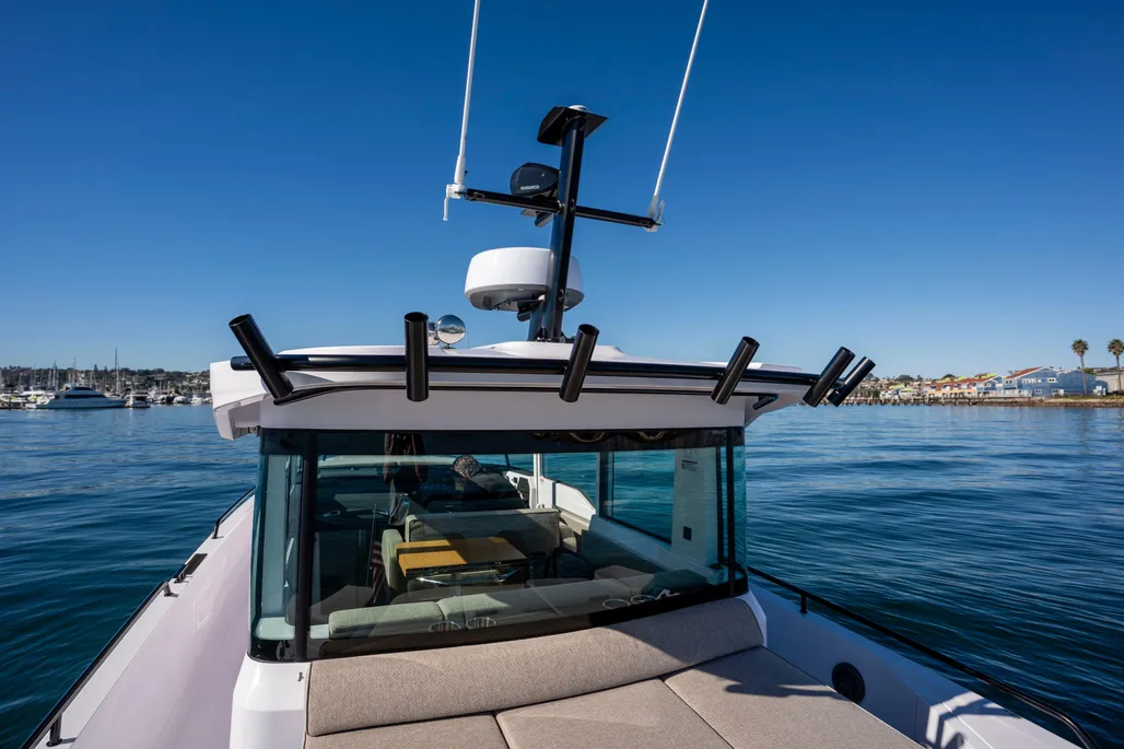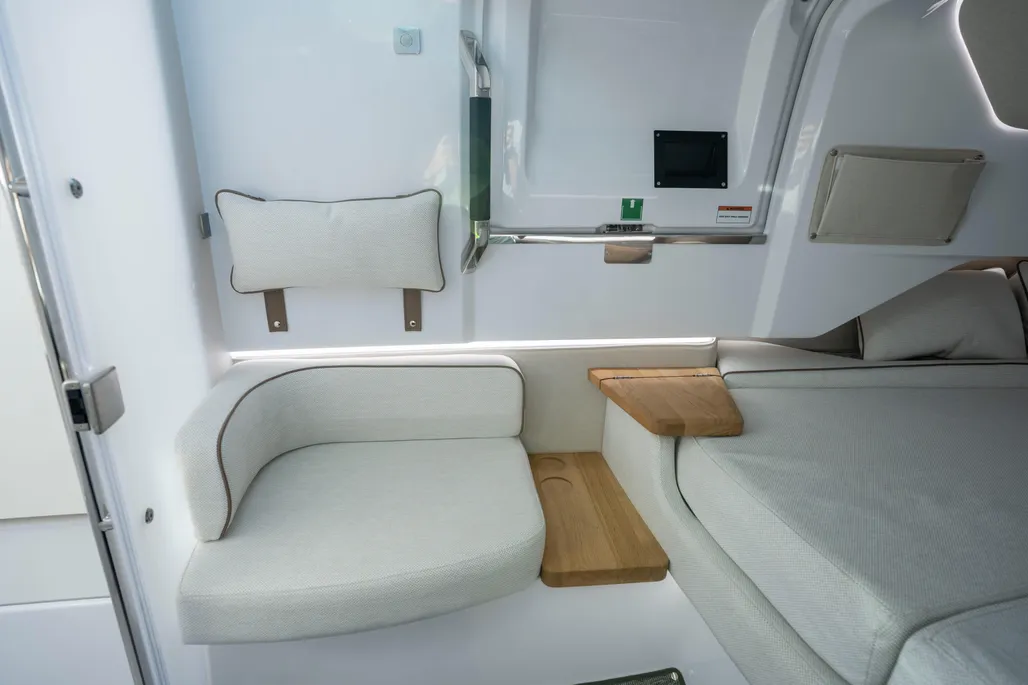 This model seamlessly blends the versatility, effortless movement, and social connectivity of an outboard walkaround center-console with the protection and refinement of a fully enclosed, weatherproof cabin—challenging traditional perceptions of cabin boats with its striking design.
