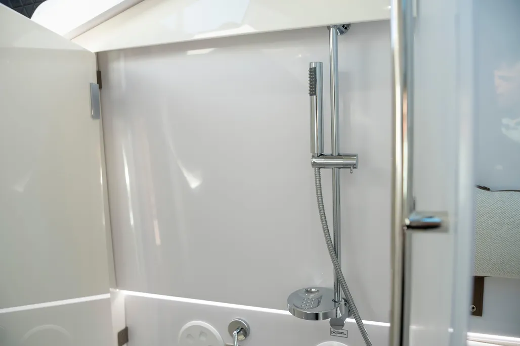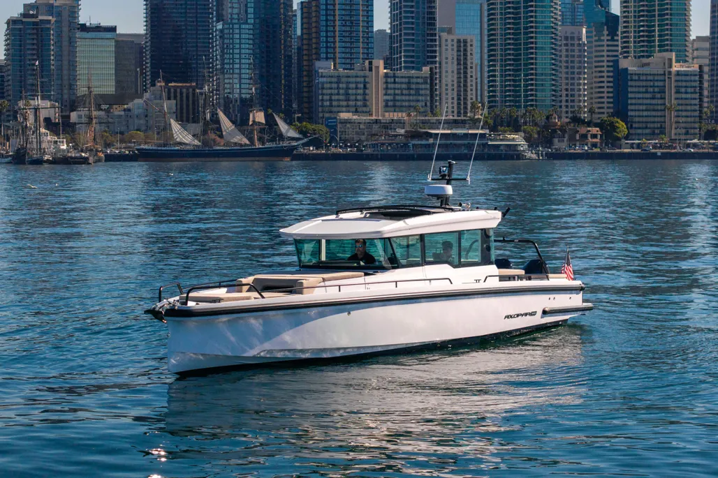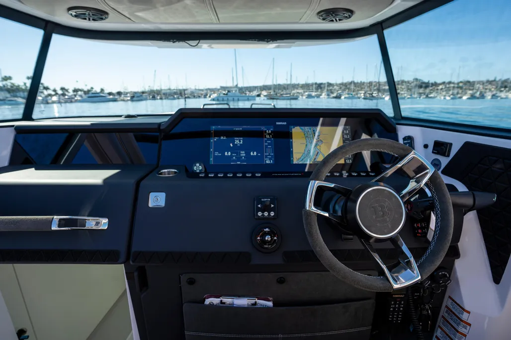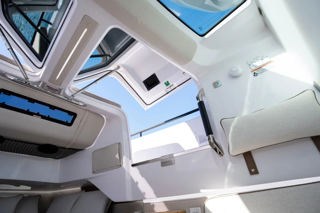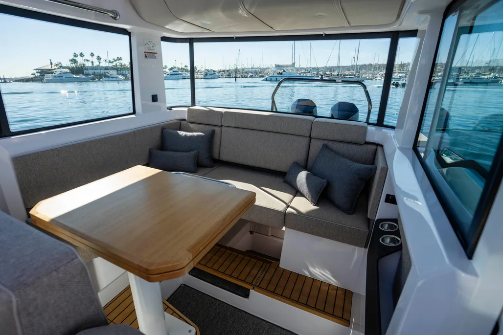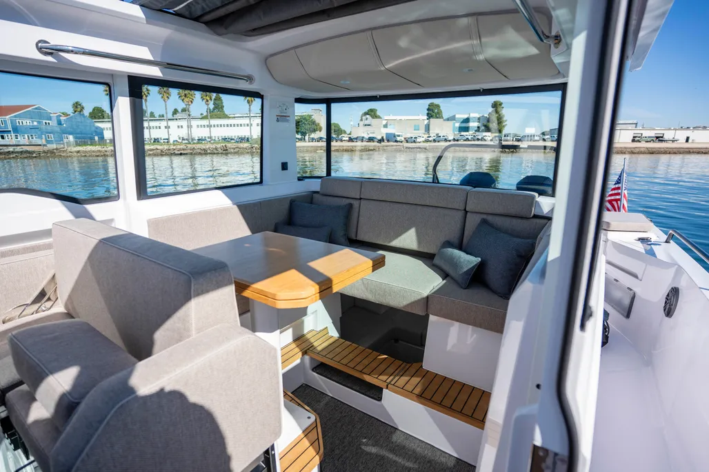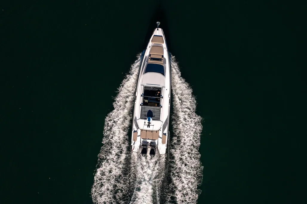 This model seamlessly blends the versatility, effortless movement, and social connectivity of an outboard walkaround center-console with the protection and refinement of a fully enclosed, weatherproof cabin—challenging traditional perceptions of cabin boats with its striking design.