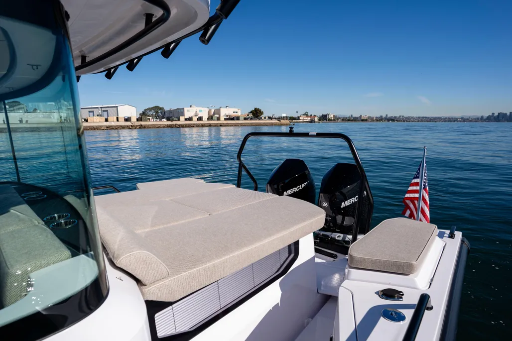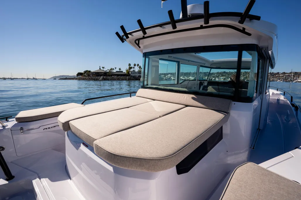 Building upon the perfectly balanced layout of the Axopar 37, this edition enhances both style and comfort with a refined, laid-back aesthetic. Luxurious upholstery features intricate yet understated detailing, textured marine fabrics, and accentuated patterns—complemented by contrast-colored pillows and piping for a sophisticated touch. Thoughtfully chosen materials ensure a cool, inviting atmosphere, even on the sunniest summer days, making every moment on board effortlessly enjoyable.
