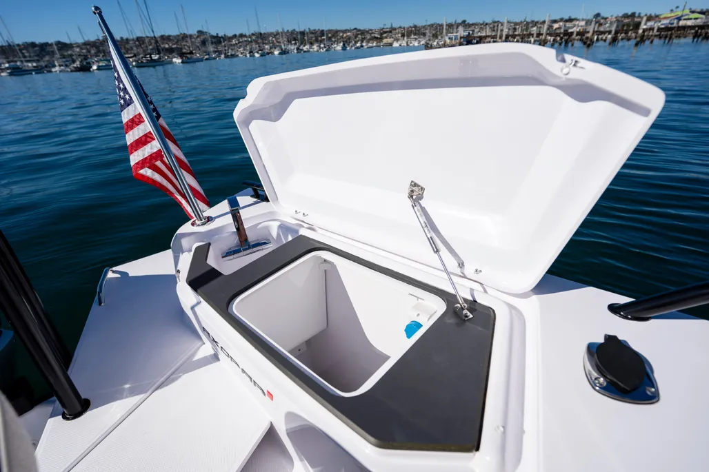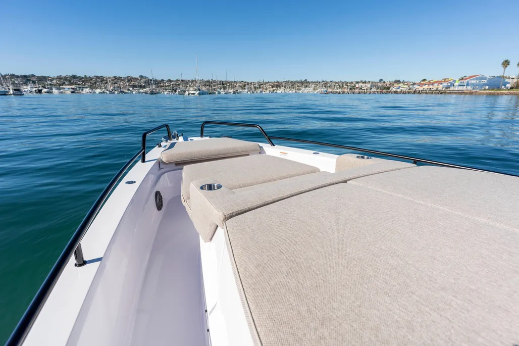 - Extended fore-deck seating with cupholders, fixed armrests and storage