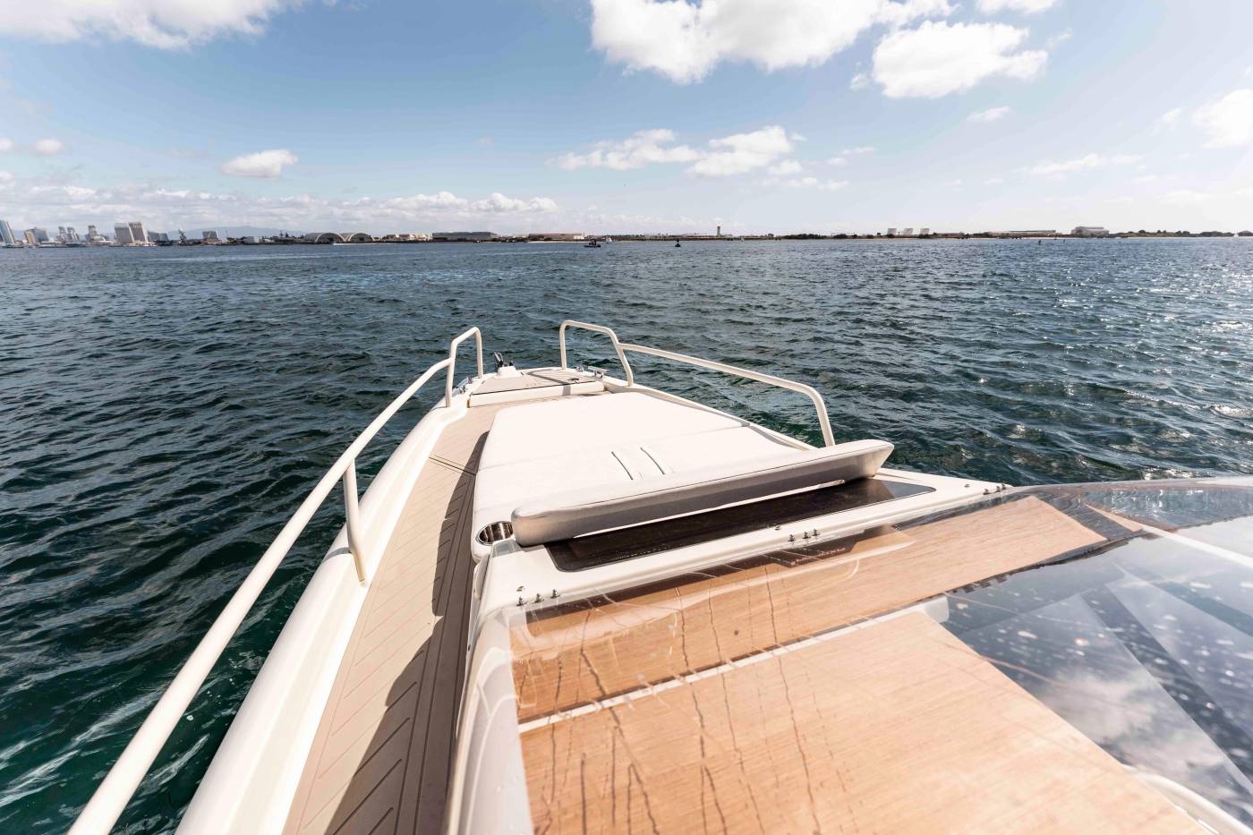 - Access to Front Cabin via Tinted Sliding Door on Starboard Side