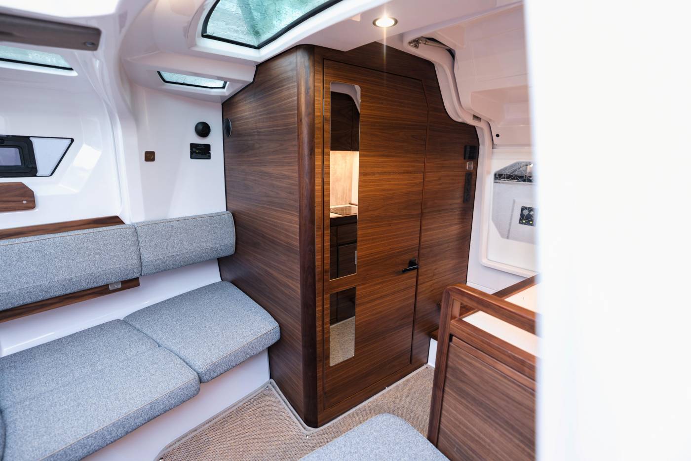 - Front cabin carpet in grey.
