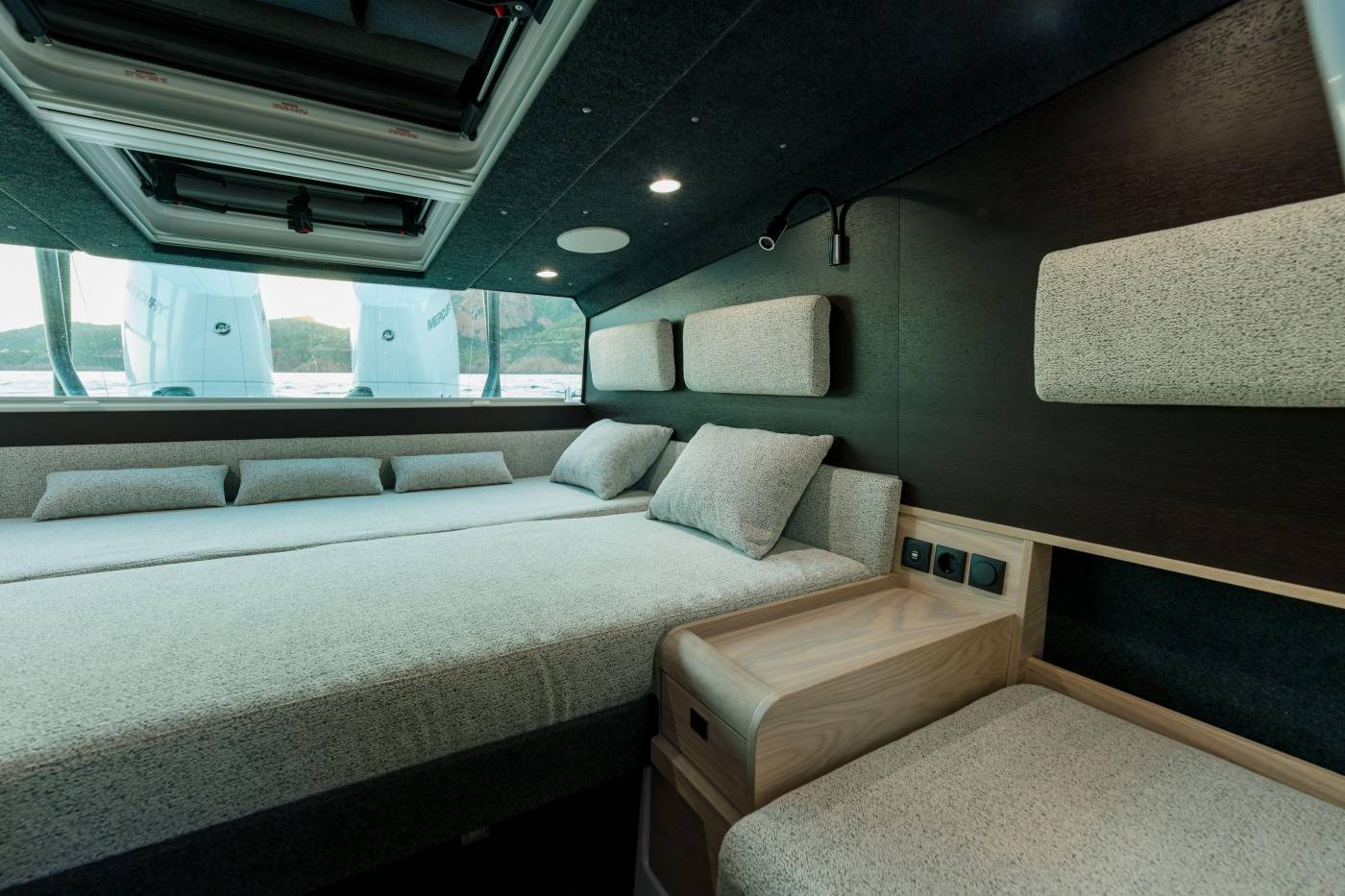 The Axopar 45 XC Cross Cabin 2026 combines cutting-edge design, all-weather comfort, and high performance. Powered by triple Mercury Verado V8 or twin V10 engines with a 920Ah lithium battery pack, it delivers effortless speed and range. The fully enclosable cabin with Webasto heating, aft and front cabins, wet bar, barbecue, additional fridge, sunshades, and premium JL Audio system ensures comfort and entertainment. With twin Simrad displays, radar, Axopar Connectivity, BRABUS Line trim, and extensive customization, the 45 XC is the ultimate adventure-ready, stylish cruiser.