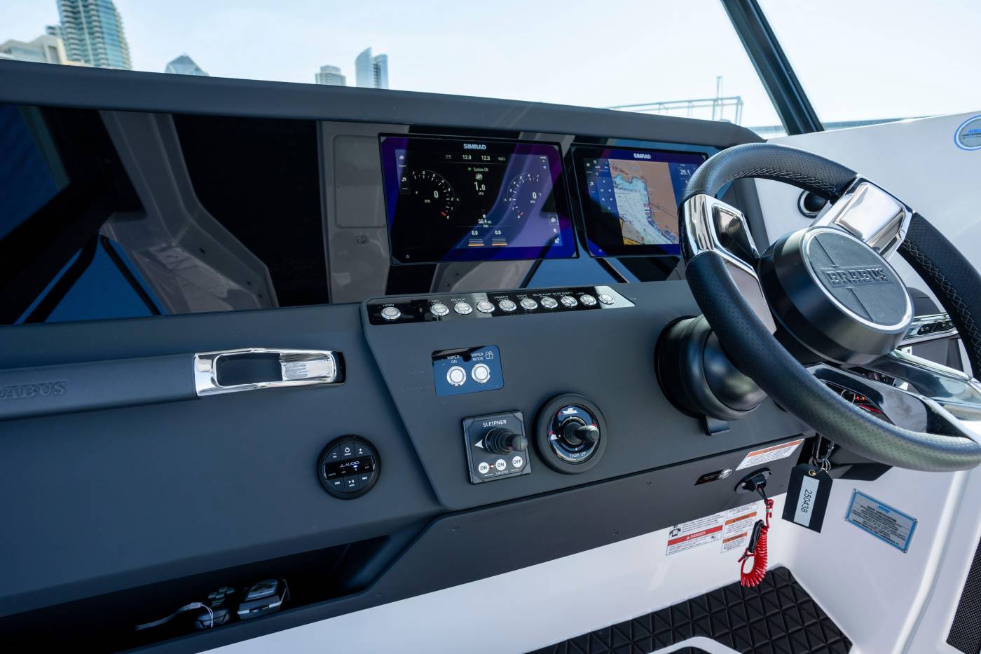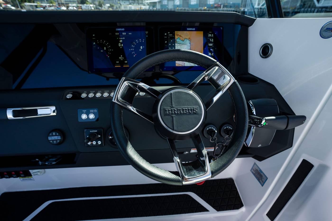 - Black BRABUS Line Soft decking on the footrest in the helm
