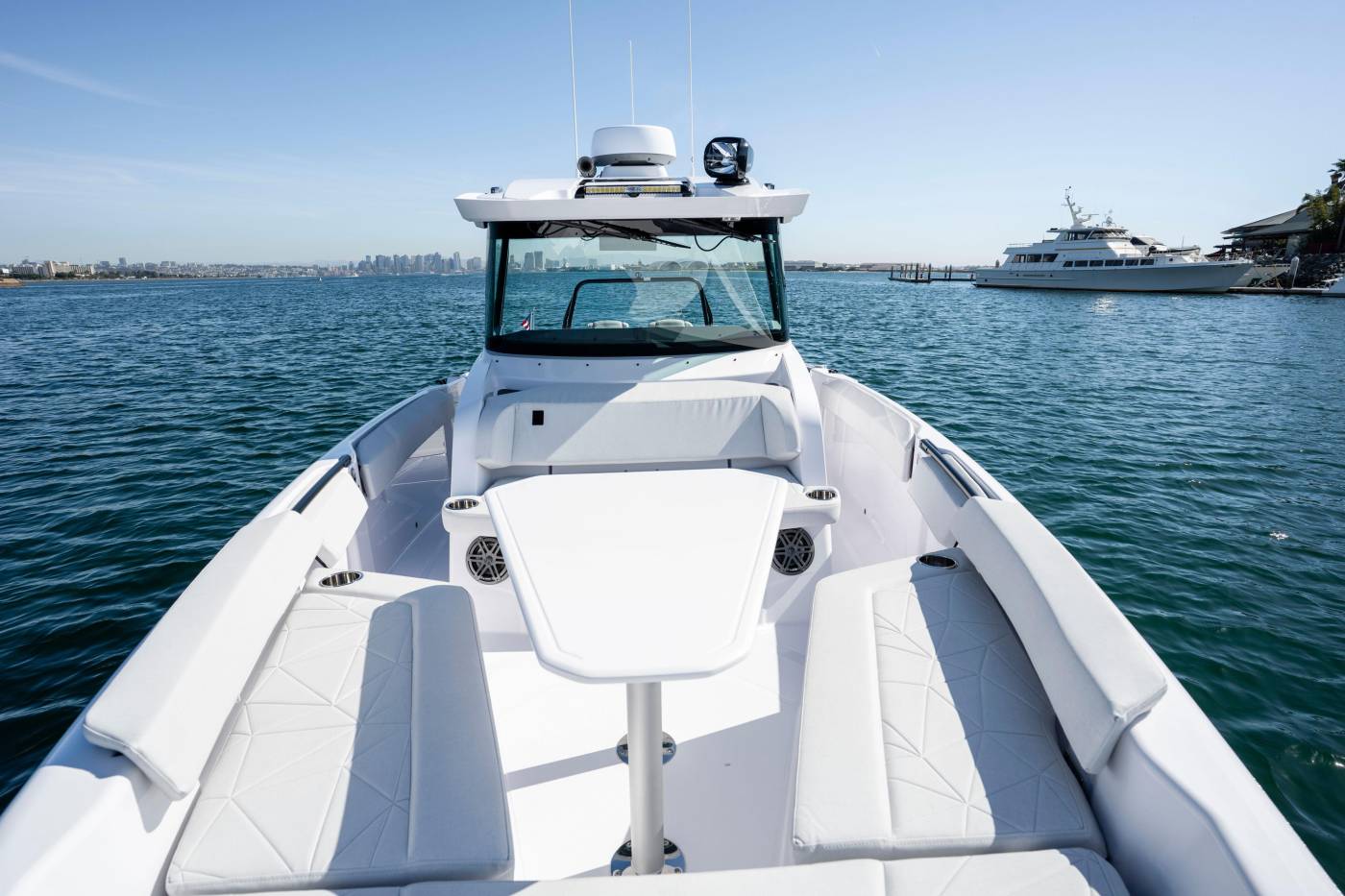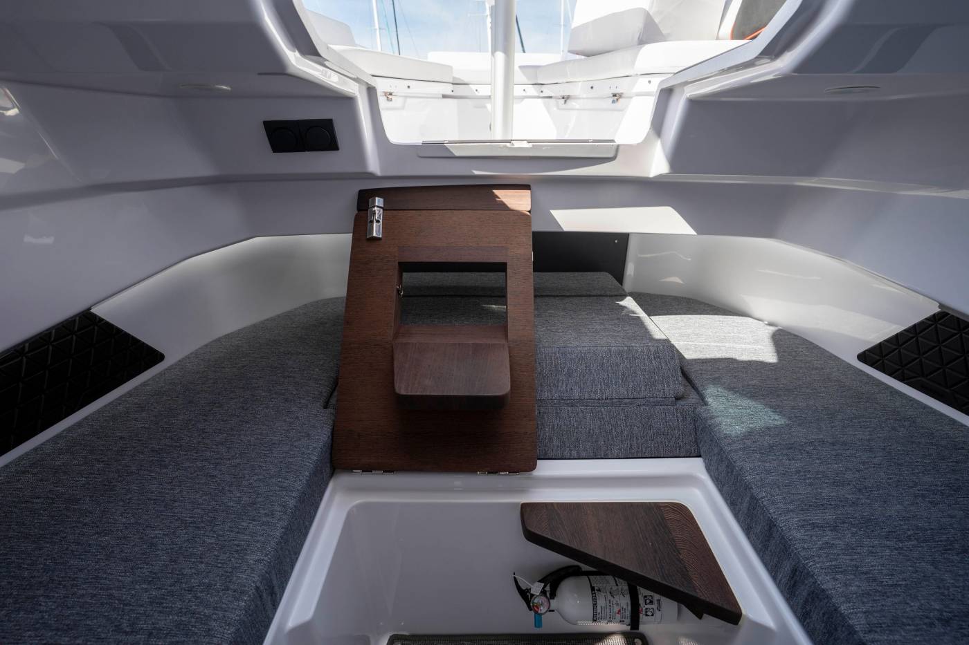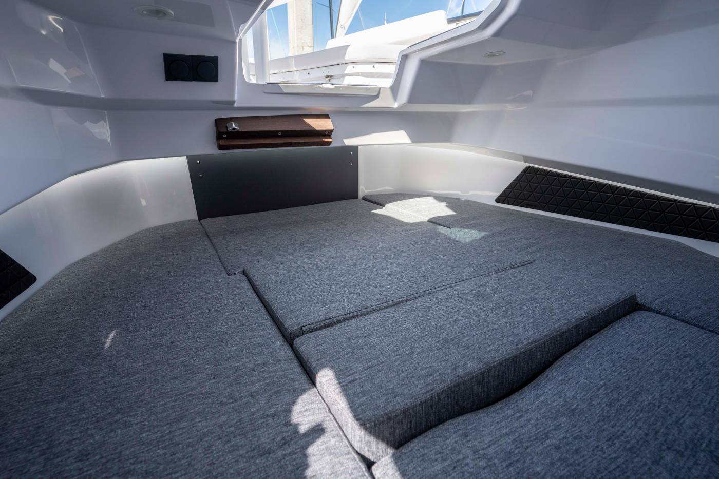 Multi-Cabin Upgrade Package: The multi-cabin forward design enhances the boat’s versatility by offering ample storage as a standard feature. It includes a toilet and sink, along with additional mattresses that convert the space into a comfortable overnight retreat for two. This well-considered layout ensures that the full functionality of the aft deck is preserved, delivering both convenience and comfort without compromise.