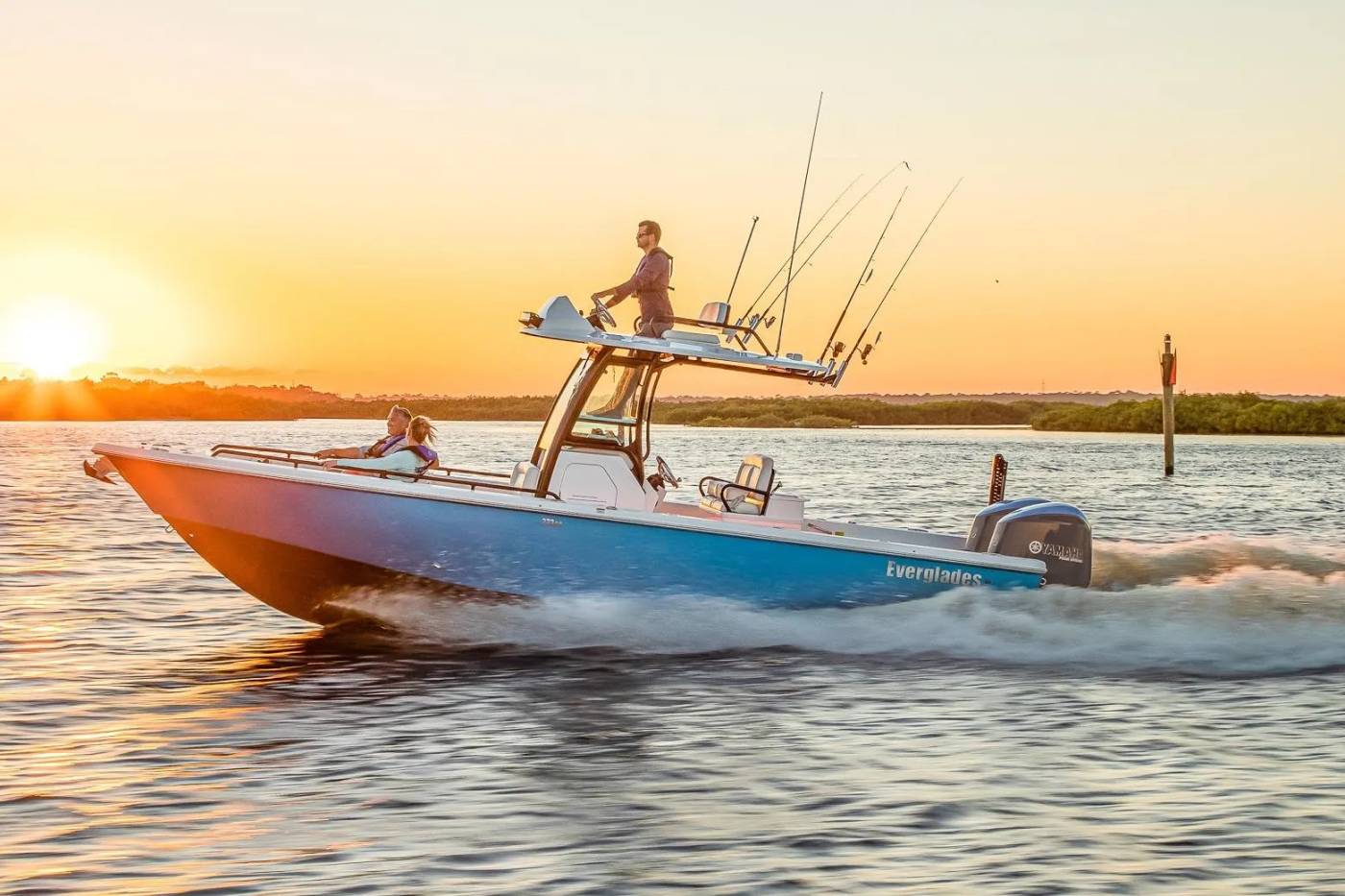 The Everglades 273CC hybrid center console is built to handle it all—effortlessly navigating shallow waters while maintaining the capability and confidence to venture offshore. With a shallow draft of just 18 inches and lower gunwales, it glides through skinny water with ease, while its advanced hull design delivers a smooth, stable ride in more demanding conditions. Designed to maximize time on the water, it features thoughtful conveniences like an electric windlass for easy anchor handling and an innovative upper station that enhances visibility and control with a second helm, sliding sunroof, and integrated fishing features. Powered for extended range and performance, the 273CC empowers you to explore further, fish smarter, and spend less time worrying about conditions—making it the perfect balance of versatility, utility, and adventure.