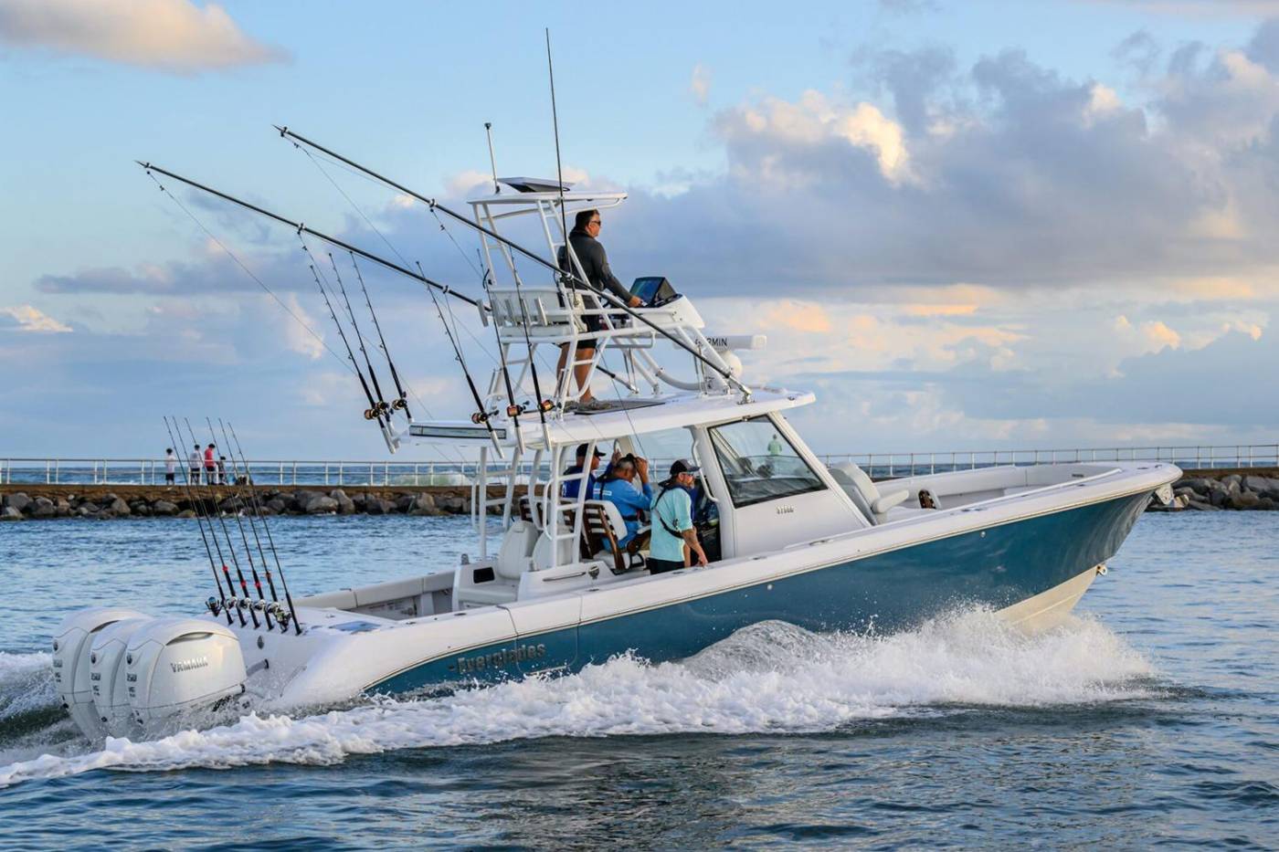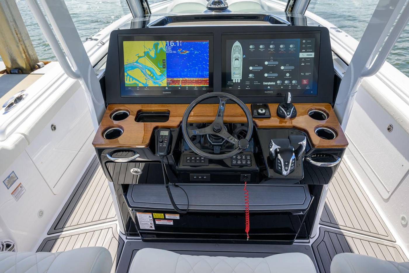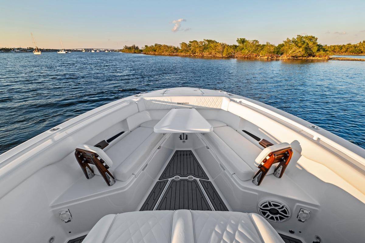 The Everglades 375CC is a top-tier 37-foot center console fishing boat designed to elevate your boating experience, seamlessly blending advanced engineering with performance, comfort, and versatility. Built for serious anglers and boating enthusiasts alike, it delivers exceptional capability alongside innovative features and refined amenities that enhance every moment on the water. From its spacious cabin with a convertible berth and enclosed head to the thoughtfully designed seating and climate-controlled areas, the 375CC ensures a premium onboard experience from bow to stern. Its durable construction and self-bailing cockpit provide confidence offshore, while an expansive fishing setup—complete with multiple livewells, insulated fish boxes, generous rod storage, and a wide-open cockpit—offers unmatched fishability. Whether chasing offshore trophies or enjoying a relaxed day with family, the 375CC is equipped to deliver the ultimate boating journey.