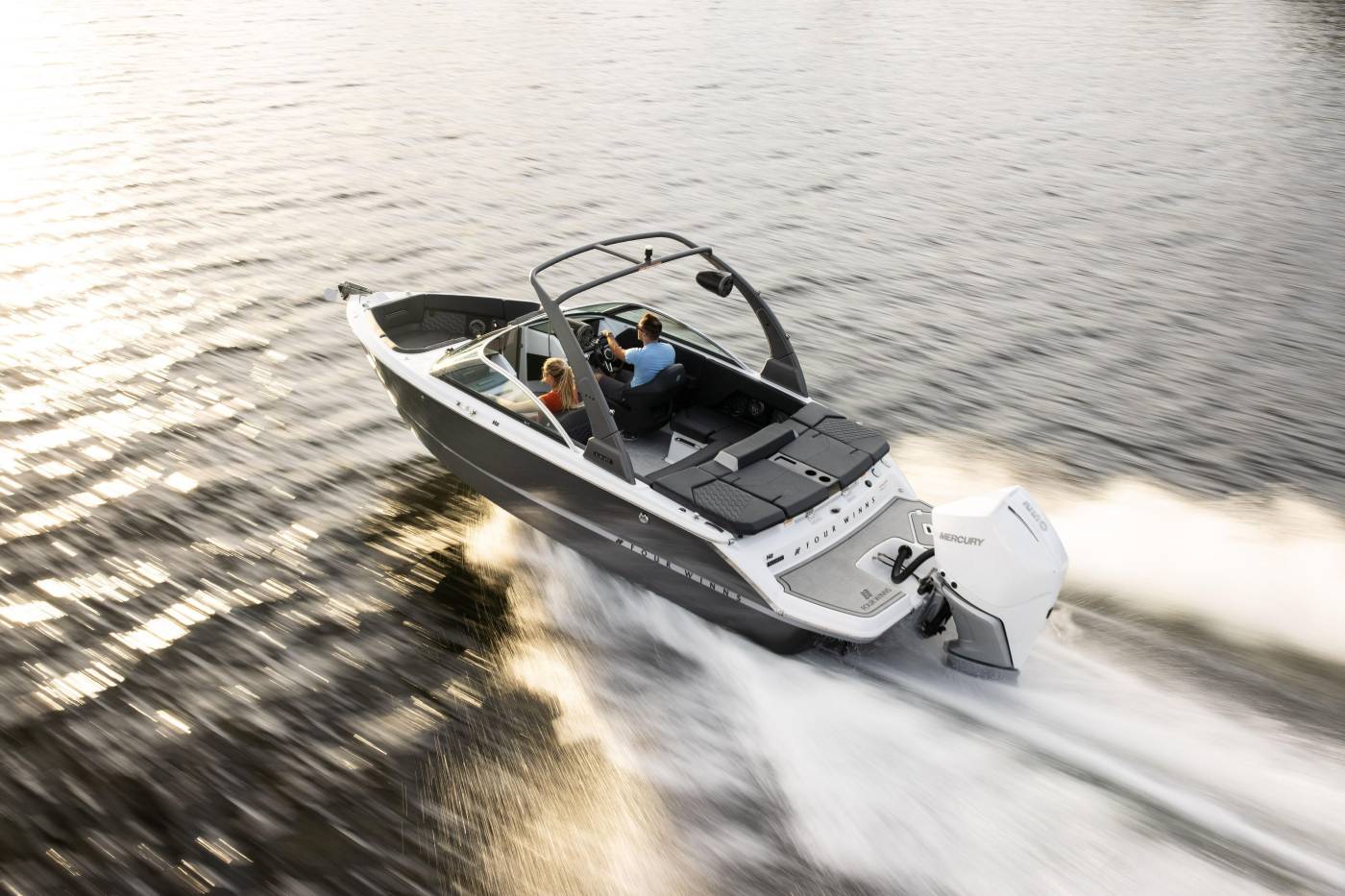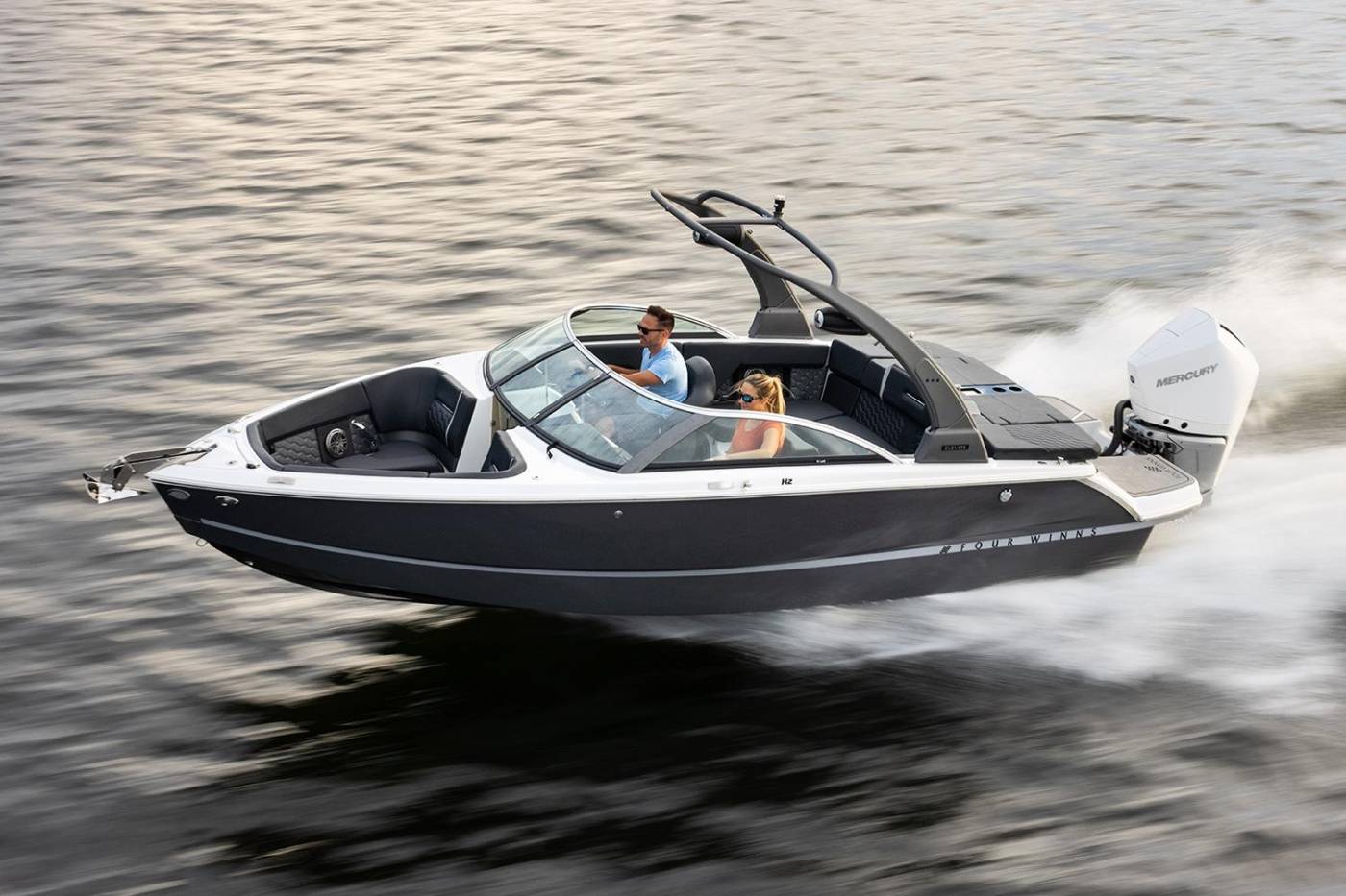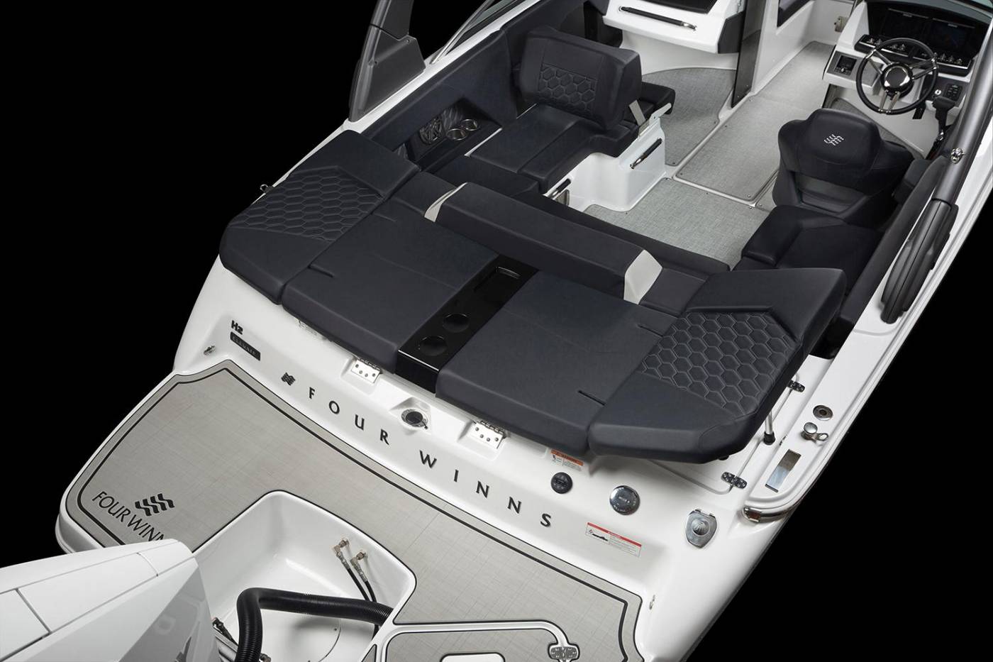 The H2 Outboard is a refined expression of versatility and performance, designed to create memorable moments on the water. With agile handling and exhilarating power, it pairs responsive capability with a sleek, modern silhouette. True to the H-Series aesthetic, the H2 OB features a near-vertical stem, sculpted curves, and an elegantly arched windshield—capturing the signature sophistication of Four Winns design. Inside, hand-sewn fabrics and rich textures are meticulously crafted to deliver a flawless, elevated finish. The spacious U-shaped cockpit with a flip seat offers a welcoming layout for socializing and relaxation, while smart storage solutions keep essentials close without sacrificing space. Every detail is thoughtfully considered to enhance comfort and maximize enjoyment on every outing.