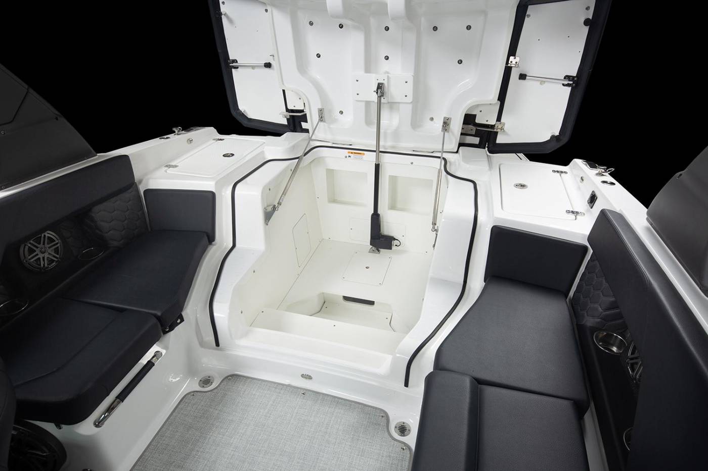 - Ski locker, in-floor, w/ gas-assist hinged lid & mat