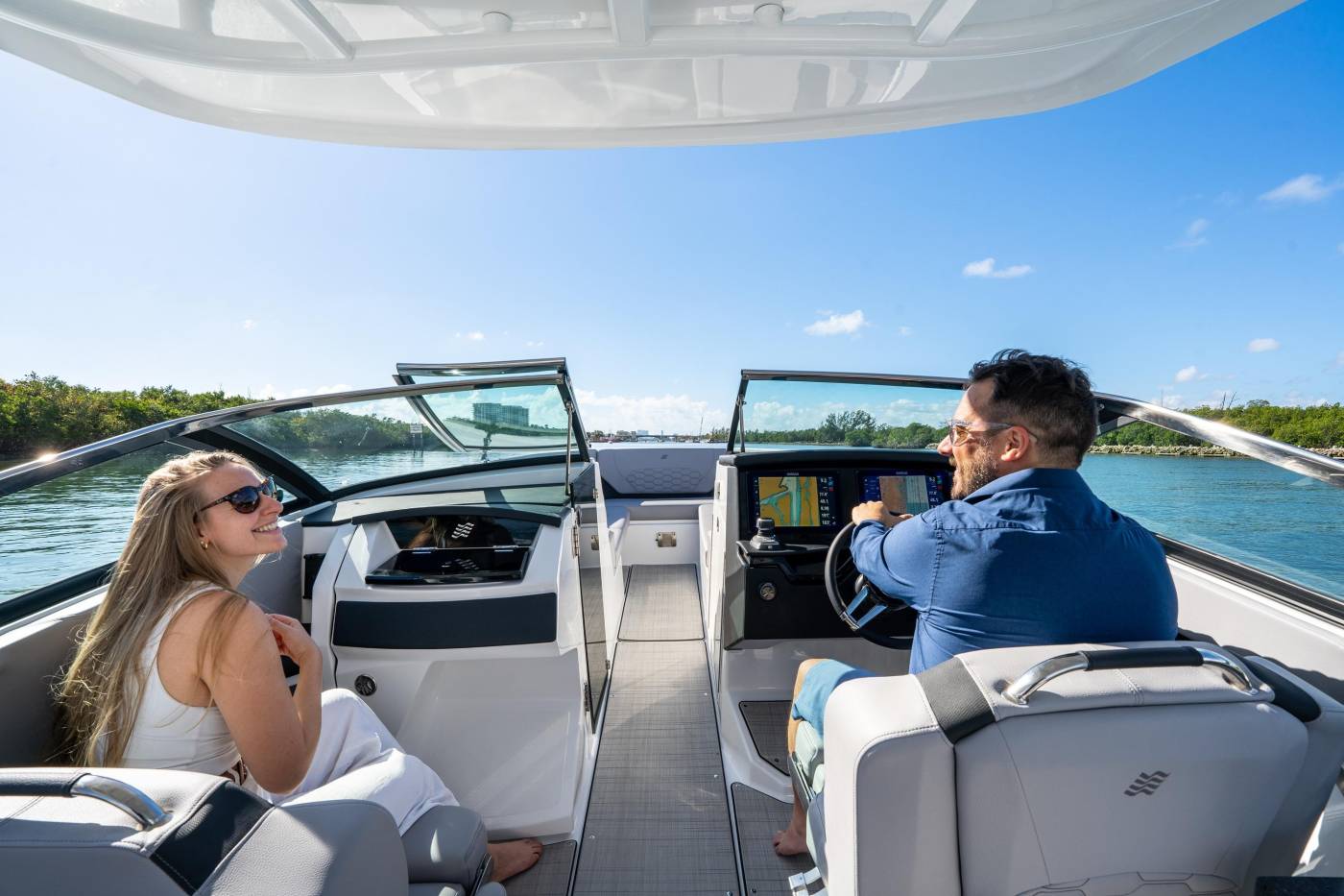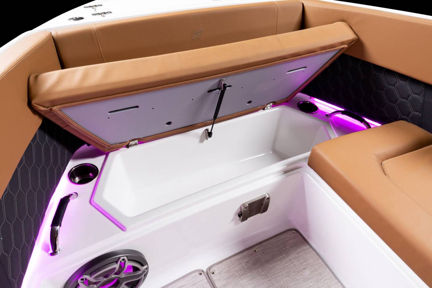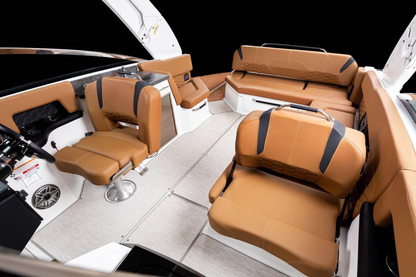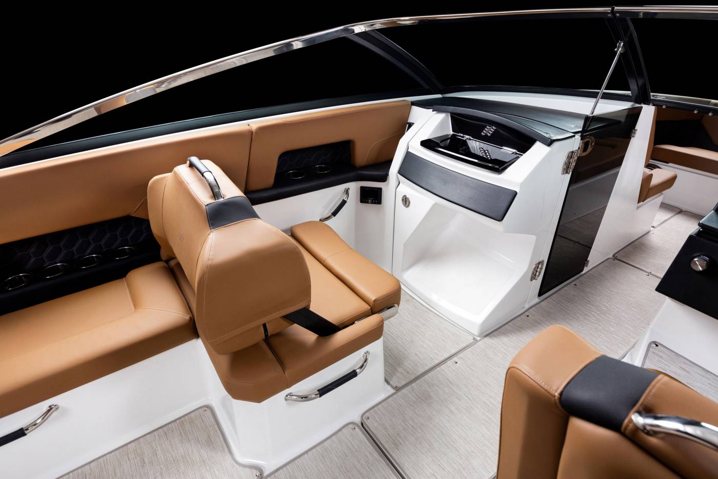 Discover elevated style and performance with the H9 Outboard, where sleek H-Series lines meet contemporary innovation. Its elongated profile and vertical stem create a striking silhouette while improving stability, and the seamless windshield design offers panoramic views with timeless appeal. Inside, hand-sewn premium upholstery, refined textures, and stainless-steel details deliver exceptional comfort and sophistication. Thoughtfully designed for both relaxation and functionality, the H9 OB features fold-down side terraces, a convertible sunbathing backrest, ample storage, and a convenient built-in galley—perfectly uniting luxury, versatility, and effortless enjoyment on the water.