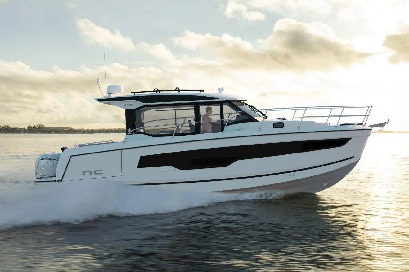 The NC 1095 Series 2 introduces a new era of weekend adventure, redefining family cruising with elevated comfort, smart functionality, and contemporary style. Available in both Flybridge and Coupe versions, this next-generation design draws inspiration from the flagship 1295, delivering big-boat capability in a perfectly sized package for unforgettable days on the water. The NC 1095 Coupe Series 2 is thoughtfully engineered for extended getaways, featuring increased freshwater capacity and the option of a second refrigerator to support longer, more independent cruising. Its optimized cockpit replaces the traditional layout with a spacious U-shaped salon, creating a welcoming environment ideal for relaxation and connection. Inside, large opening sunroof panels flood the interior with natural light and fresh air, enhancing the sense of openness and freedom. Forward, integrated sun loungers and facing bench seating create a versatile social space, while aft, a fold-out terrace expands into a generous swim platform for effortless access to the water. With dedicated storage for water toys like paddleboards and every detail designed around comfort and usability, the NC 1095 Series 2 transforms every outing into a seamless blend of relaxation, adventure, and discovery.