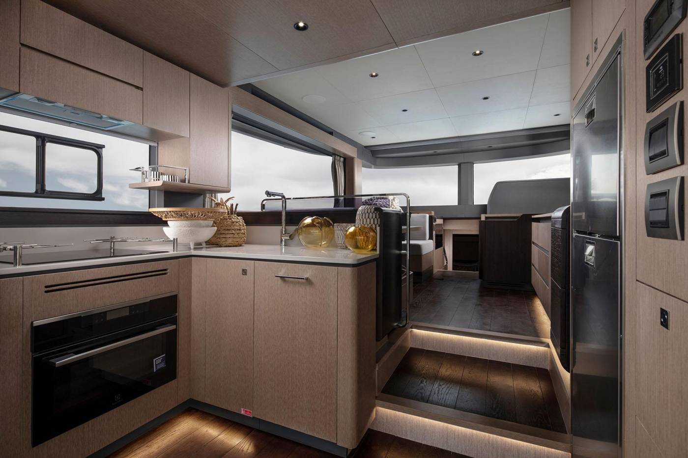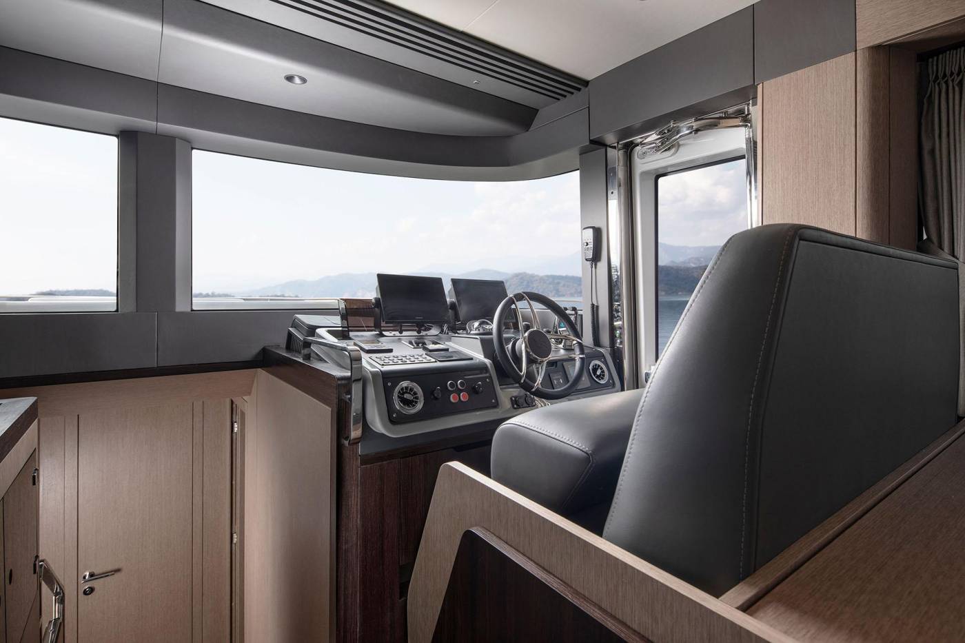 The interior of the Sirena 48 emphasizes comfort, flexibility, and intuitive design. Expansive windows fill the space with natural light, while an open layout enhances flow and ease of movement. Two décor schemes introduce warm textures and a refined, inviting atmosphere, allowing for a personalized onboard experience.