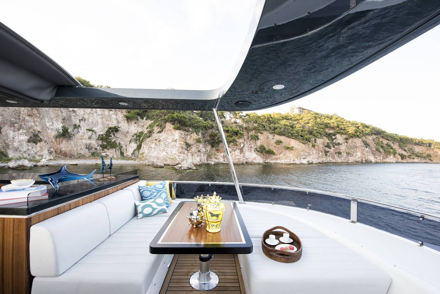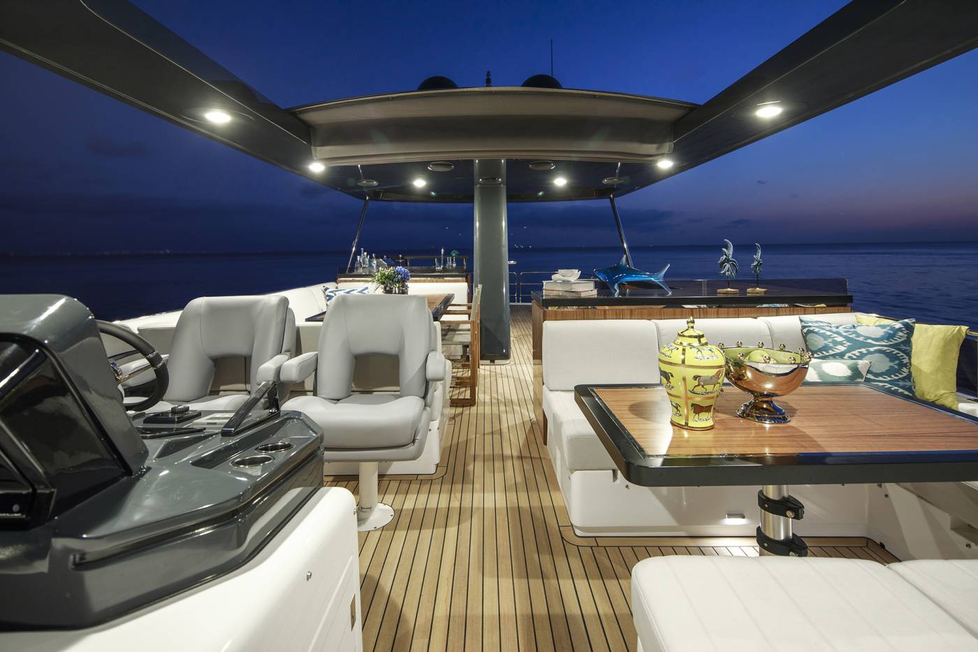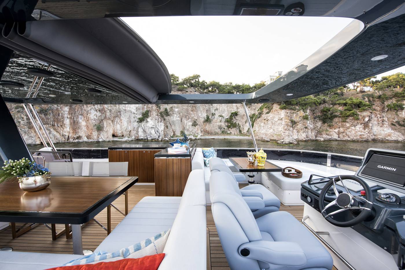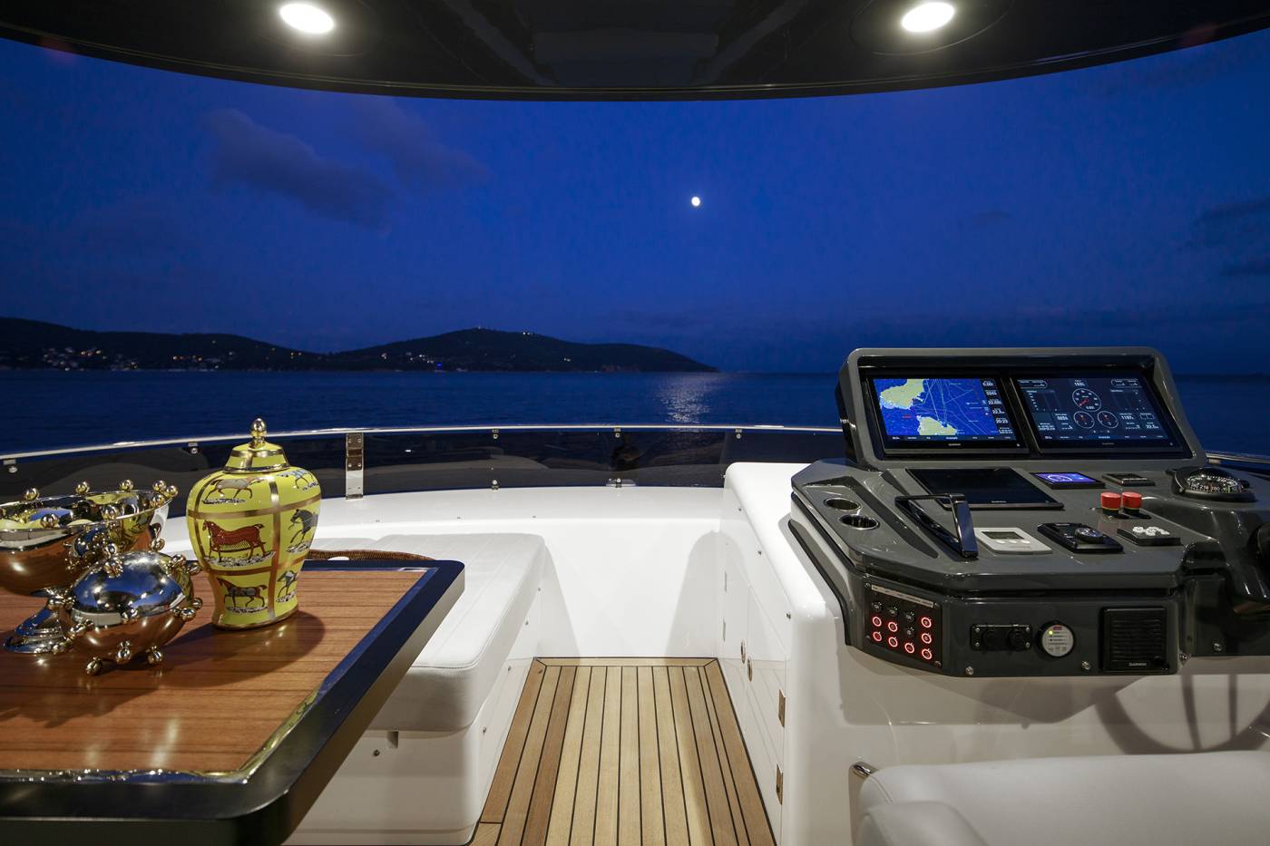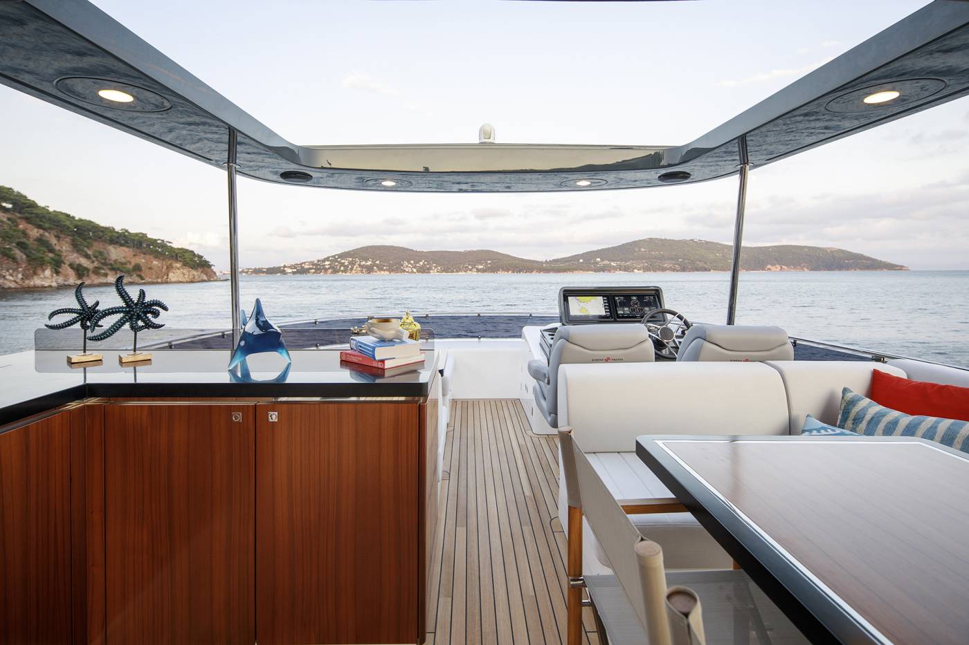 - Manual Hi-Lo Table – Flybridge Forward Port Seating (Convertible to Sunbathing Area)