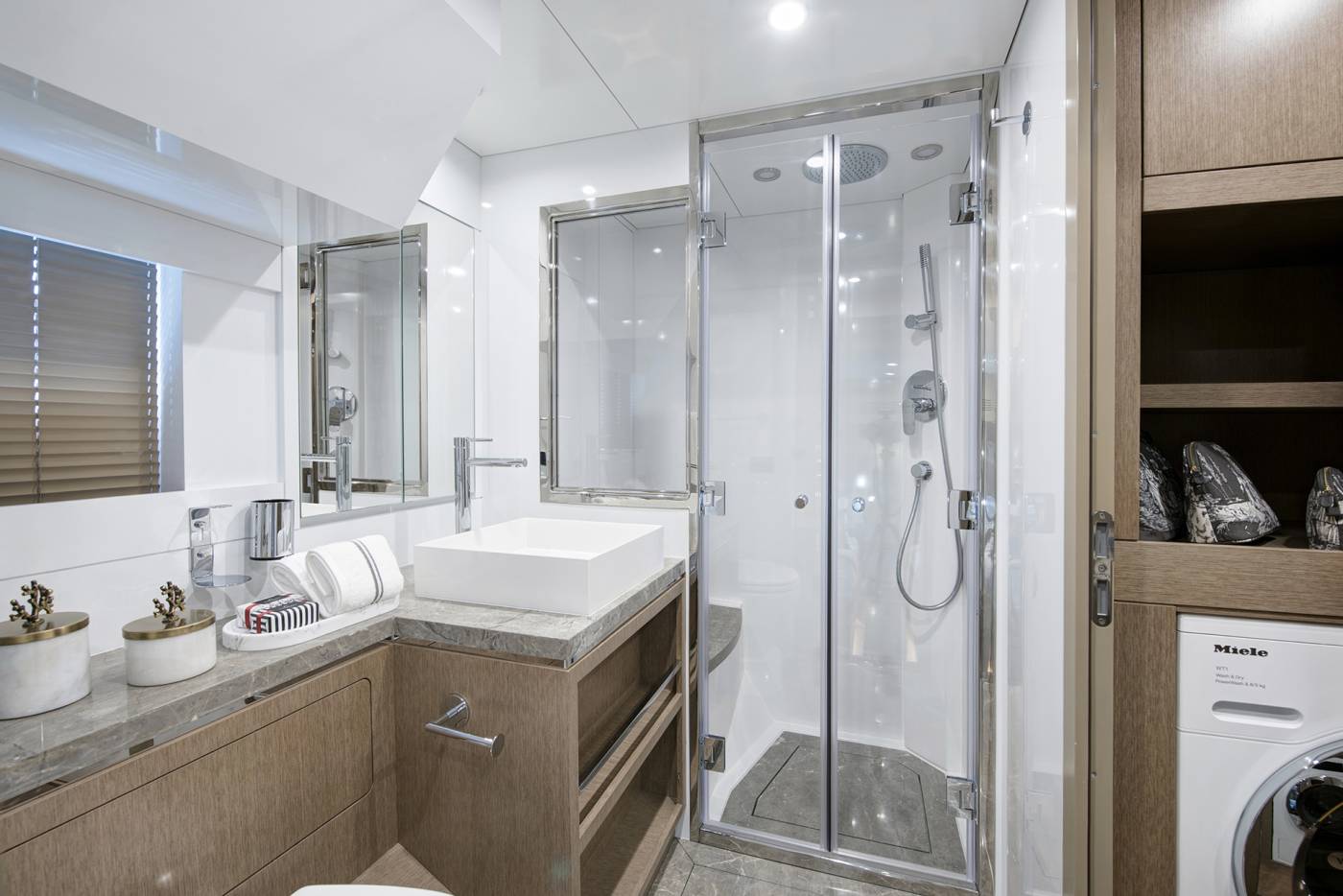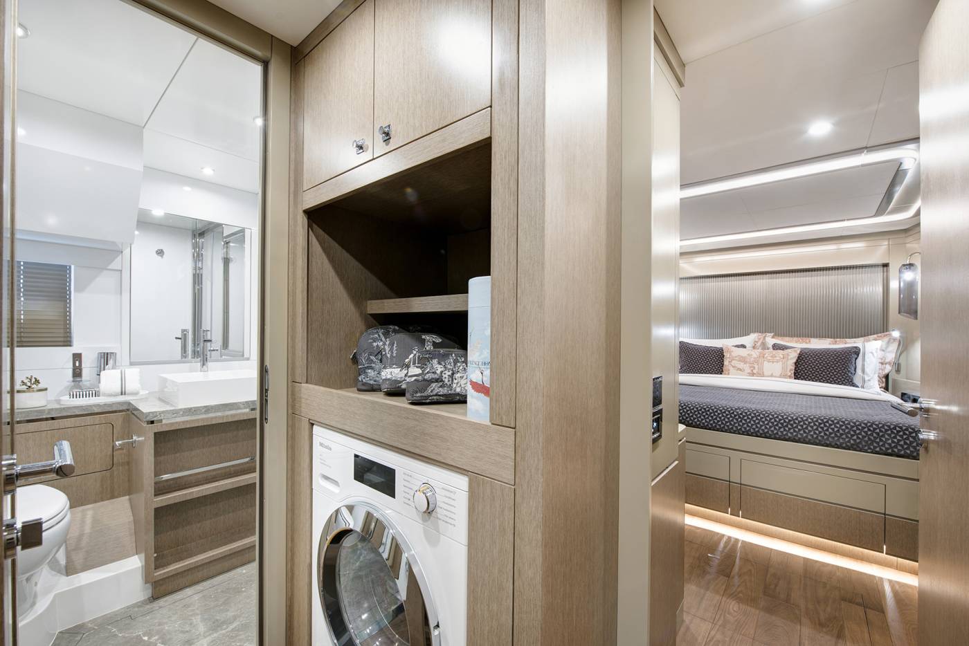 - Lower Deck Layout – Laundry Area with Washer and Dryer (Miele®) and Iron Table