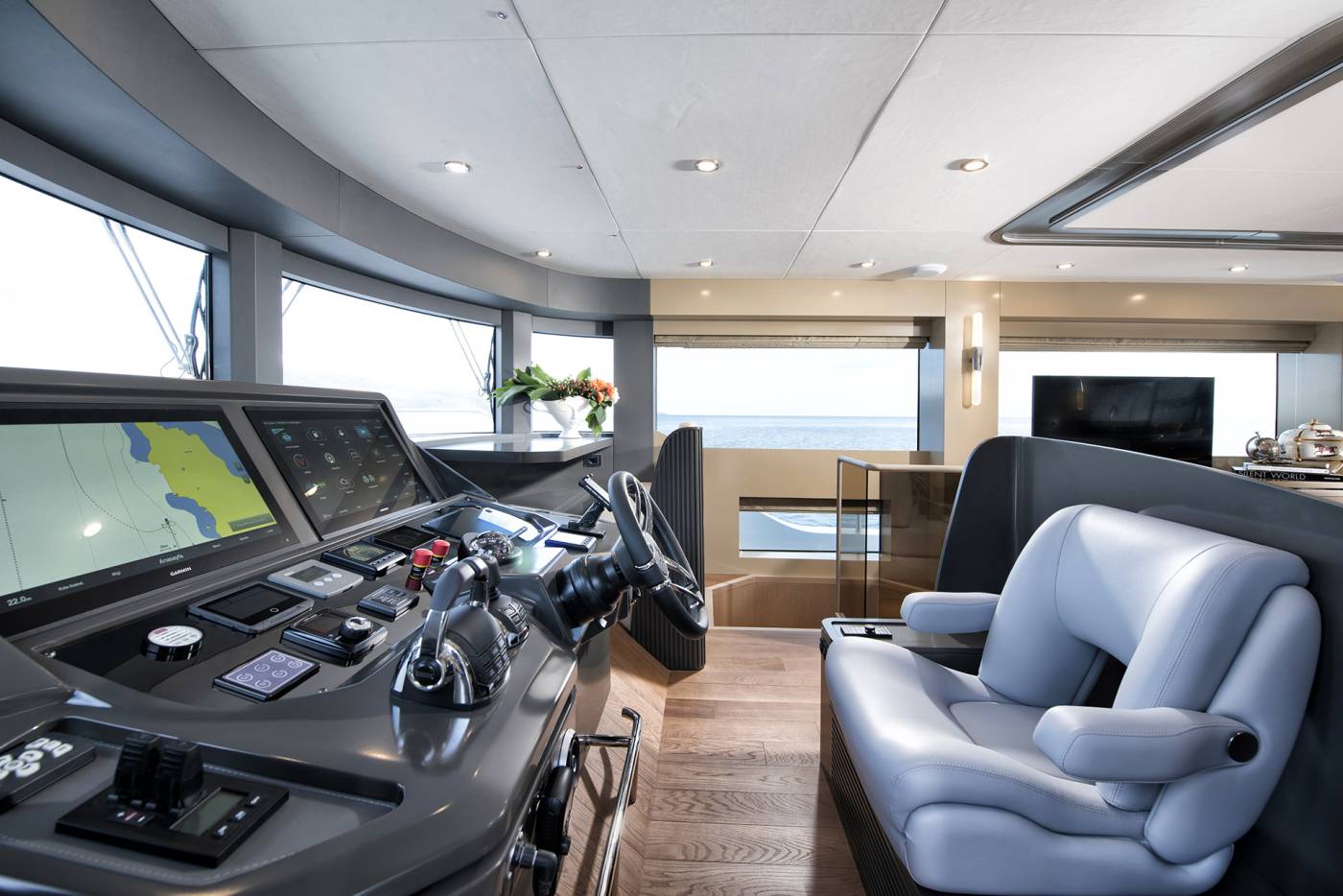 - Garmin® Diamond Package – 2x22" Chartplotters (Saloon), 1x16" Chartplotter (Flybridge), Open Array Fantom 54