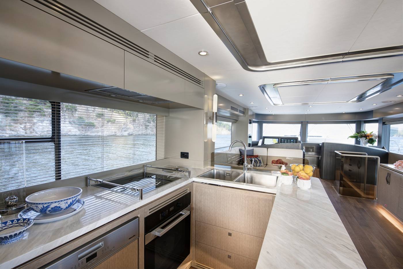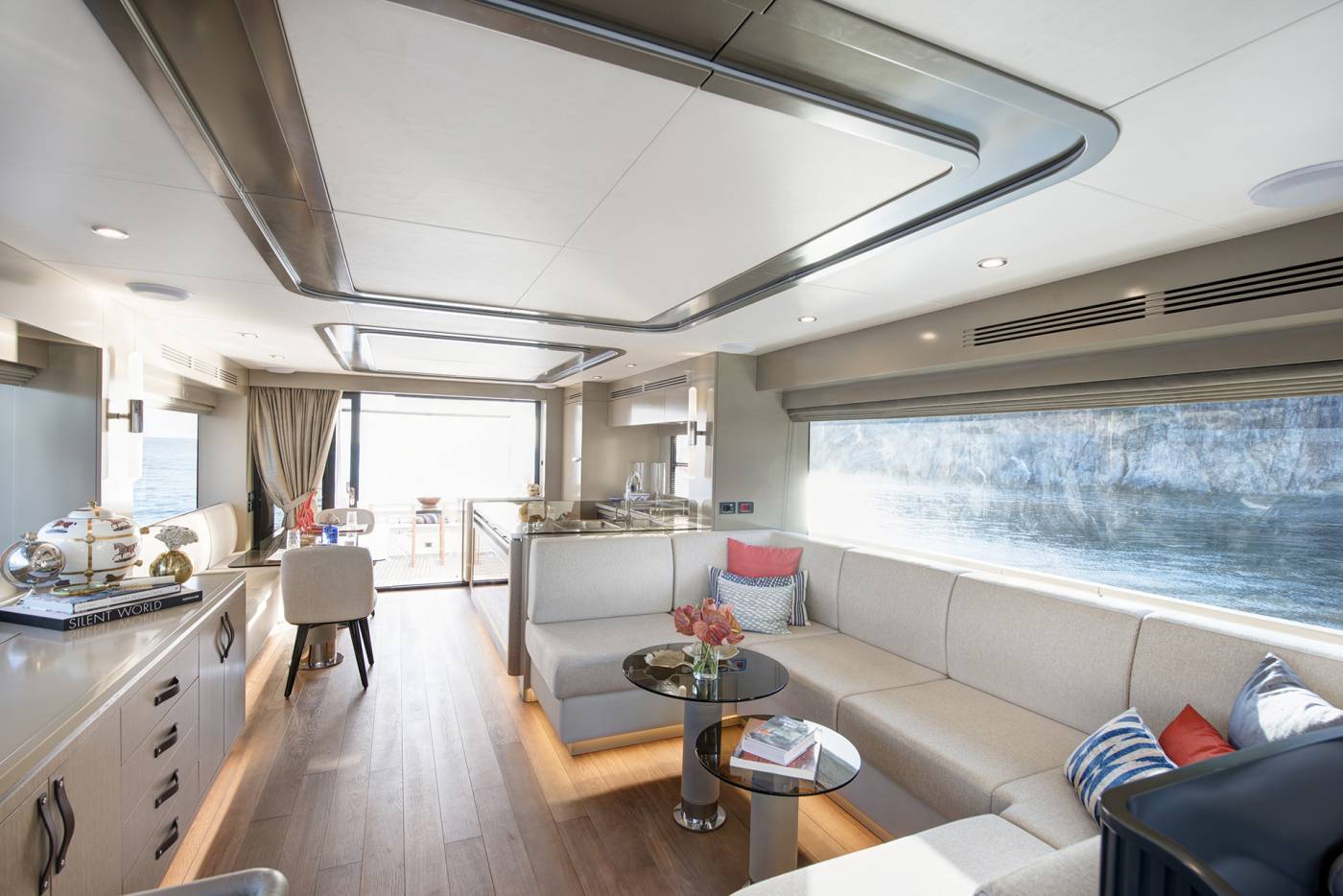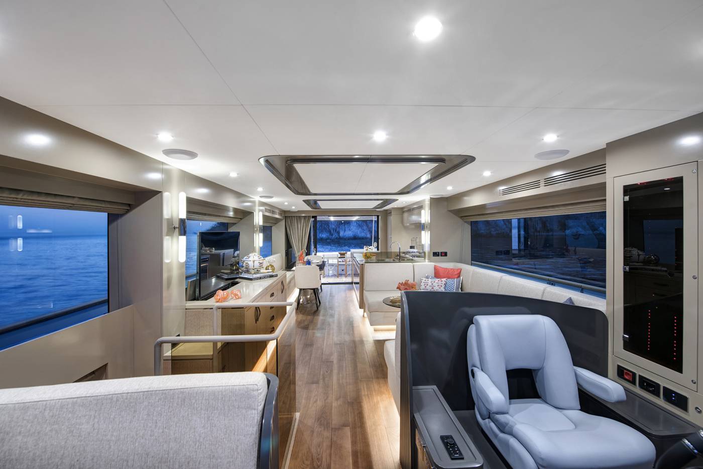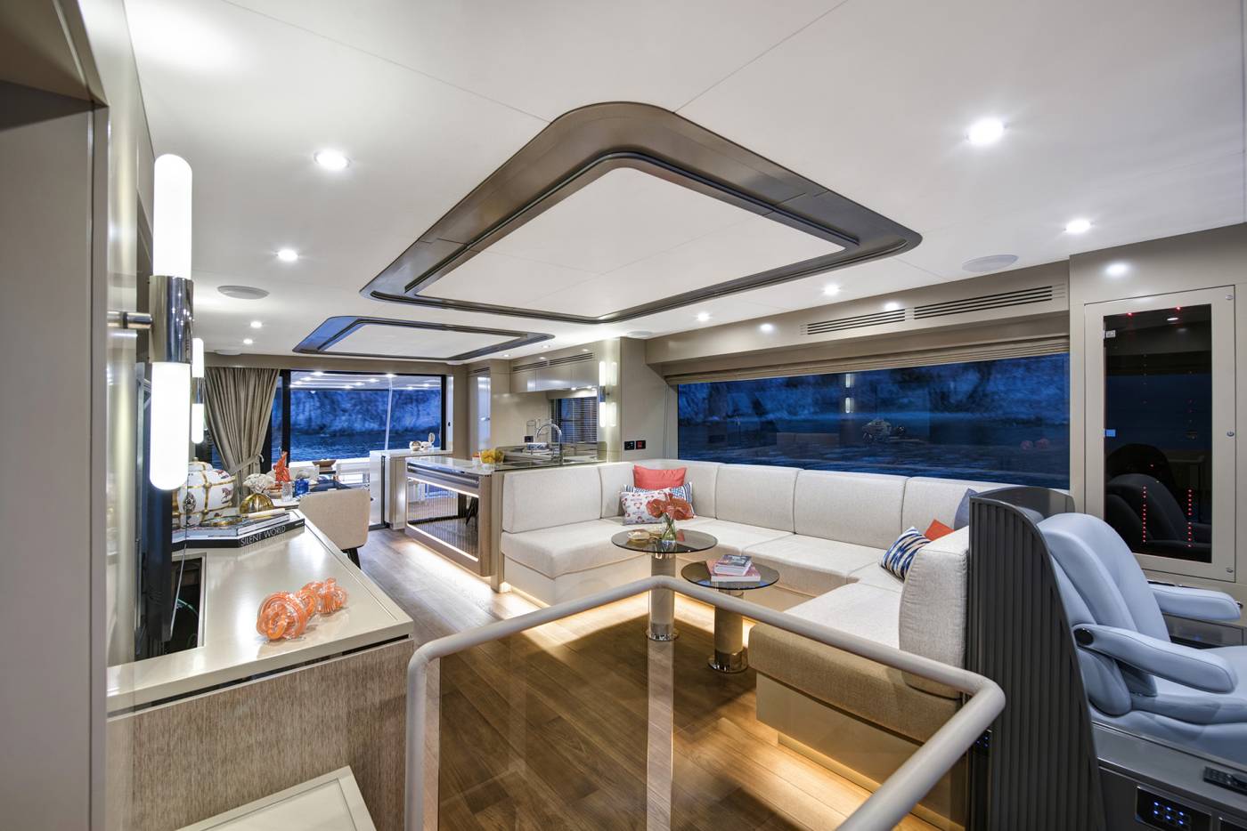 Inside, clean, purposeful design meets warm, inviting finishes, with light wood tones, soft lacquer, and refined accents creating a relaxed yet sophisticated atmosphere. Every detail is crafted to enhance comfort and livability, culminating in a flybridge that stands among the widest in its class—an elevated social hub designed for panoramic views and effortless entertaining. Built with a focus on well-being, style, and versatility, the Sirena 68 delivers a cruising experience that exceeds expectations at every turn.
