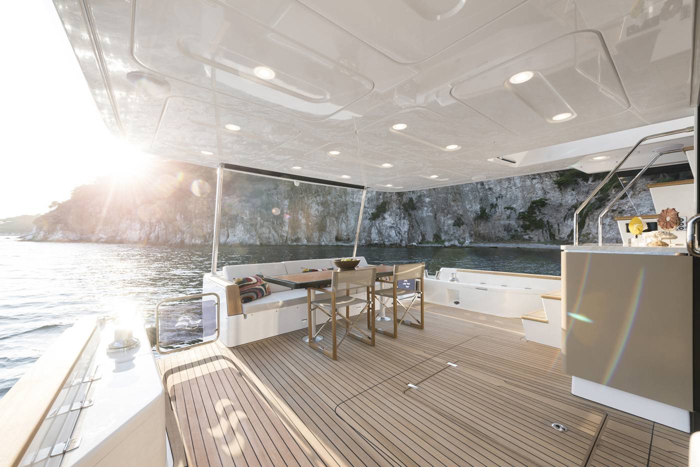 - Foredeck Electric Hi-Lo Table – Convertible to Sunbathing Area