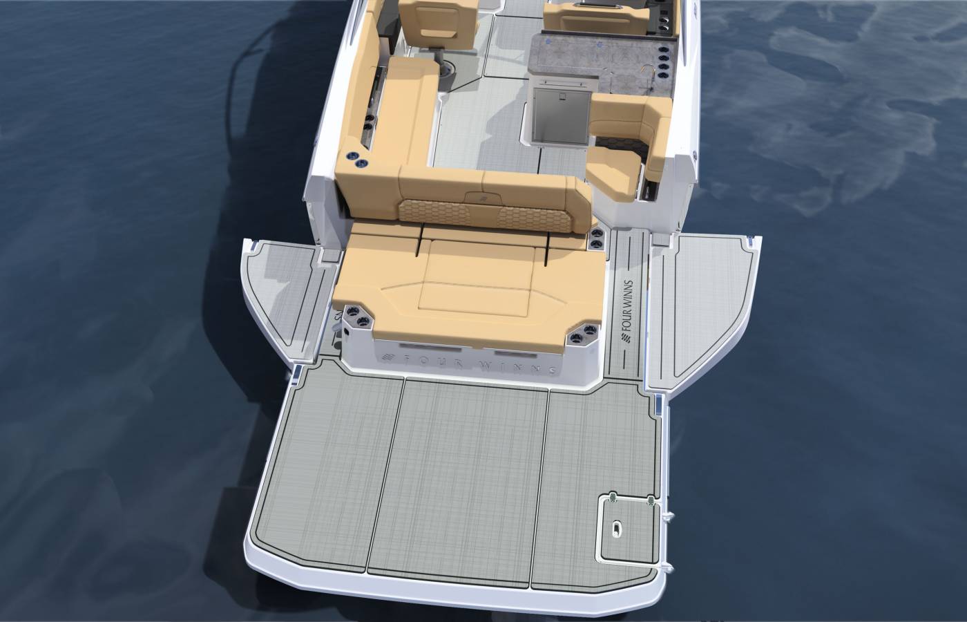 The H33 is designed to make every outing unforgettable. From bow to stern, every detail enhances comfort, style, and ease on the water. Unique in its class, the H33 Inboard features two expansive terraces, providing additional space for sun-soaked lounging and effortless water access—ideal for relaxing, entertaining, or diving into adventure. The oversized cockpit serves as the social heart of the boat, perfect for gathering, lounging, and enjoying the good life. A spacious sunpad with an electric backrest offers ultimate comfort, while the single-level layout ensures smooth, intuitive movement, making it especially well-suited for family outings. High freeboard and integrated handrails maximize safety on board.