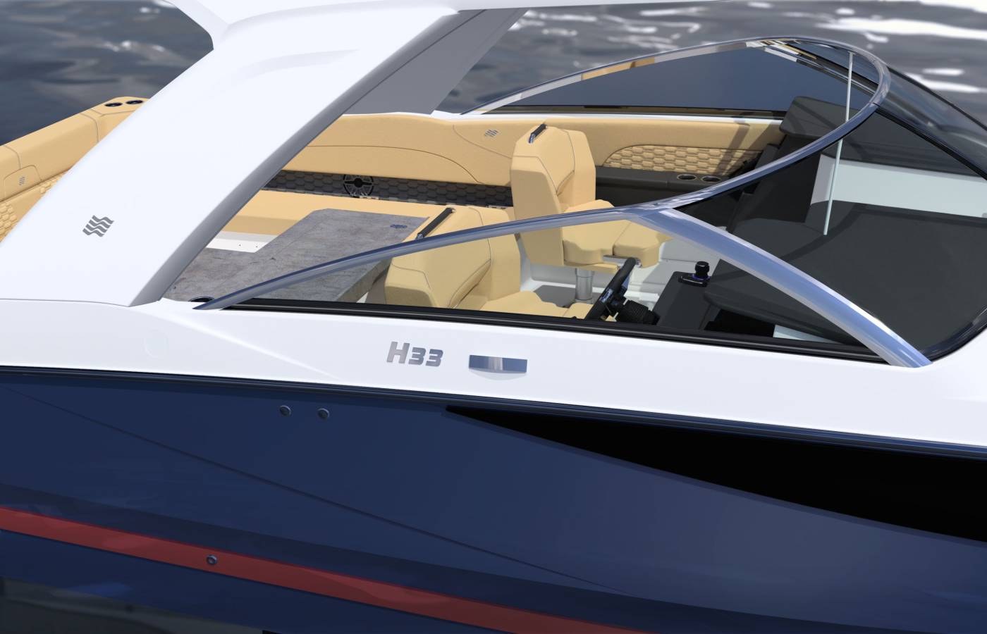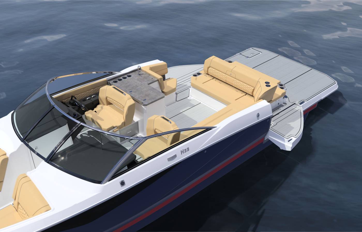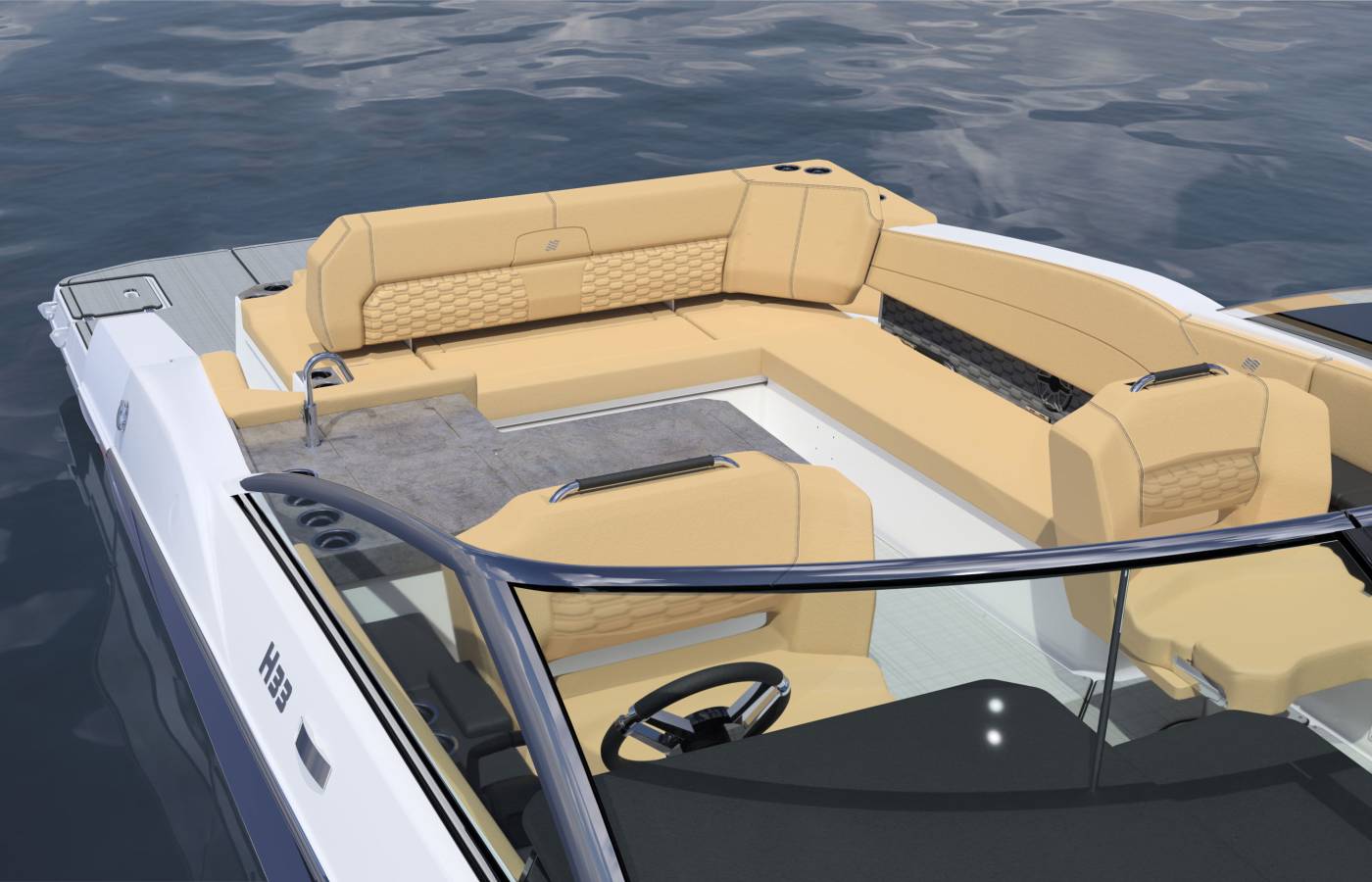 Every material, from the hand-stitched upholstery to the soft, tactile finishes, has been carefully chosen to elevate this exceptional model. With eight gel coat shades, multiple hull colors, and three premium upholstery options, the H33 offers over 100 possible configurations, allowing each owner to personalize their boat to reflect their unique style.