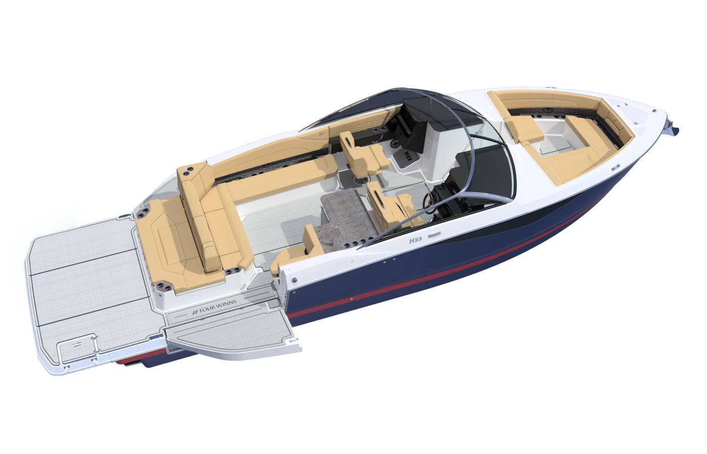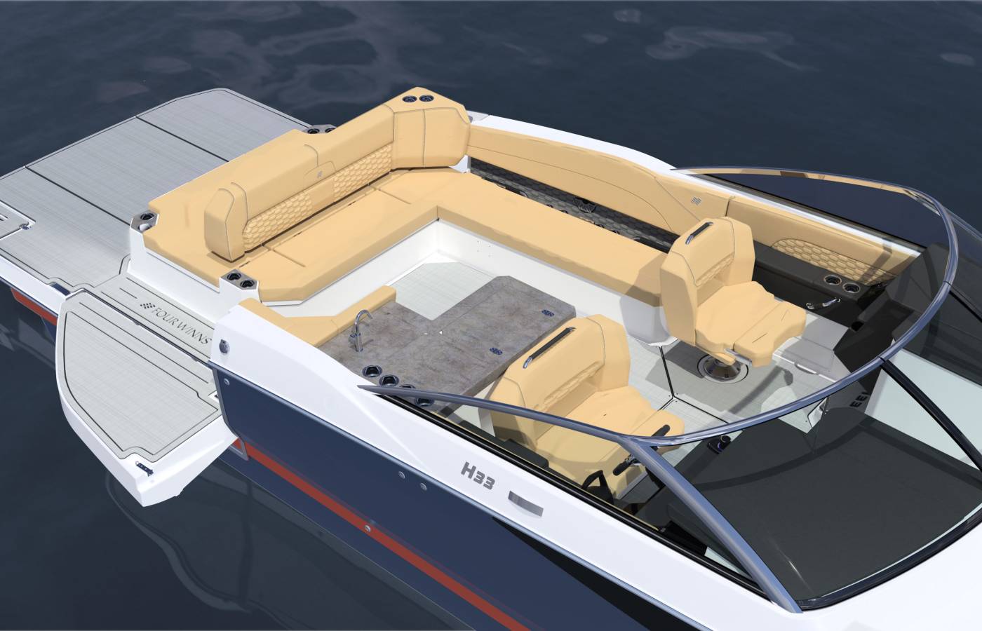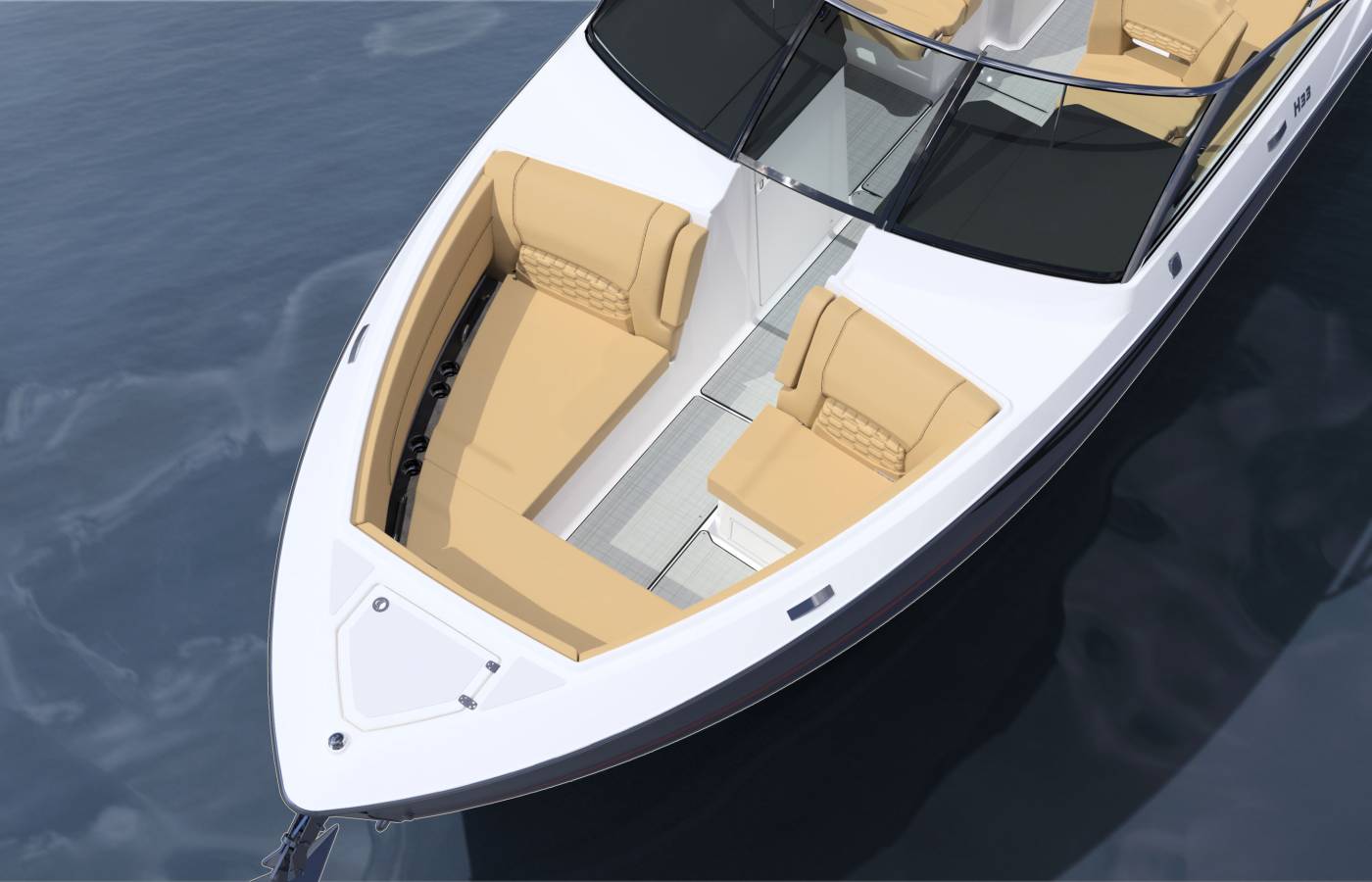 Every material, from the hand-stitched upholstery to the soft, tactile finishes, has been carefully chosen to elevate this exceptional model. With eight gel coat shades, multiple hull colors, and three premium upholstery options, the H33 offers over 100 possible configurations, allowing each owner to personalize their boat to reflect their unique style.