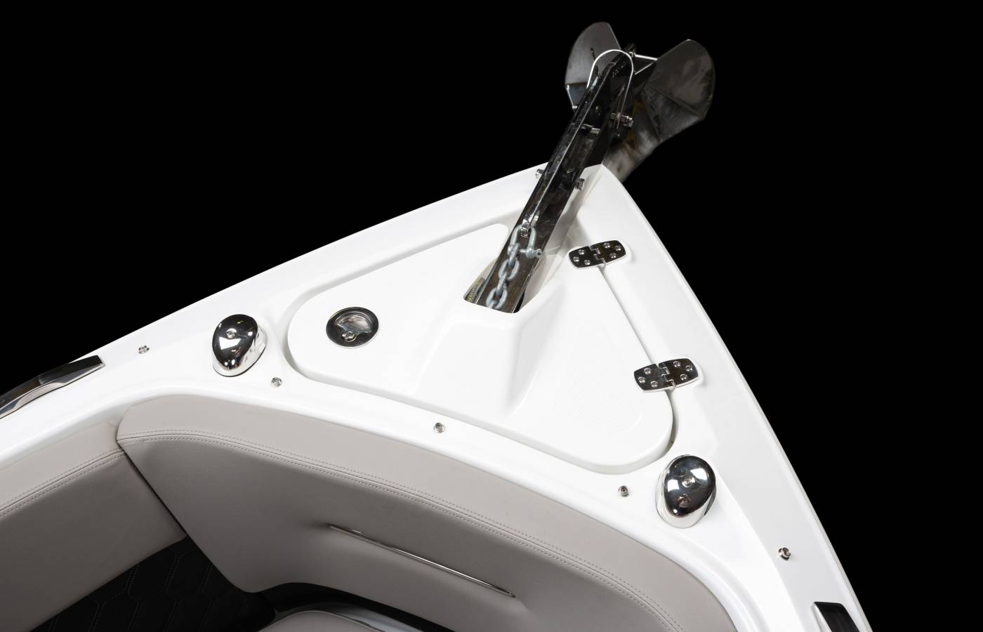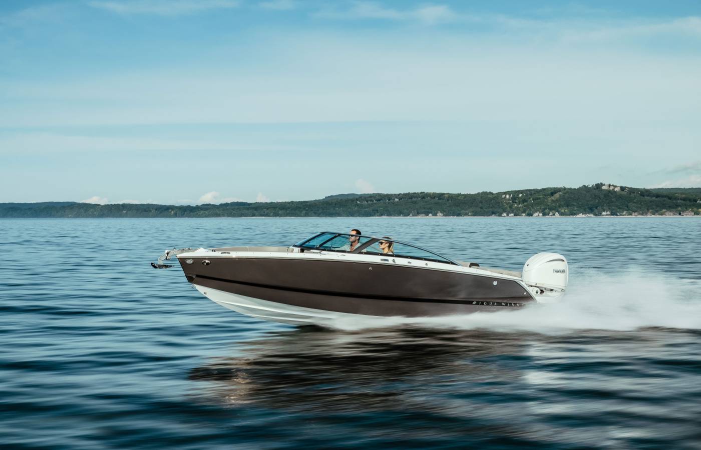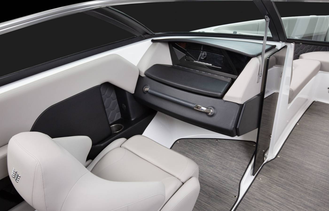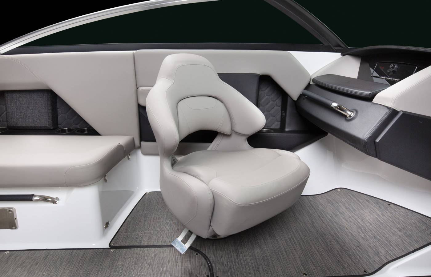 Every detail of the H4 is thoughtfully designed to reflect a premium aesthetic. Soft, grippy swim platform mats and woven cockpit flooring add refined finishing touches, while intricate hand-sewn stitching, gleaming metal accents, and plush foam showcase Four Winns’ legacy of superior craftsmanship. Monochromatic color schemes create a fresh, streamlined look, and upscale materials—such as Cool Touch surfaces, vinyl-wrapped handles, durable upholstery, and padded bow walls—combine lasting durability with effortless style and comfort.