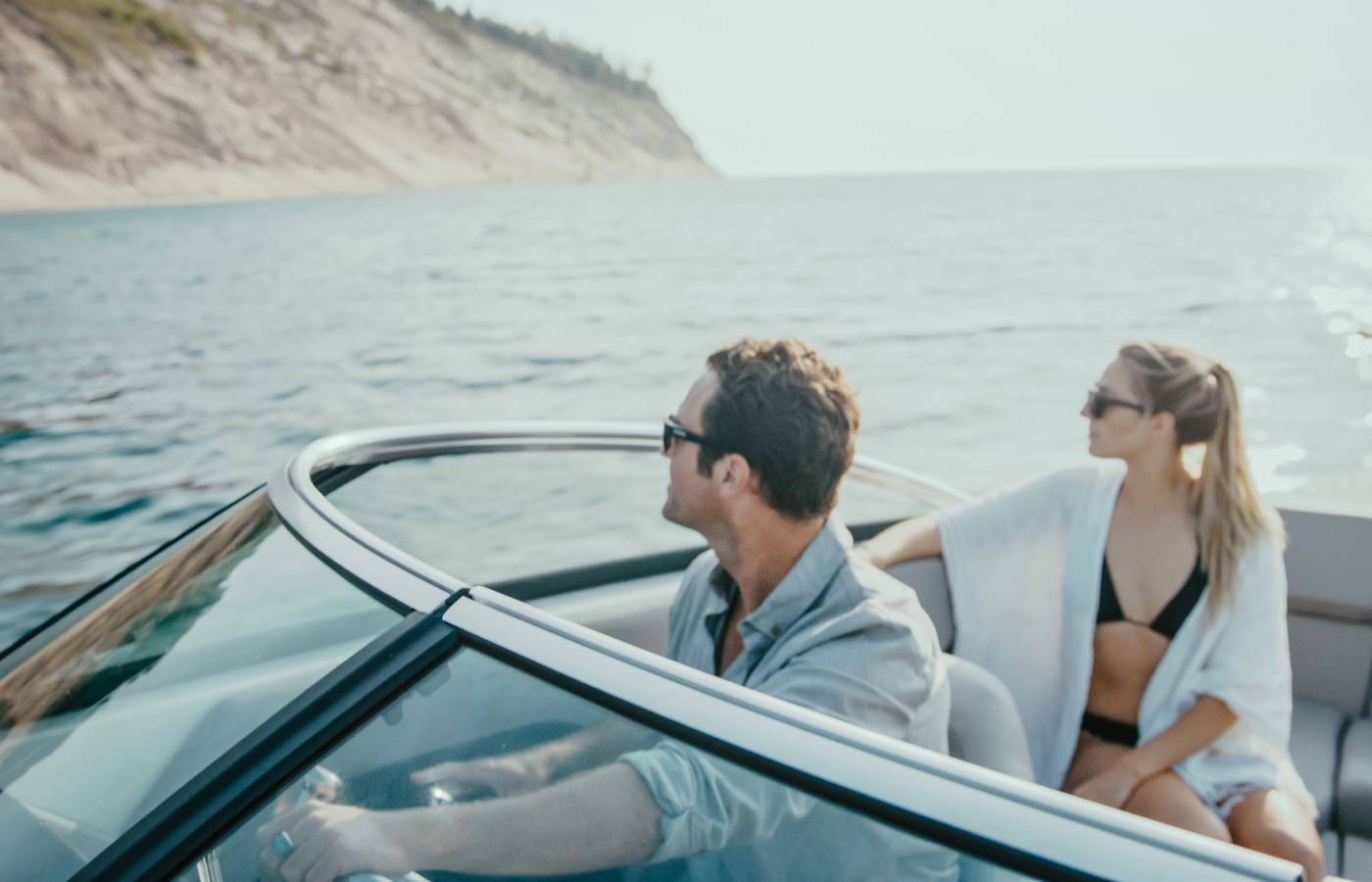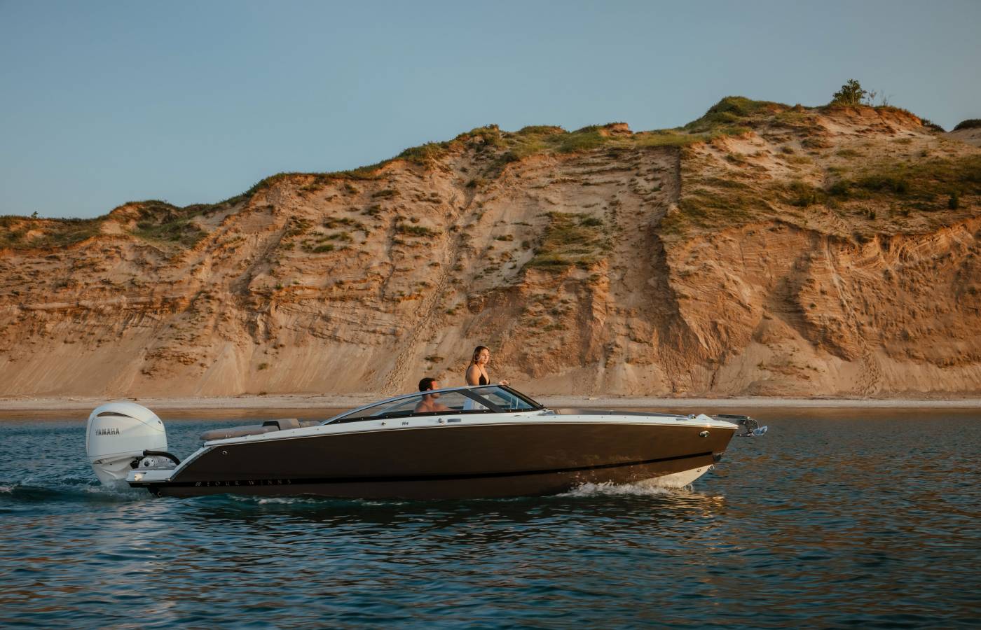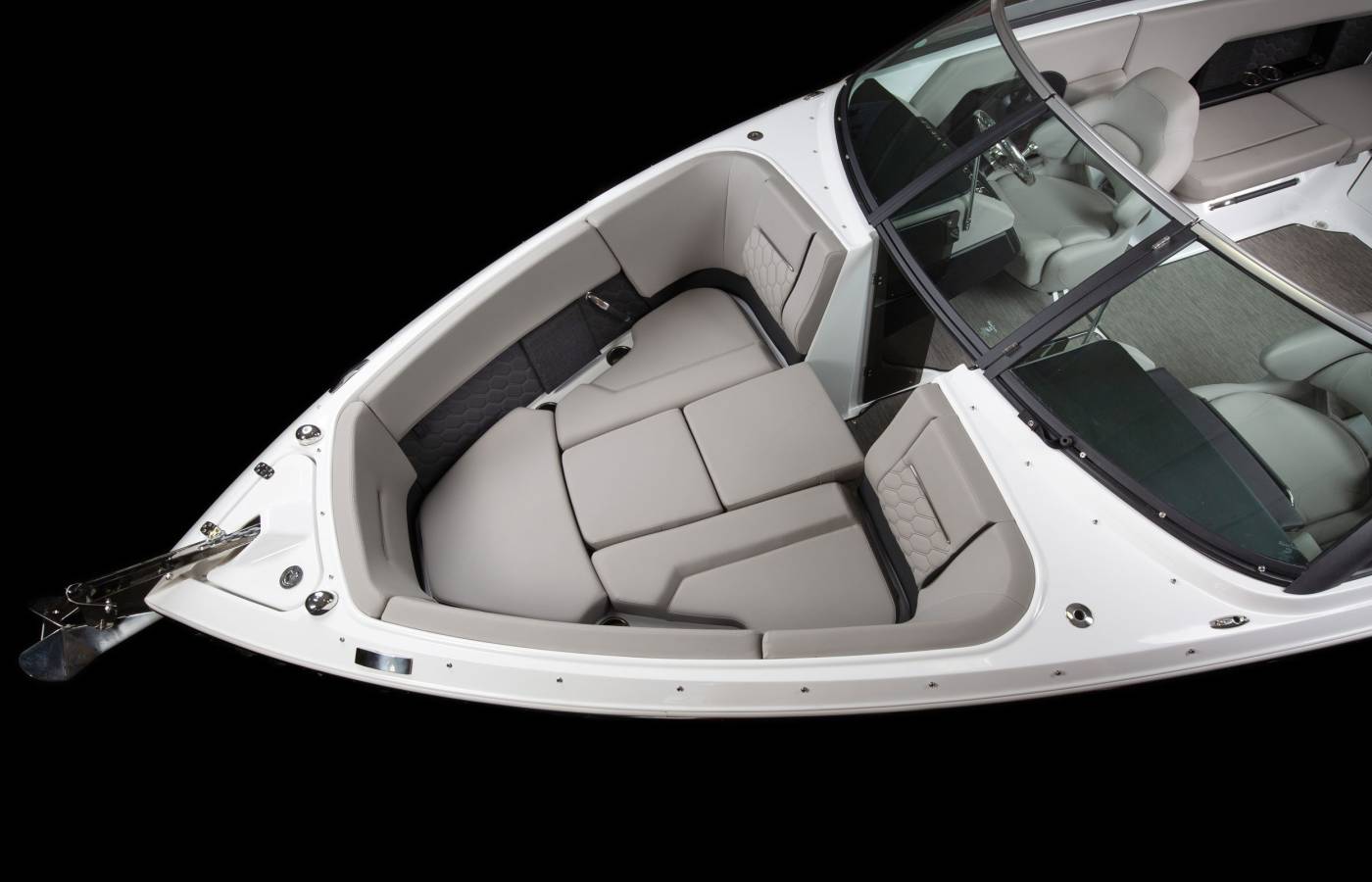 The H-Series is distinguished by its vertical bow stem, while the signature cross-curve windshield is accented with a sleek black pillar and bright header. Elongated side wings enhance its streamlined profile, creating an unmistakable design statement.