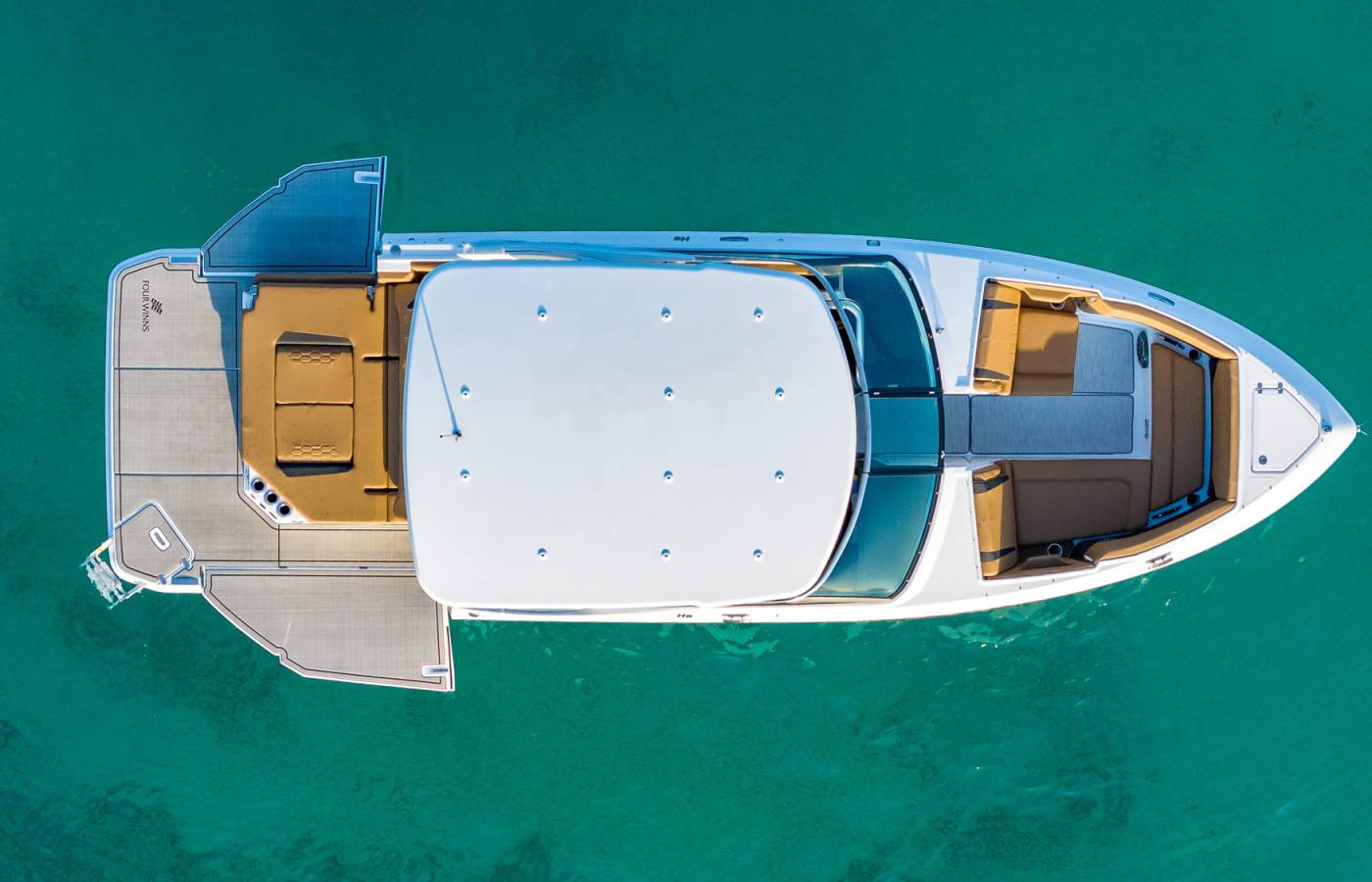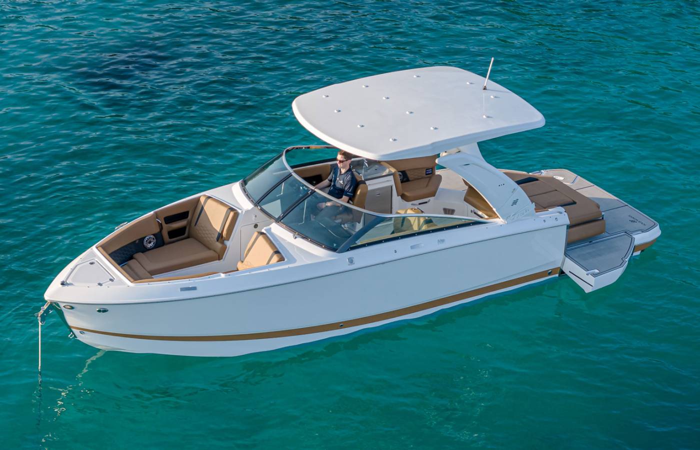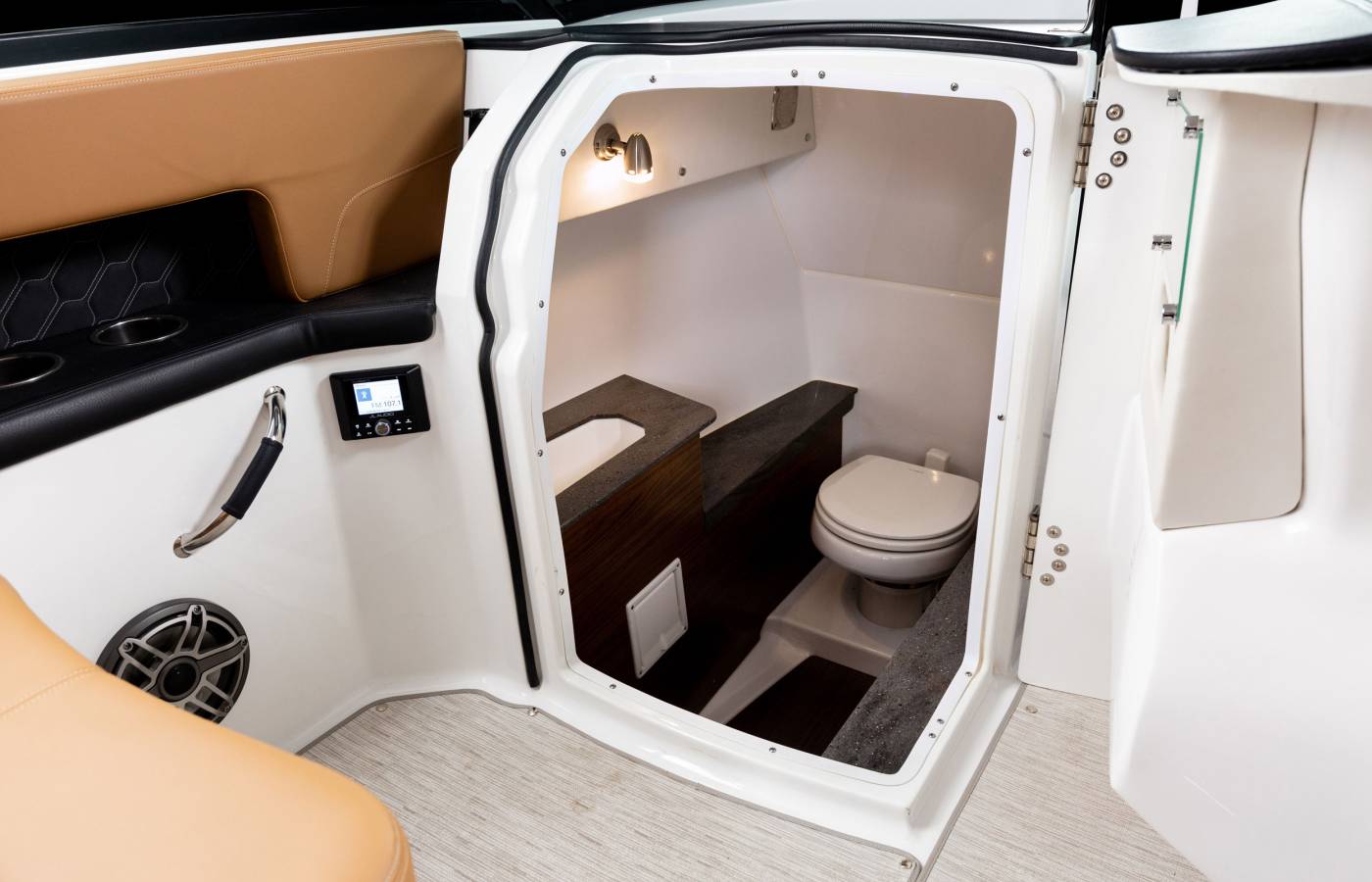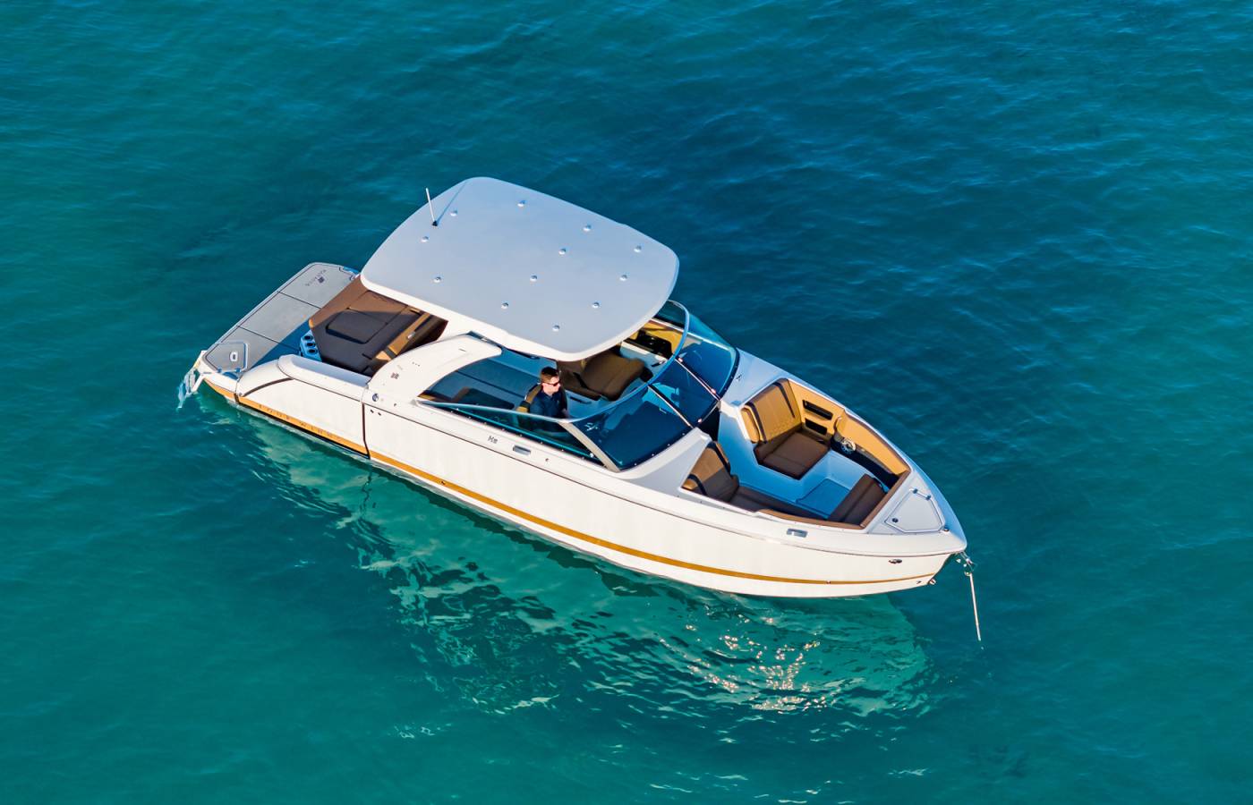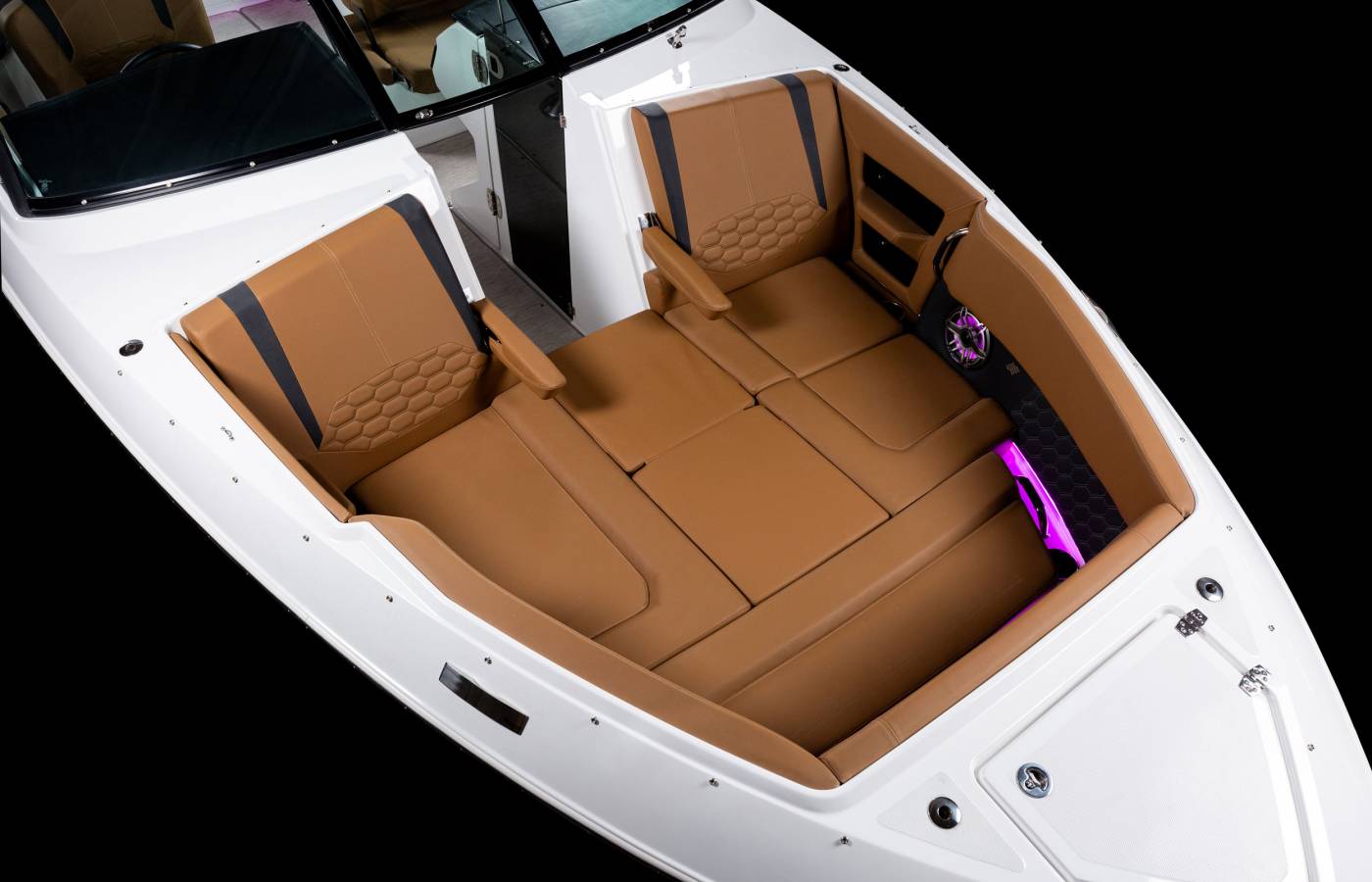 - Instrumentation with twin 12" MFD touchscreens including engine data, active trim control and monitoring, preloaded charts, audio control, and transducer (water, temperature, sonar)