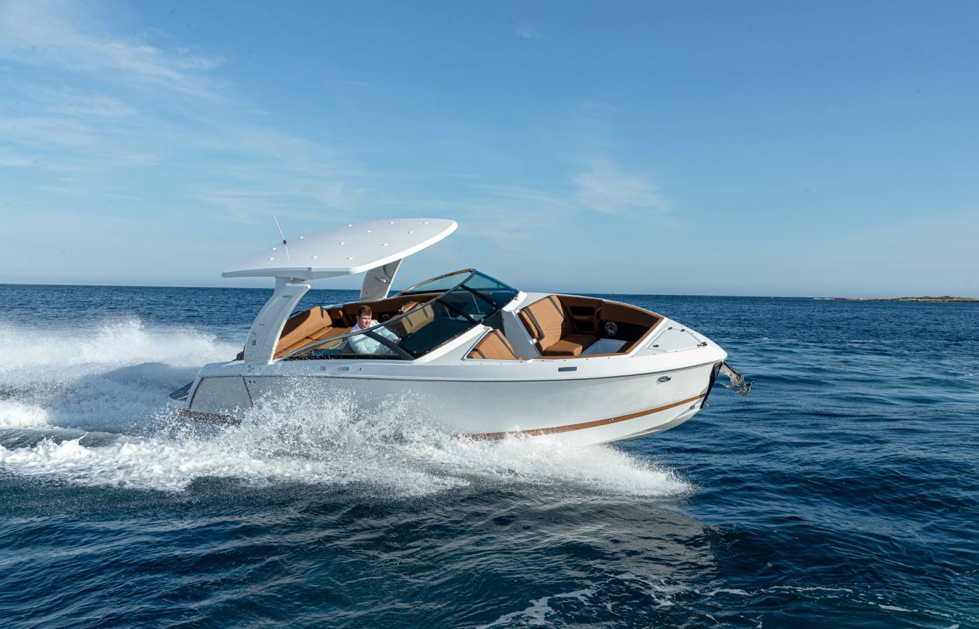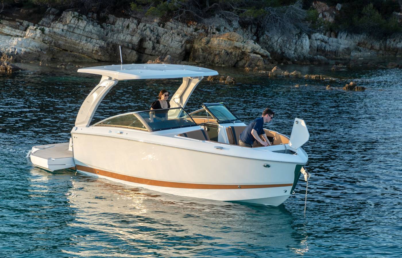 The H9 Sterndrive is crafted to deliver an unparalleled on-water experience, showcasing the sleek, elongated lines that define the H-Series. Its vertical stem profile enhances both stability and style, while the signature windshield blends seamlessly into the design, offering exceptional visibility and a timeless, elegant silhouette.