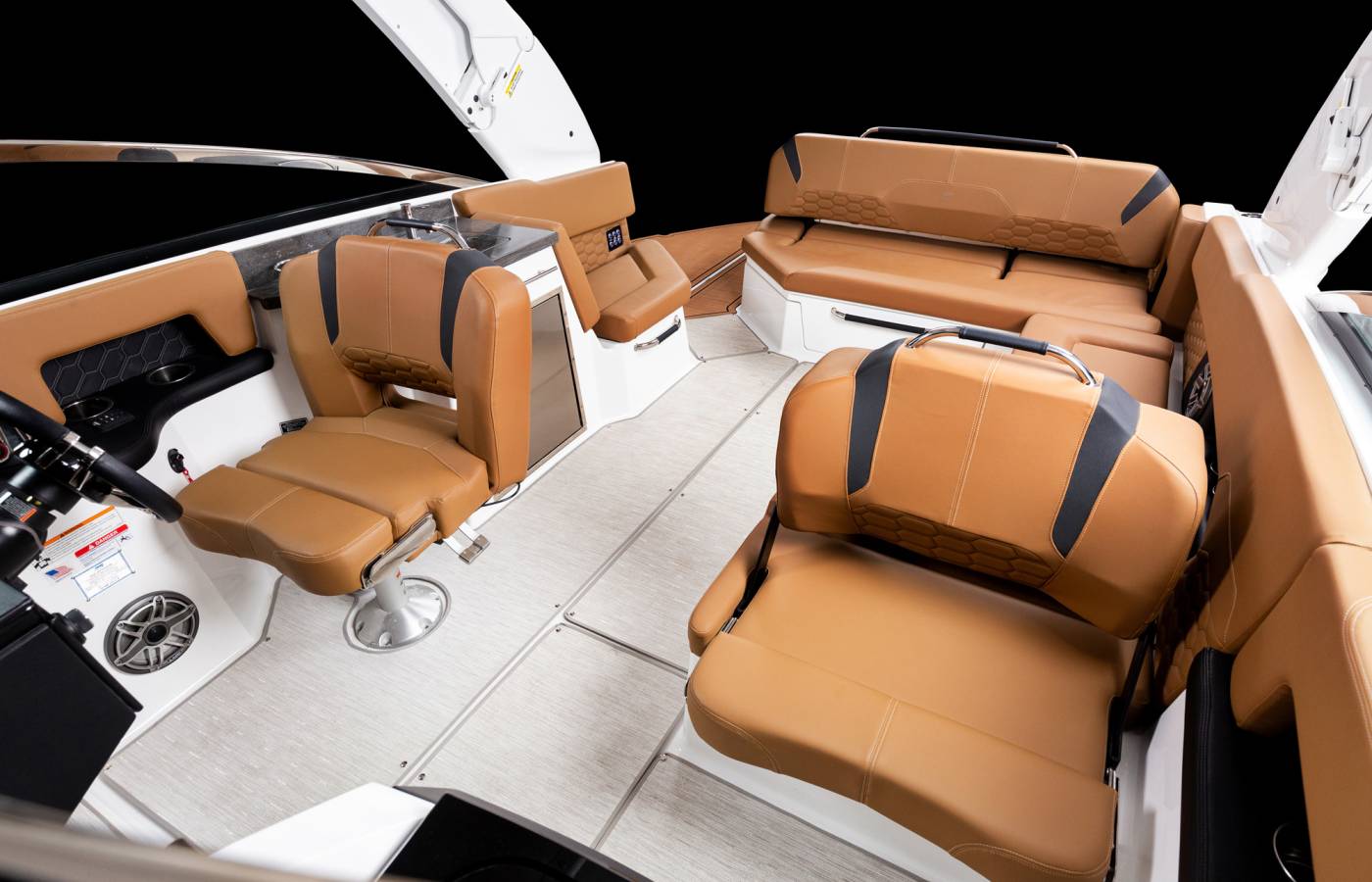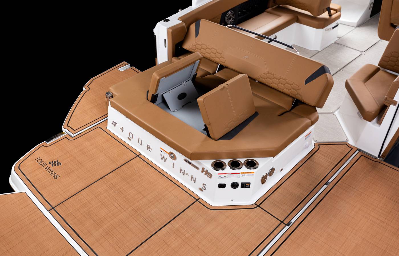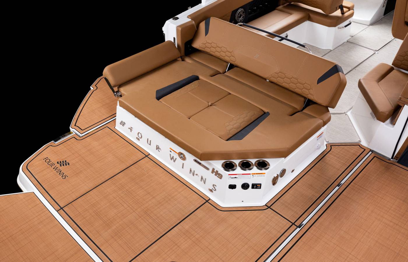 Sophistication on the water takes form in the H9 Sterndrive—a model designed with meticulous attention to detail. Elegant Side Terraces, a fold-down backrest for sunbathing, and customizable options create a versatile on-water experience. Premium hand-sewn upholstery, sleek finishes, and a streamlined profile reflect the signature Four Winns aesthetic. Enhanced cockpit controls provide effortless navigation, while abundant storage and a built-in galley deliver smart functionality with uncompromised comfort. The H9 Sterndrive sets a new standard for luxury and style on the water.