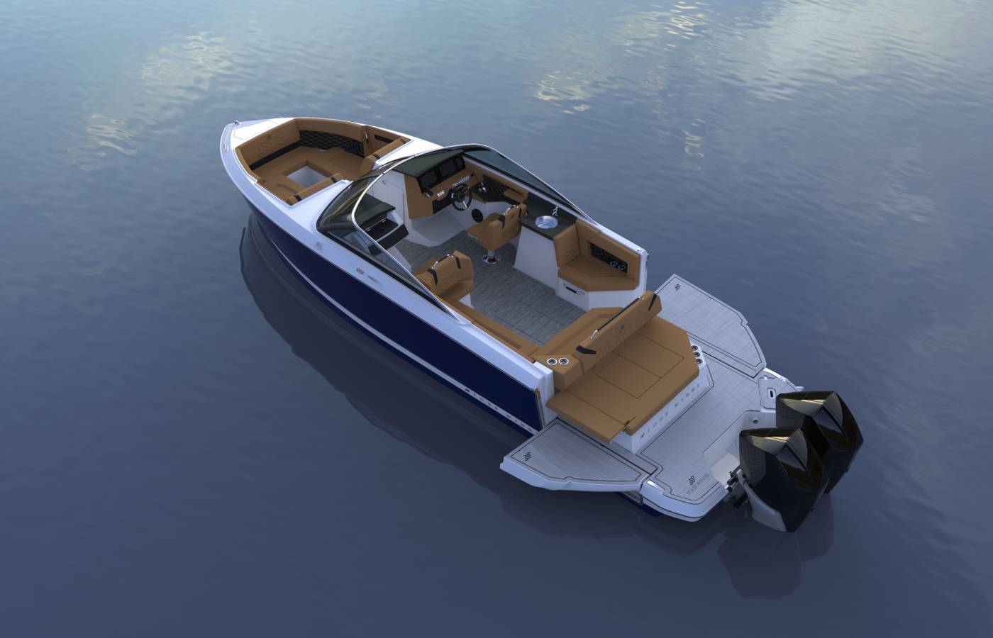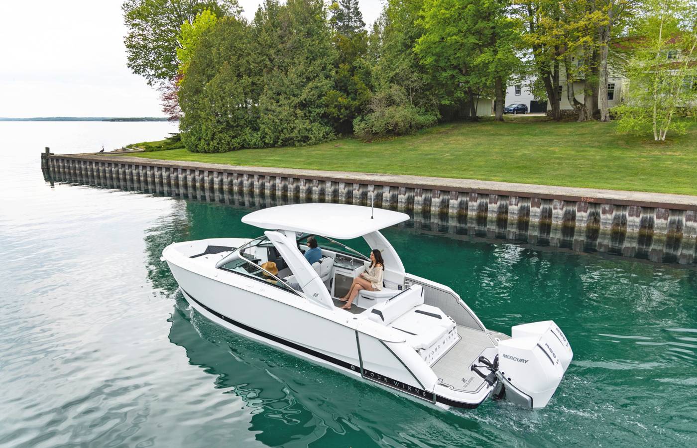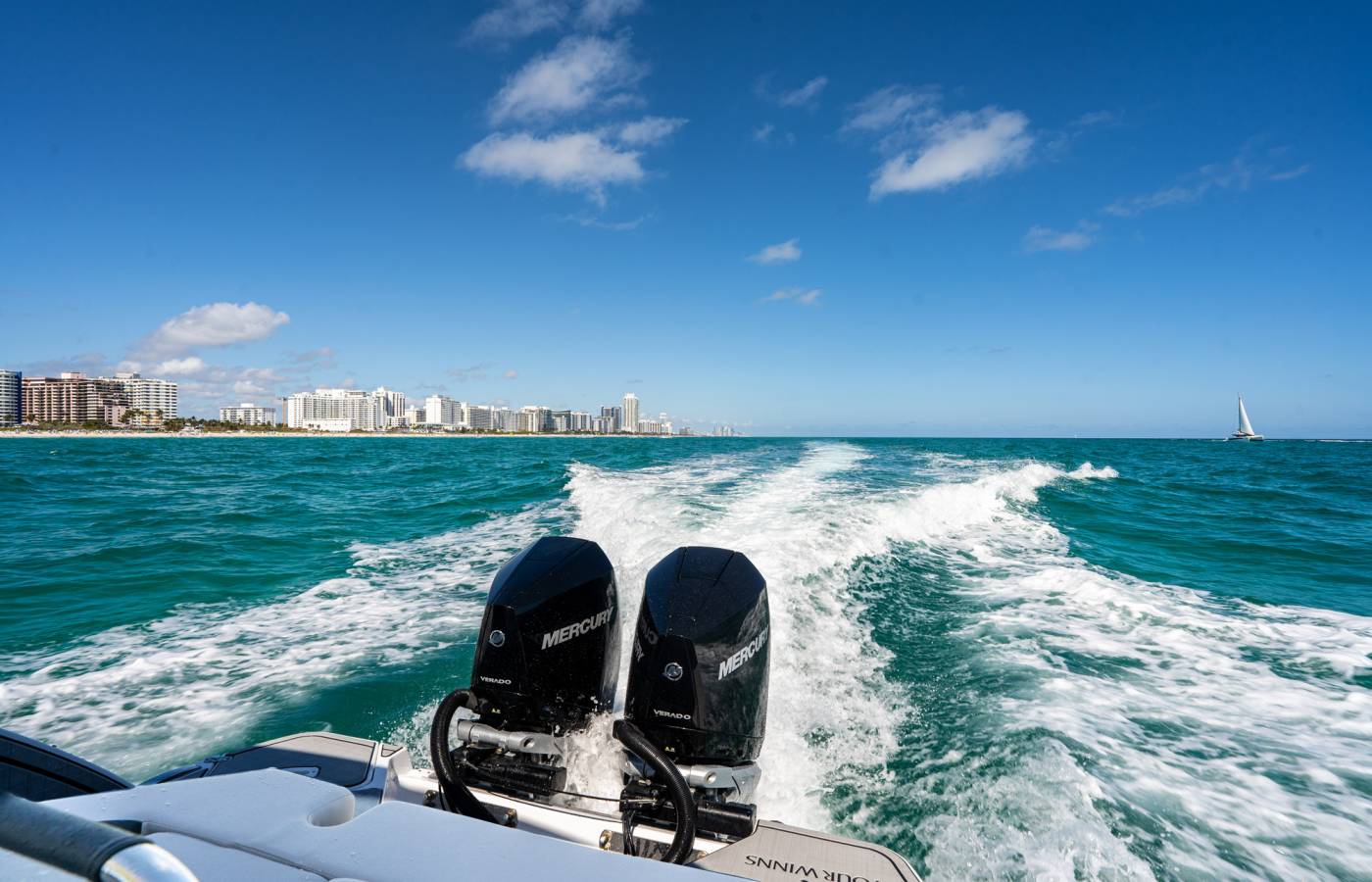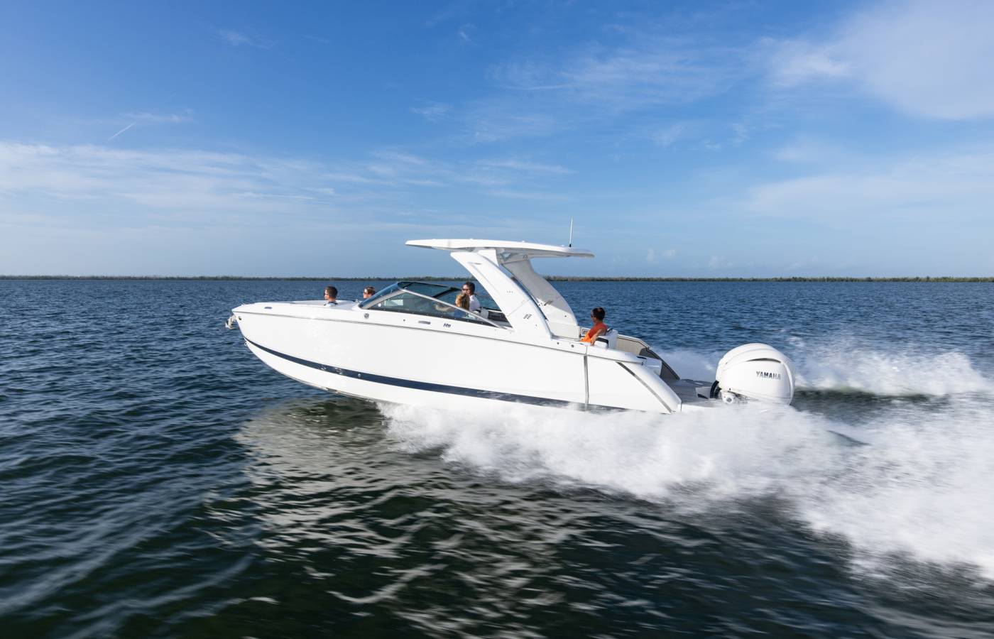 - Instrumentation, helm: twin 12" MFD touchscreen w/engine data, active trim control & monitoring, preloaded charts, audio control, transducer (water, temperature, sonar)