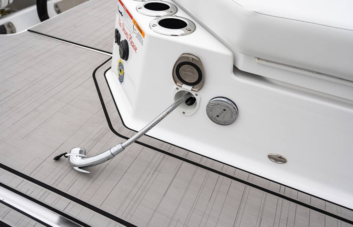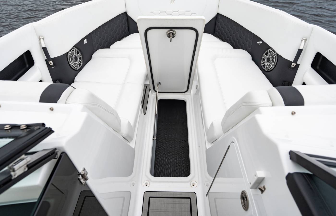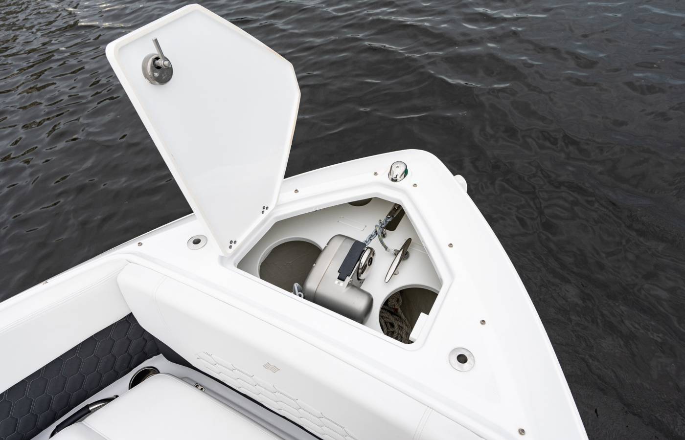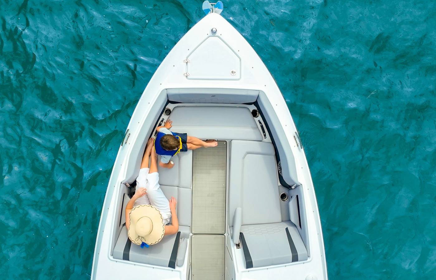 The flat deck runs cleanly from bow to stern, making movement effortless and giving the boat a larger, more open feel. This thoughtful layout enhances versatility, whether you’re hosting guests, cruising with family, or relaxing at anchor.
