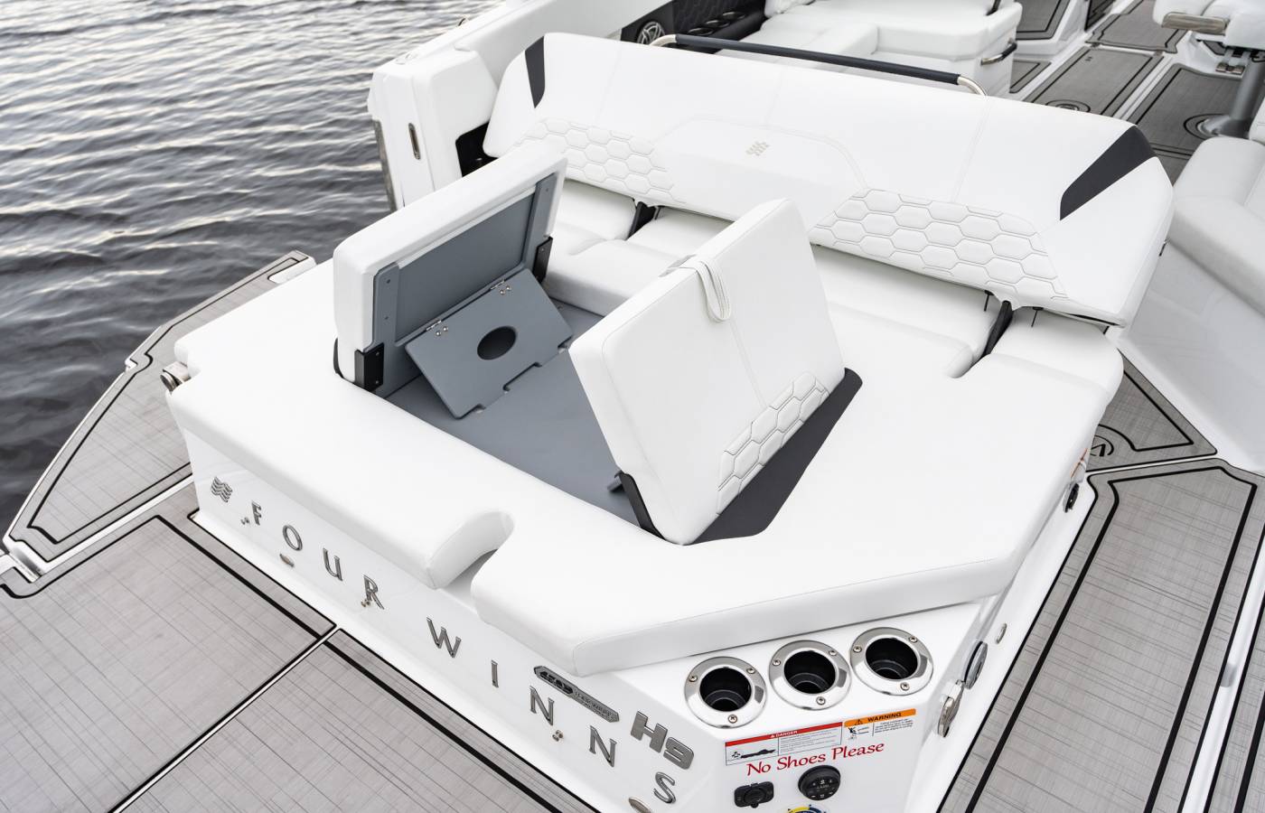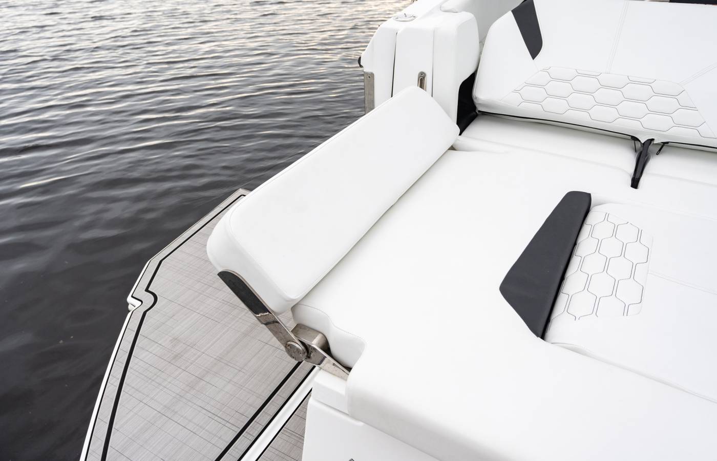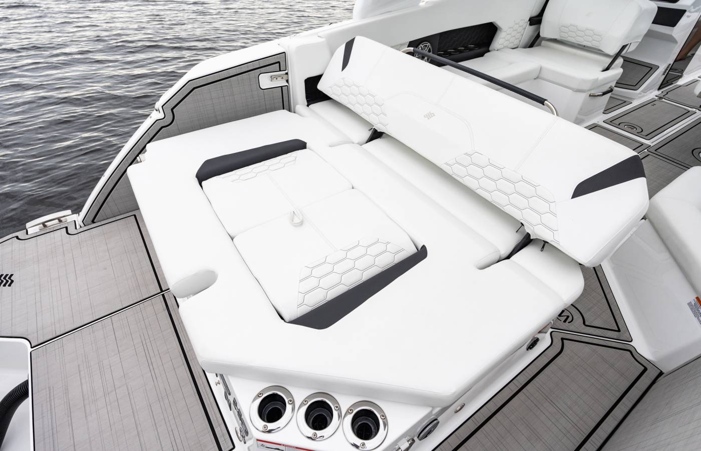 Generously cushioned seating with adjustable backrests allows for multiple arrangements, from forward-facing cruising to aft-facing lounging. This flexibility ensures comfort and connection no matter how the day unfolds.