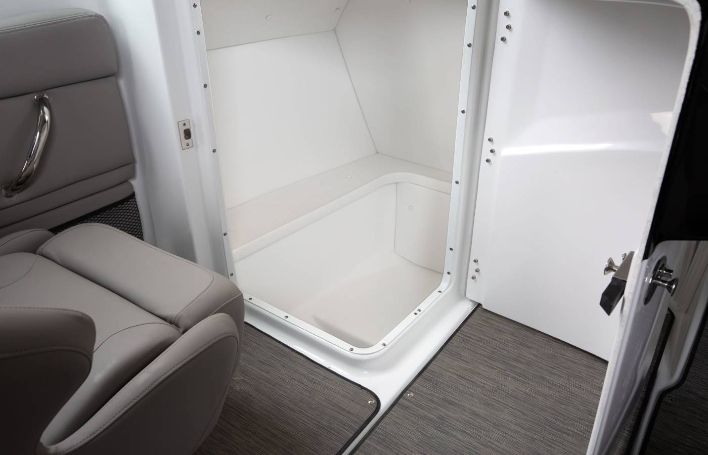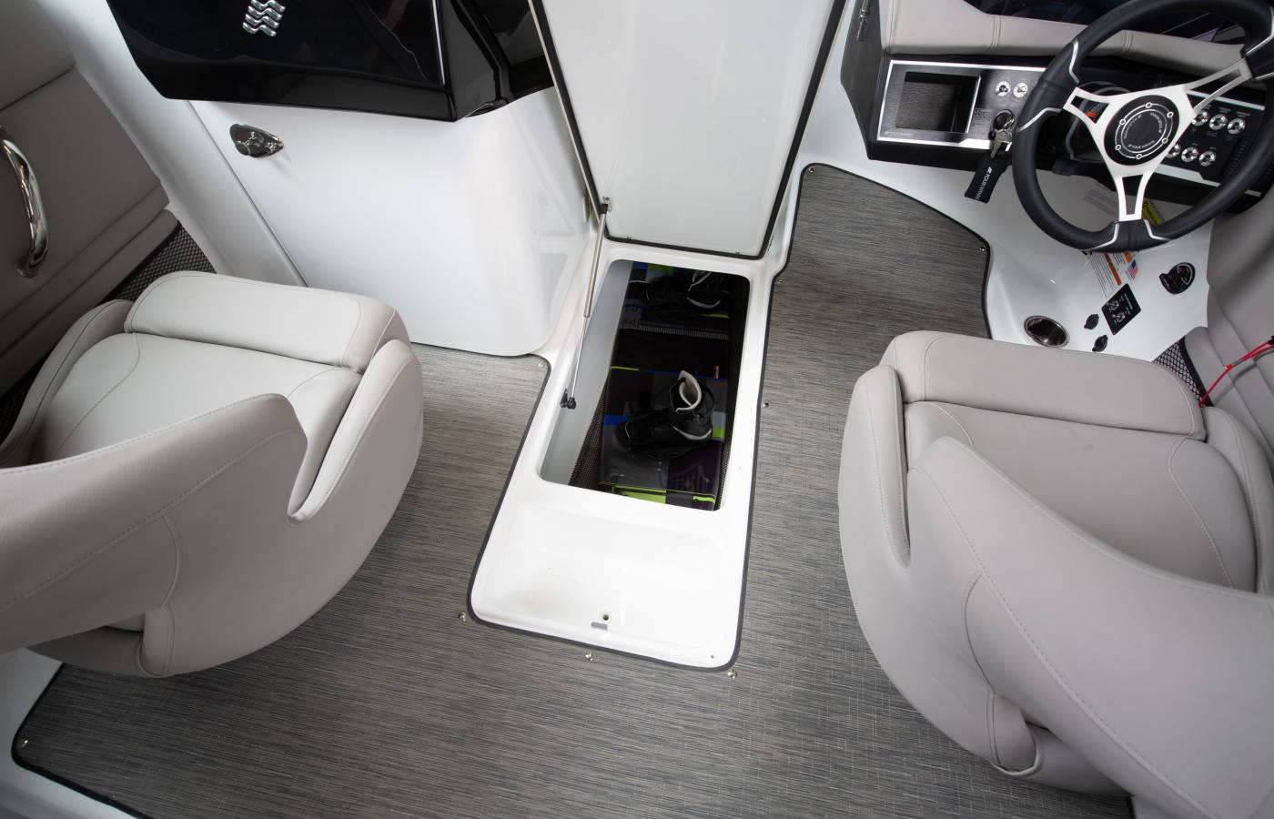 - Ski locker, in-floor, with gas-assist hinged lid and mat