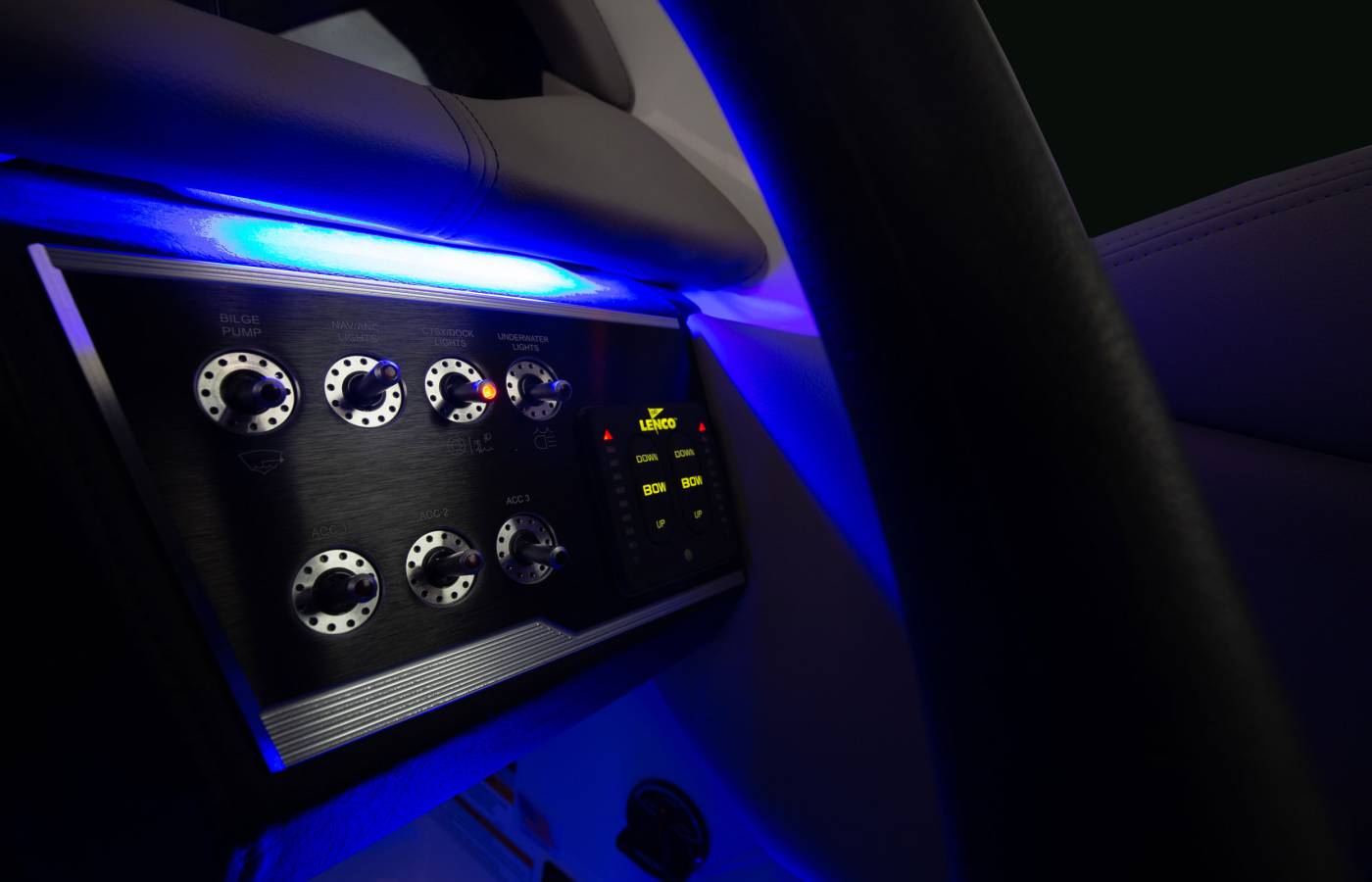 - Dash, rich hand-wrapped vinyl, with custom detailing and LED accent lighting