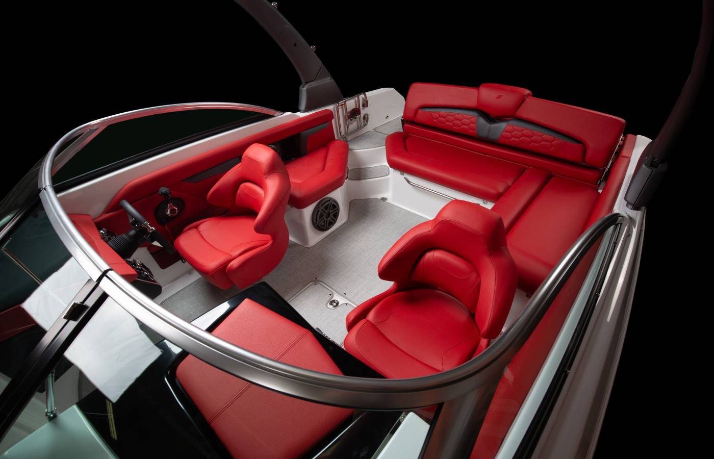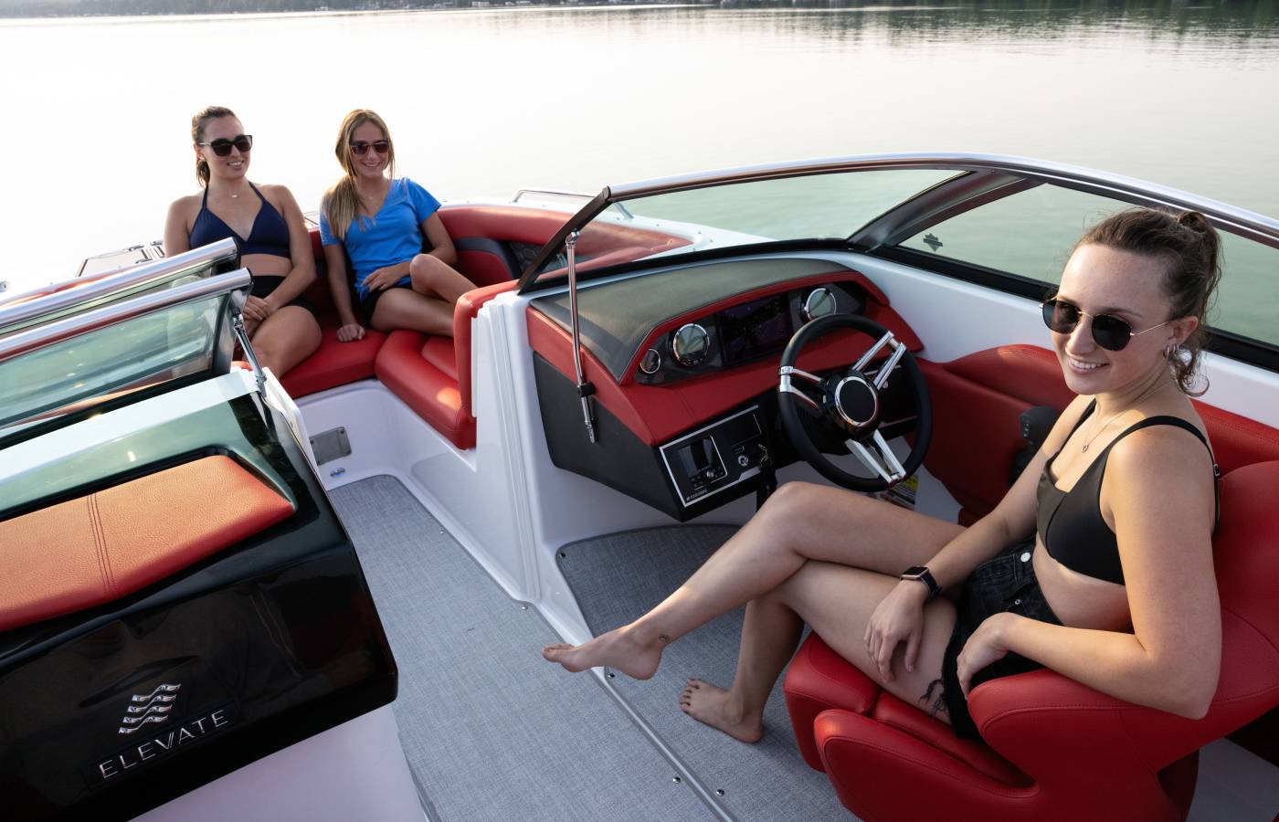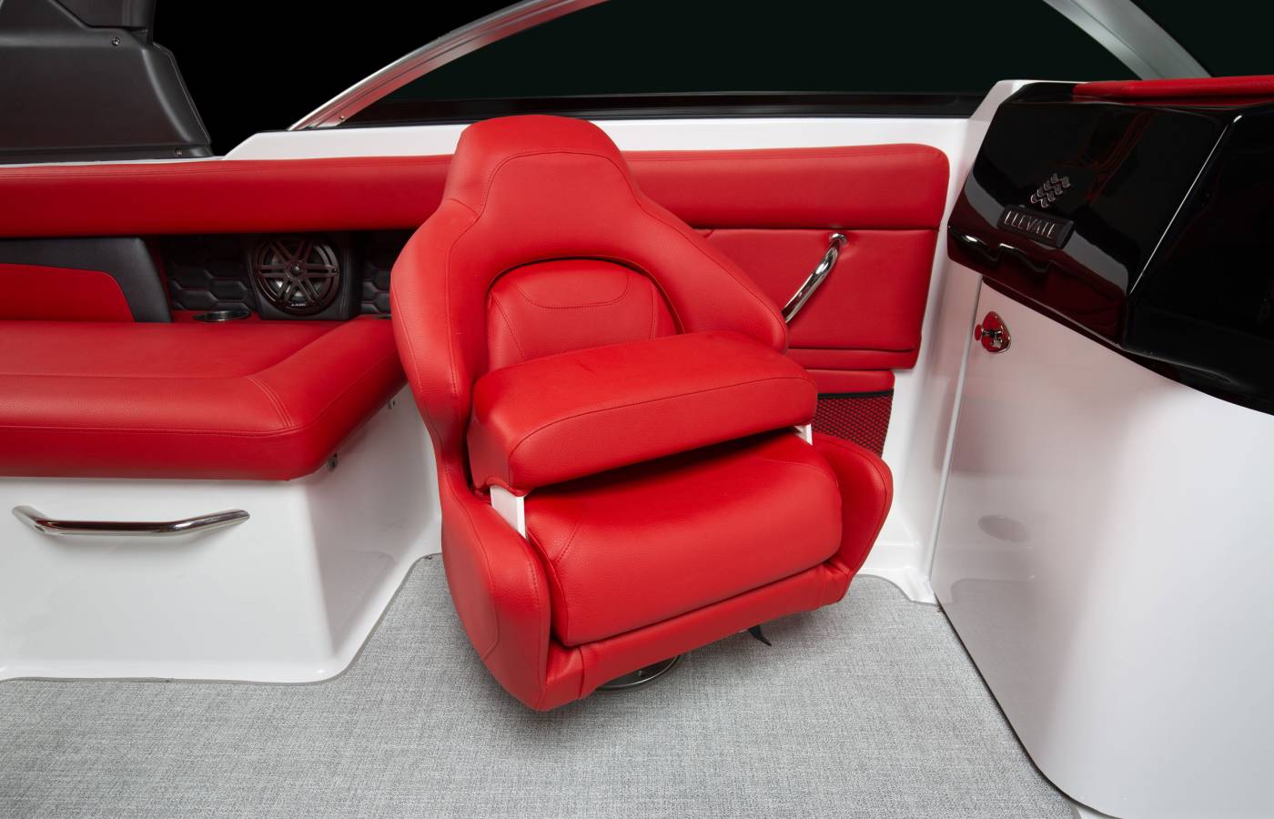 Embracing life’s refined pleasures, the HD3 Outboard sets a new standard in boating. The interior features luxurious upholstery and plush, adaptable bucket seats with ample padding for endless comfort on the water. It also includes a standard custom trailer and a fully enclosed head compartment—what could be better?