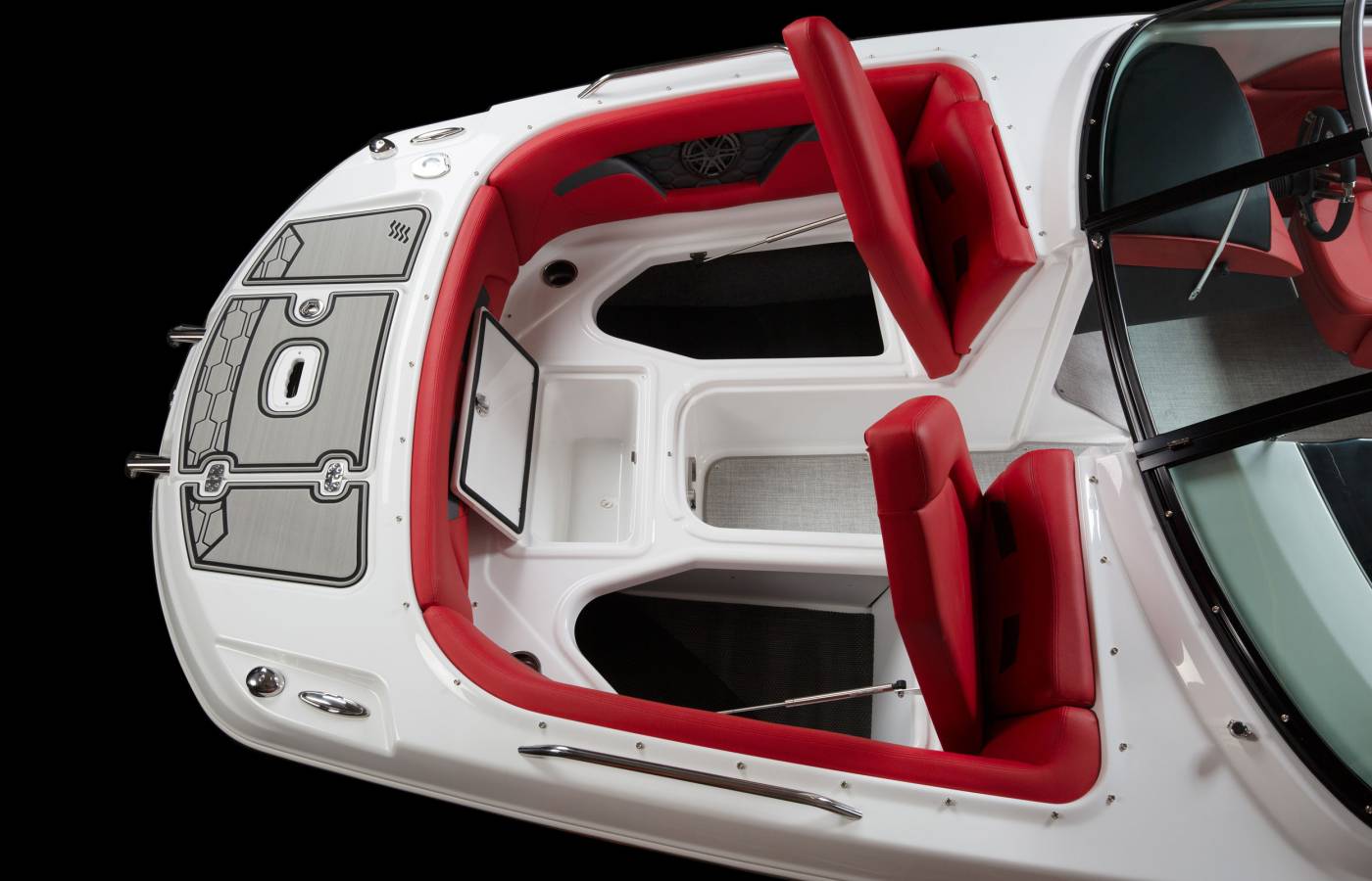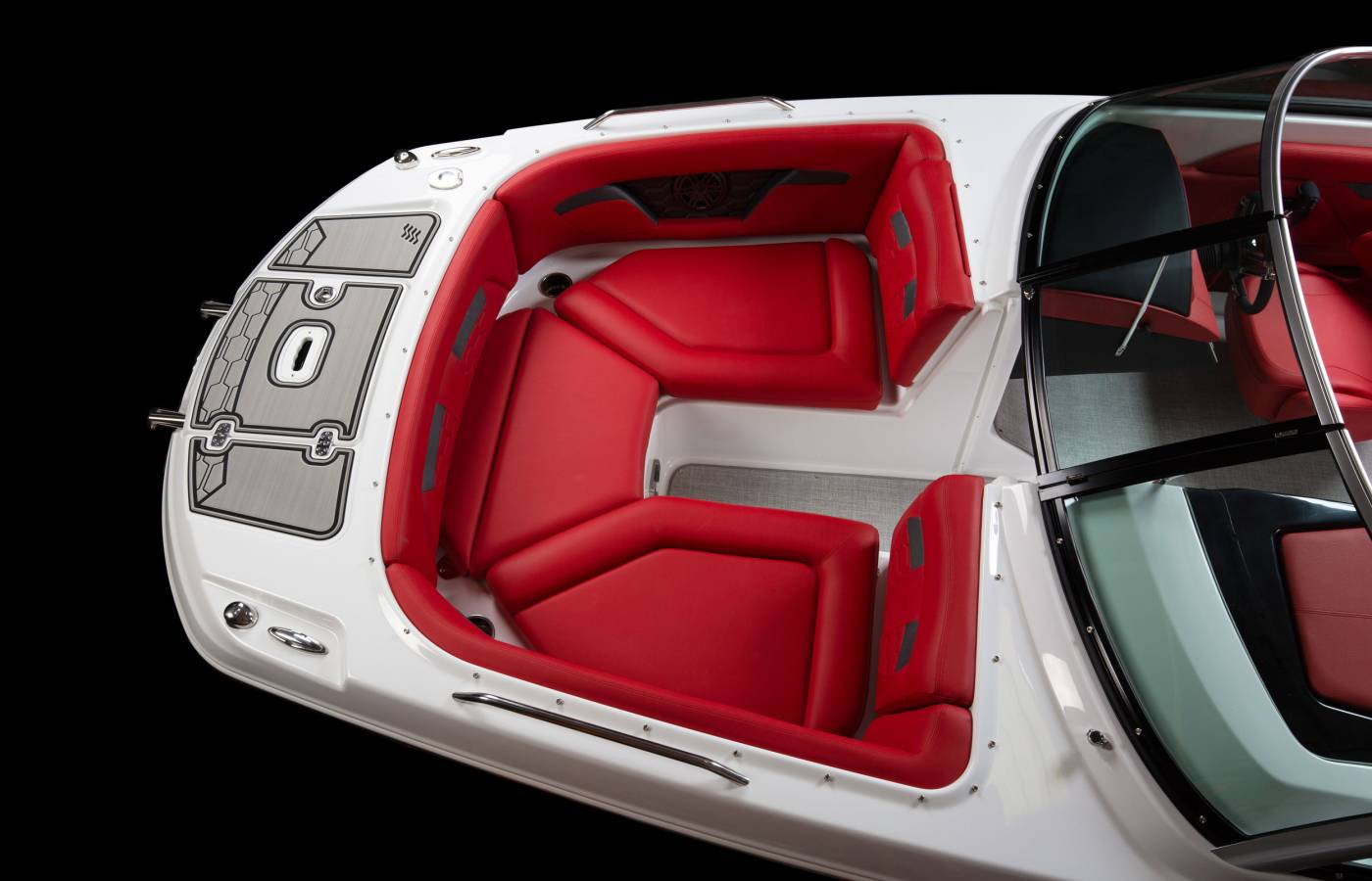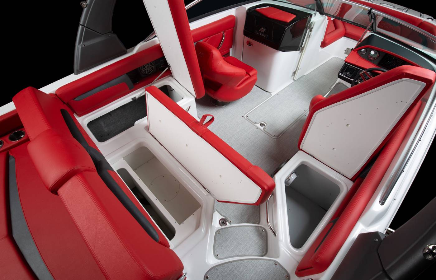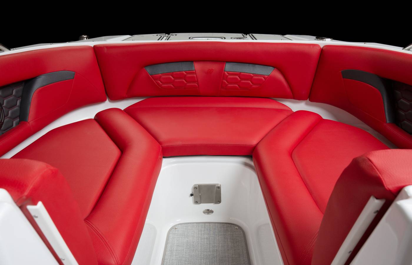 Embracing life’s refined pleasures, the HD3 Outboard sets a new standard in boating. The interior features luxurious upholstery and plush, adaptable bucket seats with ample padding for endless comfort on the water. It also includes a standard custom trailer and a fully enclosed head compartment—what could be better?