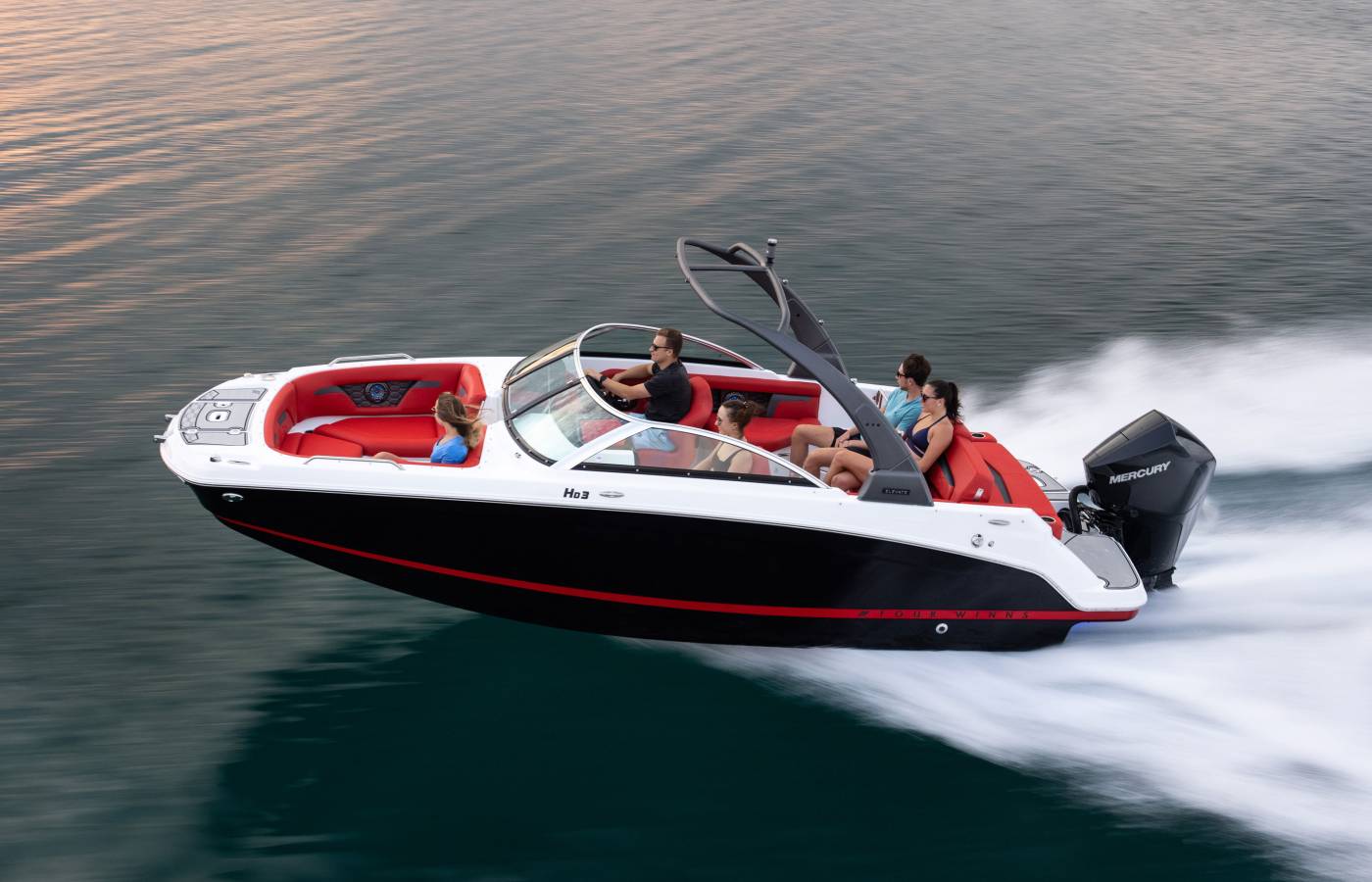 The HD3 OB combines Four Winns’ signature style with the power and convenience of outboard performance. Designed for all-day comfort, it offers plush seating for 12, abundant storage, and a fully enclosed head. A built-in cooler keeps refreshments within reach, making every outing effortless and enjoyable.