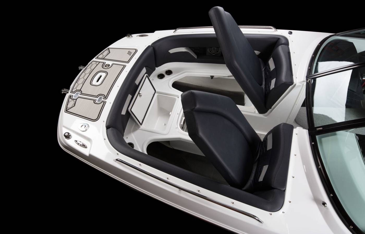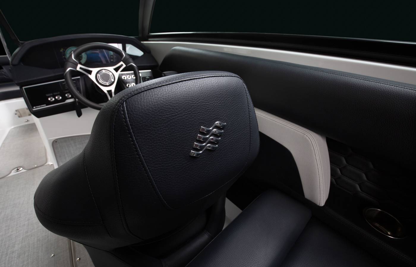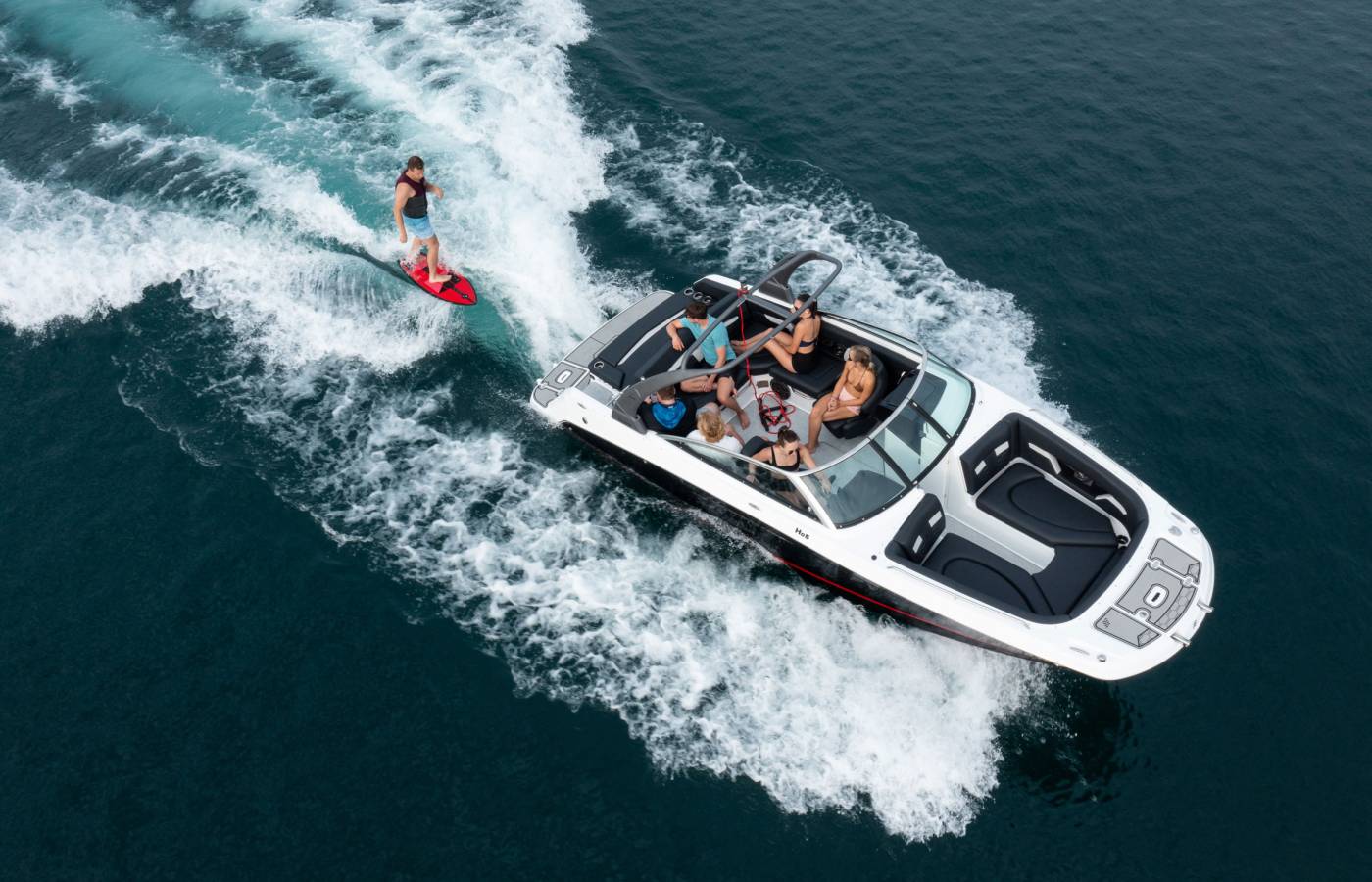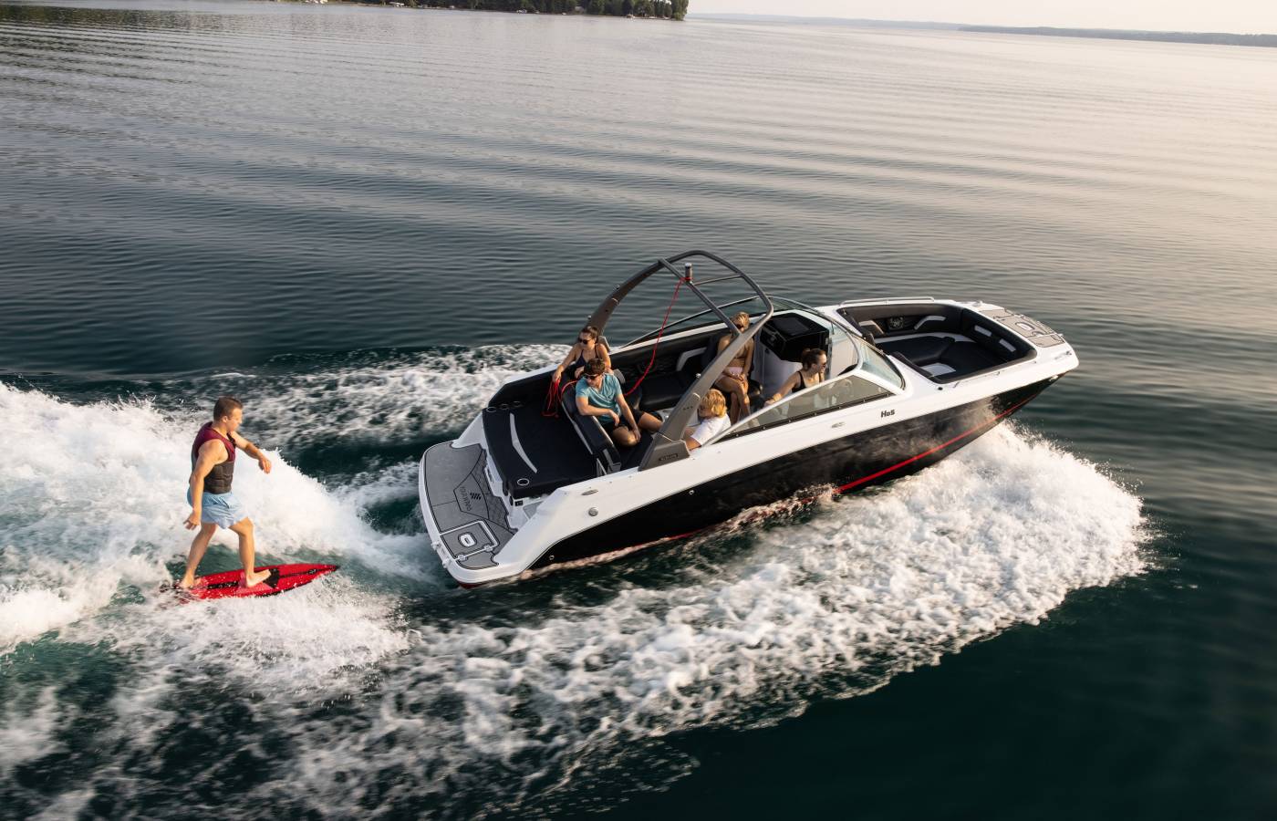 An advanced forward-facing drive adds extra bite off the line, delivers trim authority, boosts fuel economy, and keeps the prop tucked safely under the boat—peace of mind for swimmers around the platform.