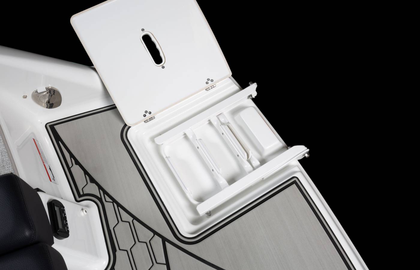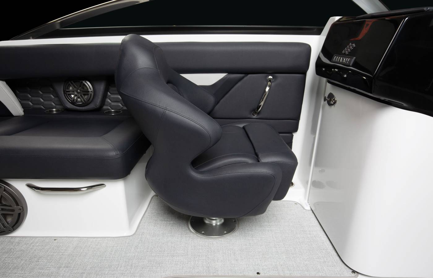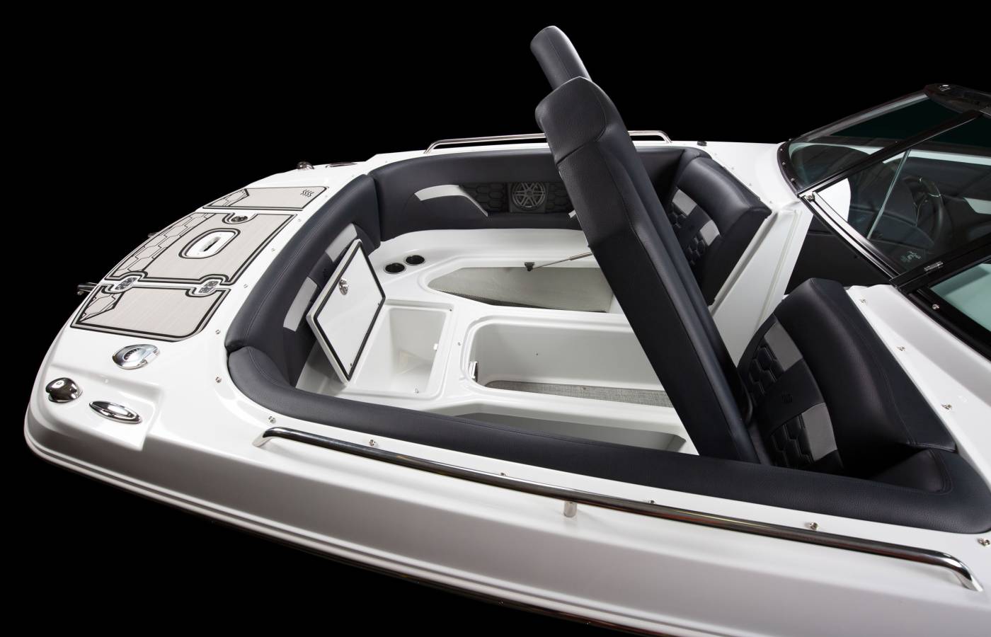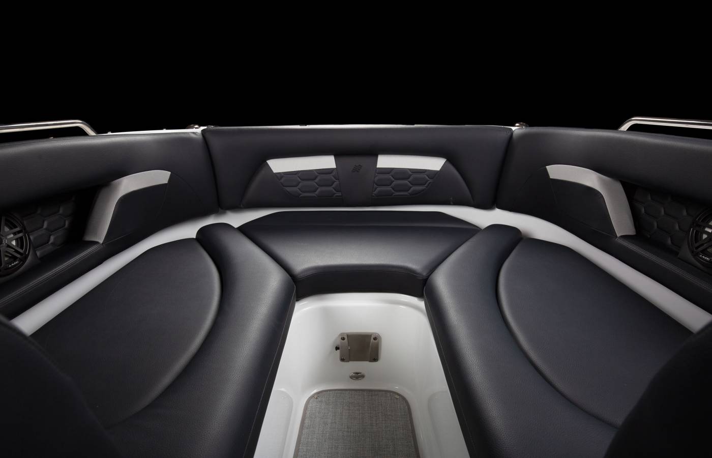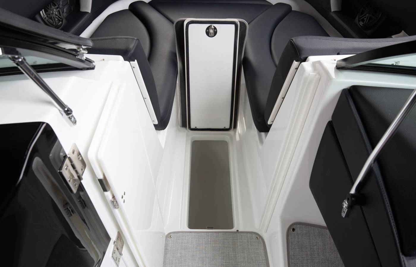 An advanced forward-facing drive adds extra bite off the line, delivers trim authority, boosts fuel economy, and keeps the prop tucked safely under the boat—peace of mind for swimmers around the platform.